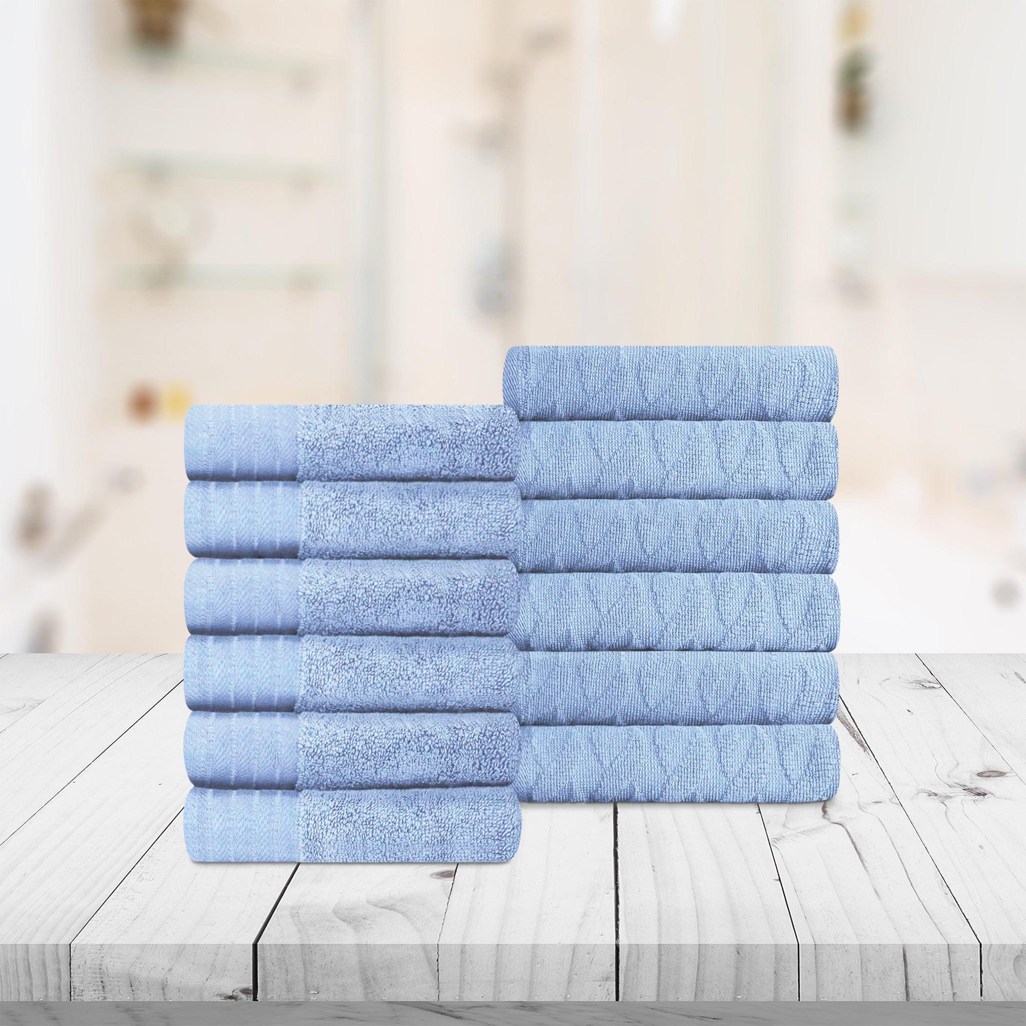 Ribbed-border Zero Twist Cotton Bath Towel Set of 12