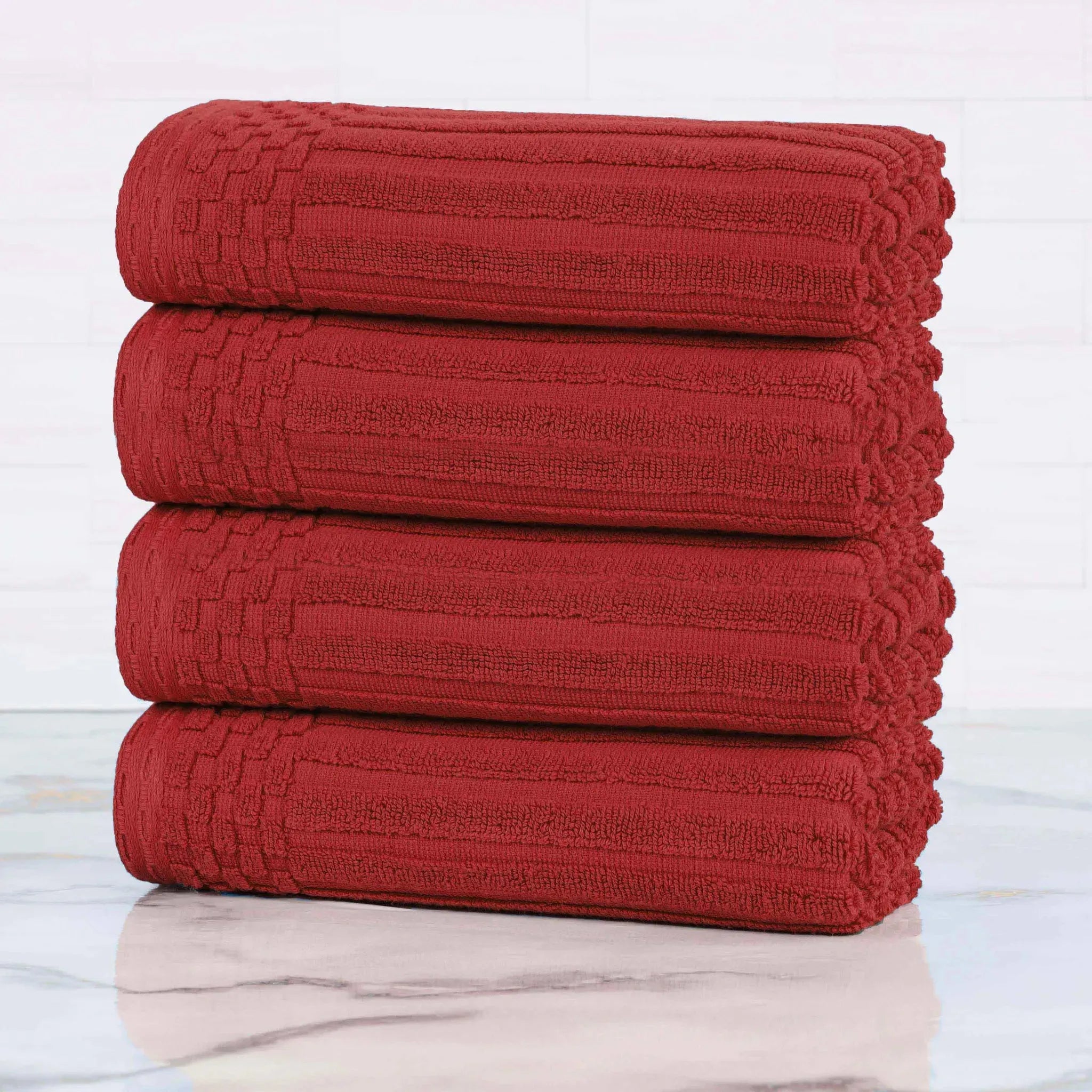 Ribbed and Checkered-border Cotton Bath Towel Set