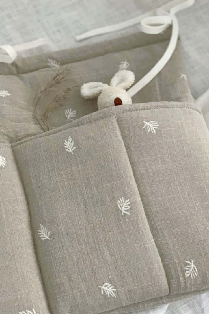 Neutral Retro Flowers β muslin Crib Organizer / Bed Pocke
