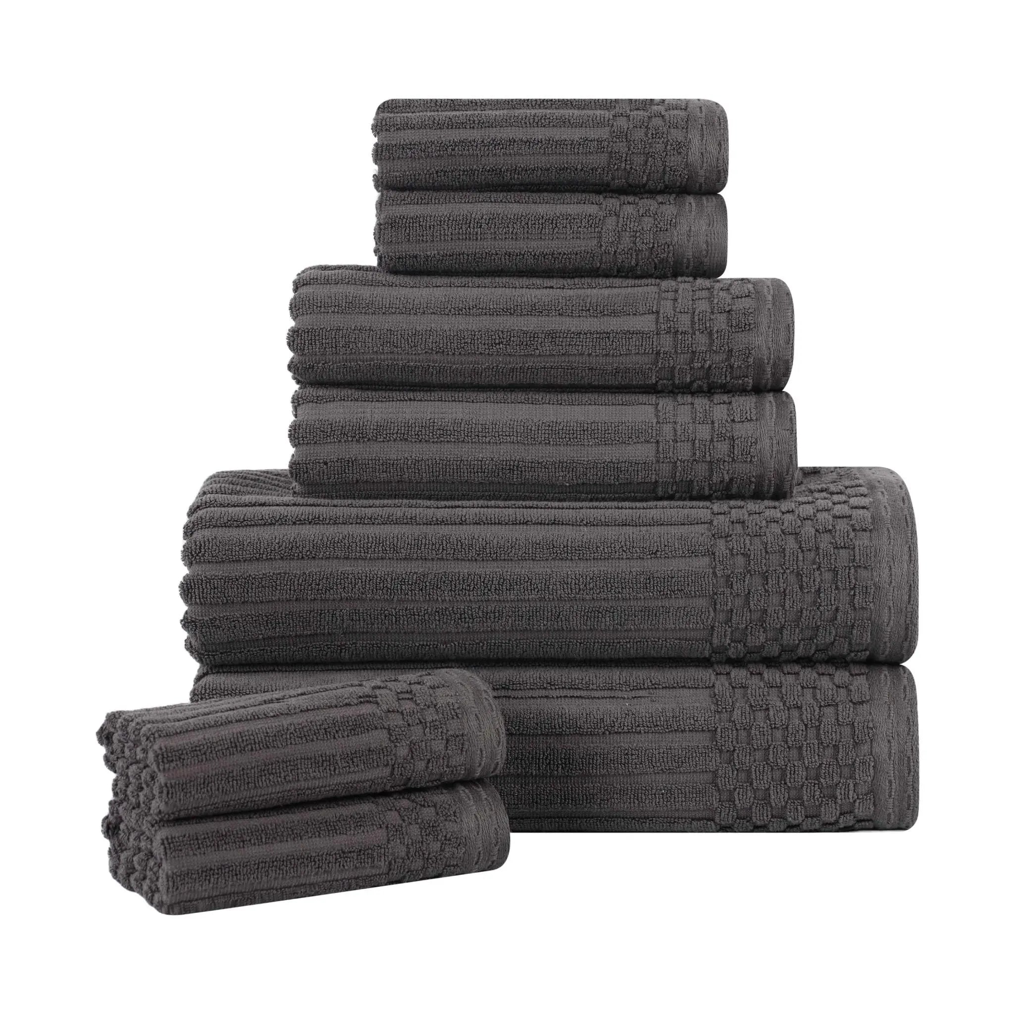 Checkered-Ribbed Cotton Blend 6 Piece Towel Set