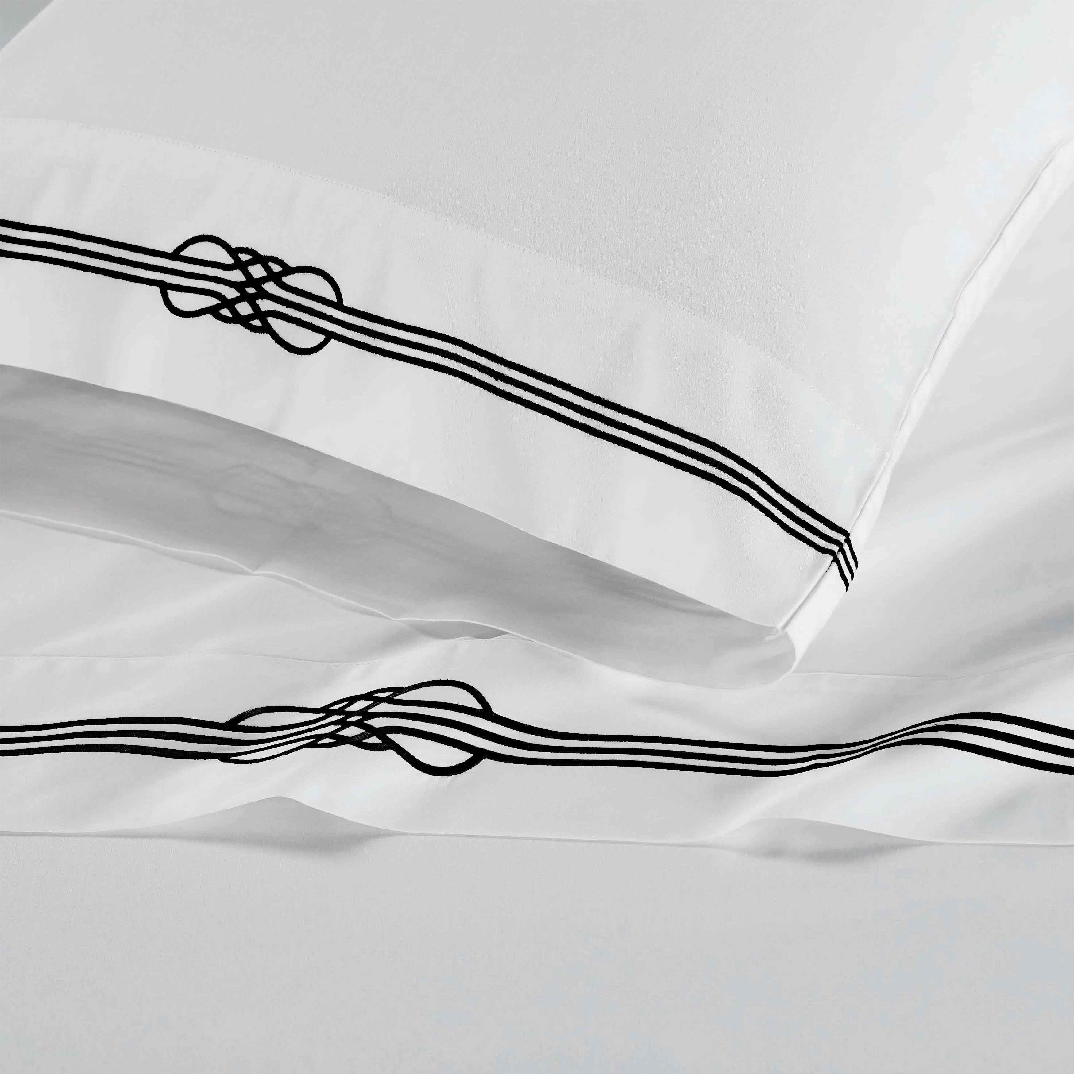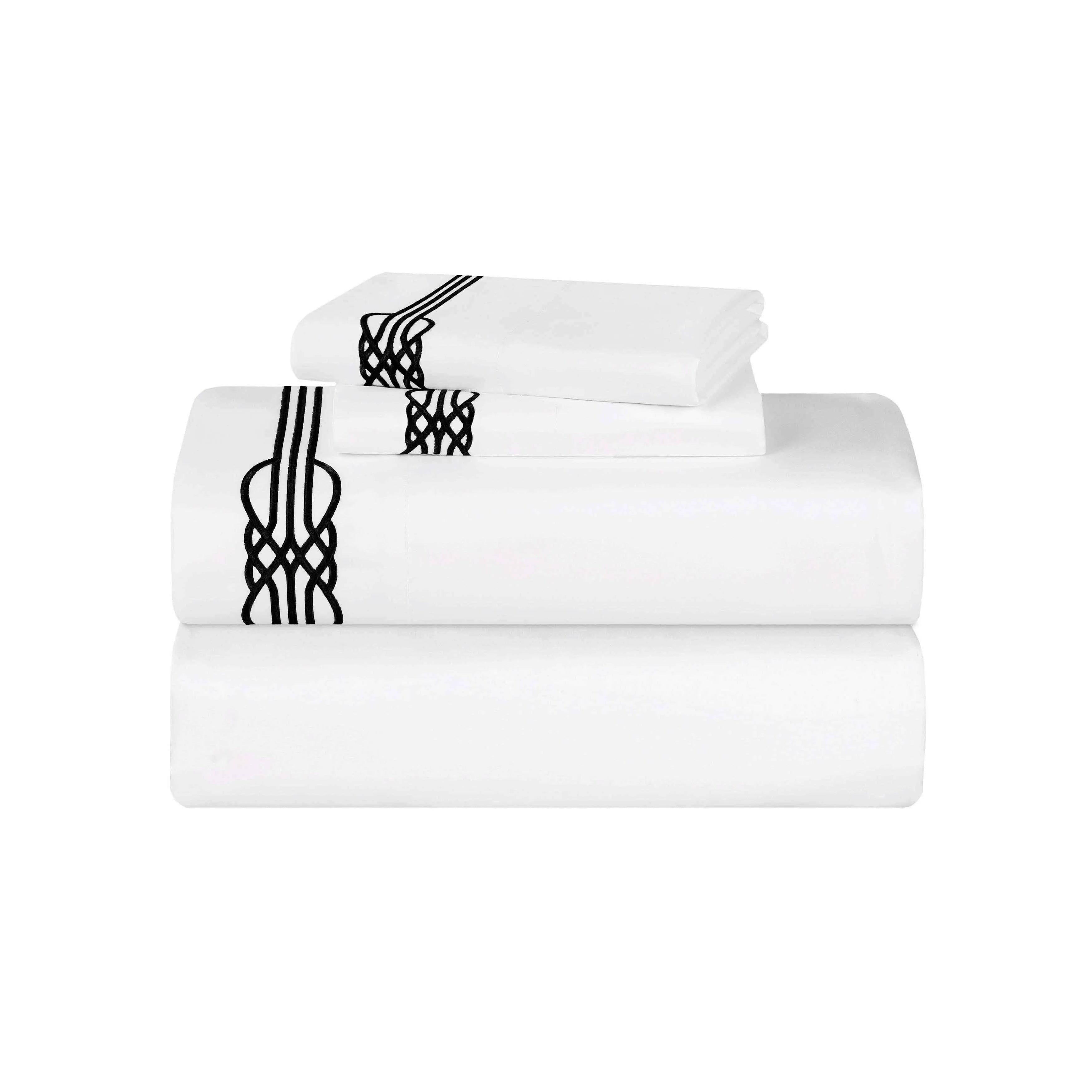 Indulge in the luxury of this knot – embroidered bed sheet set. Crafted from a smooth, high – quality cotton or cotton – blend fabric, it offers both durability and comfort. The set comes in a classic white base color, adorned with elegant knot – like embroidery patterns in various colors, creating a refined and unified look for your bedroom.