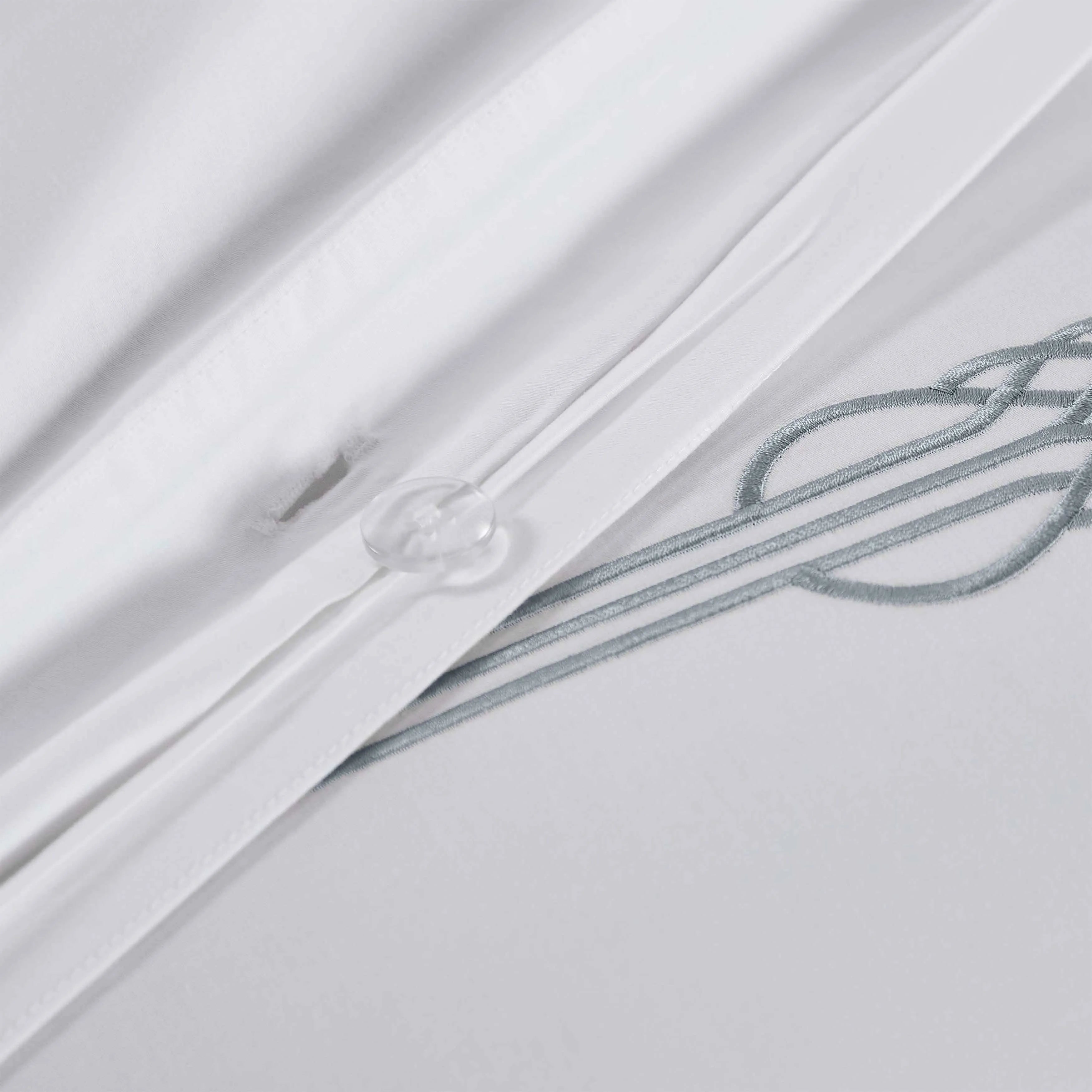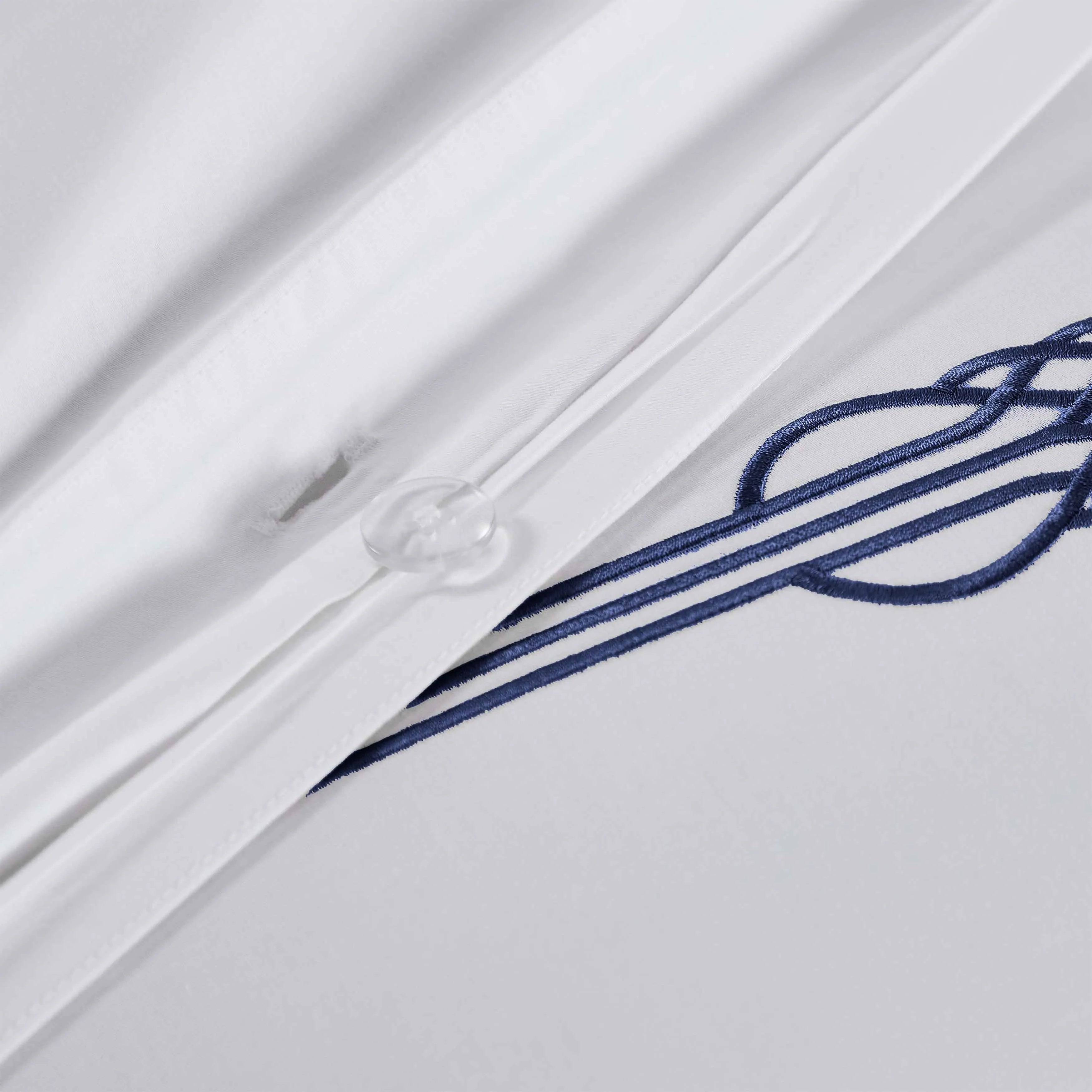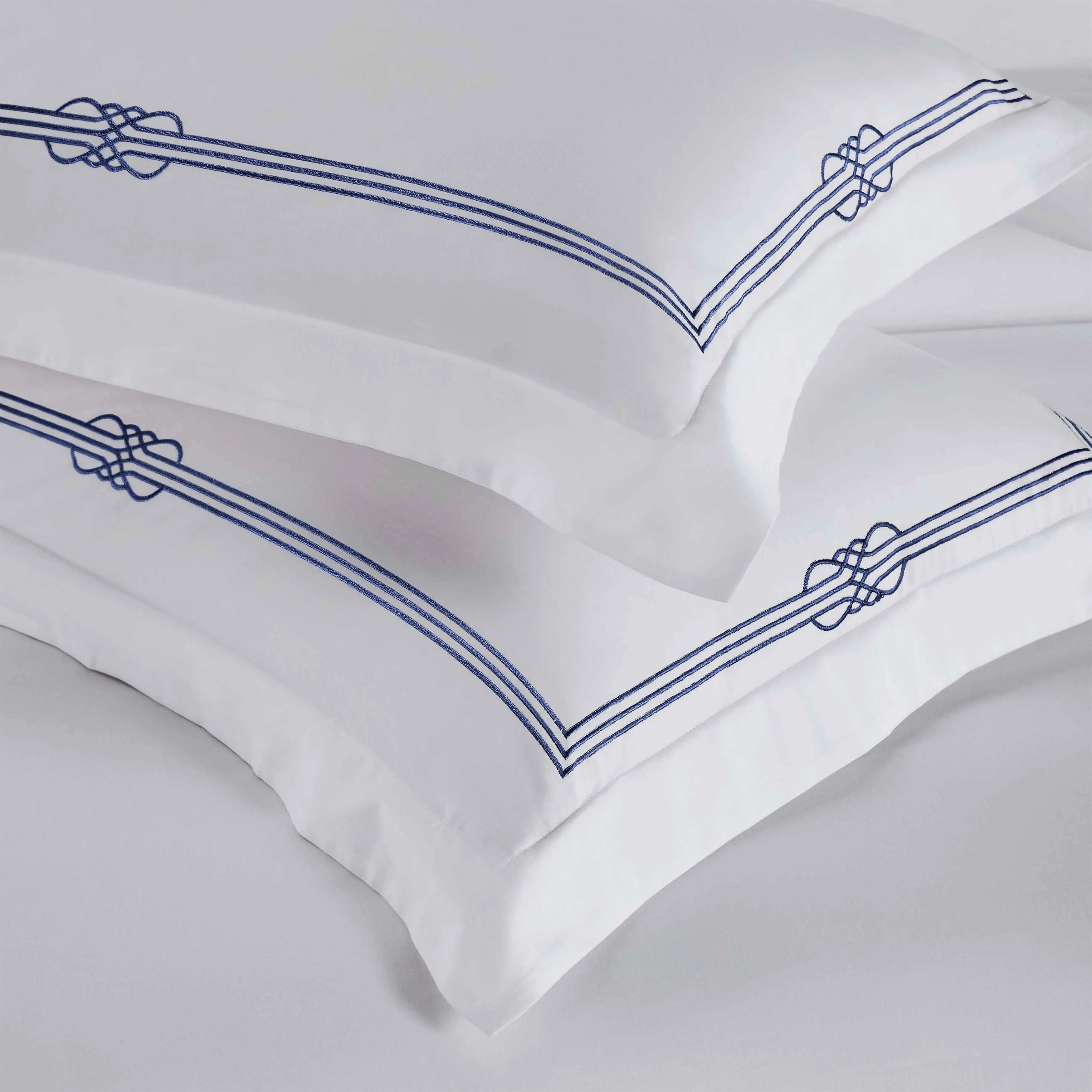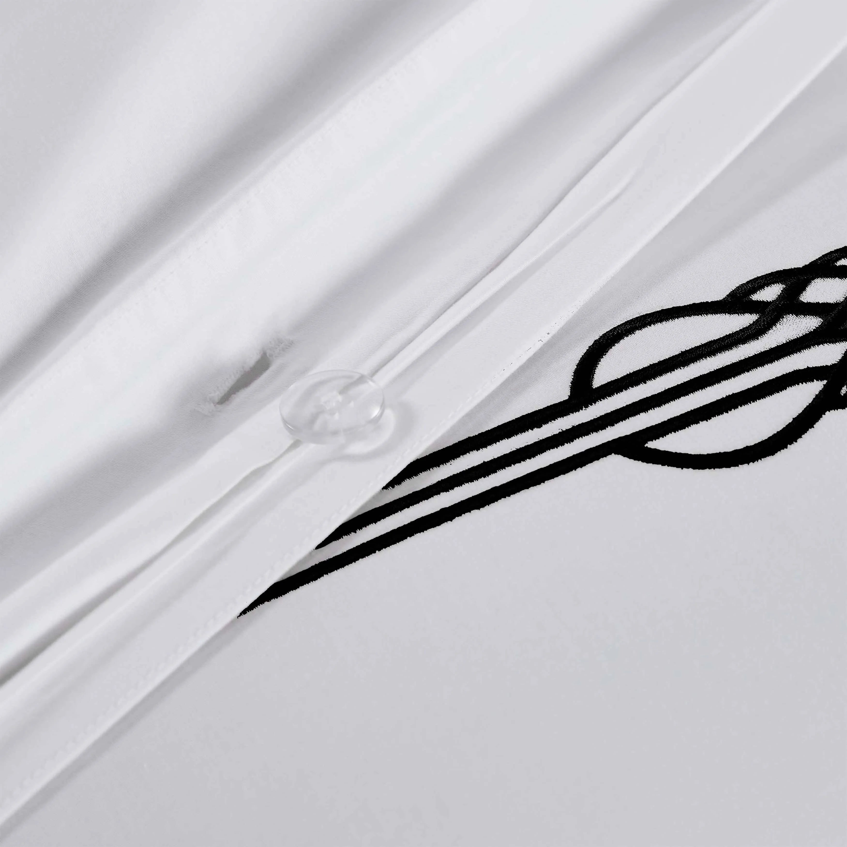 This bedding sheet and pillowcase set is a luxurious addition to any bedroom. Crafted from a high – quality white fabric, likely cotton or a blend, it has a smooth, lustrous finish. The set features an eye – catching knot – motif embroidered trim in various colors, adding a touch of elegance and style.