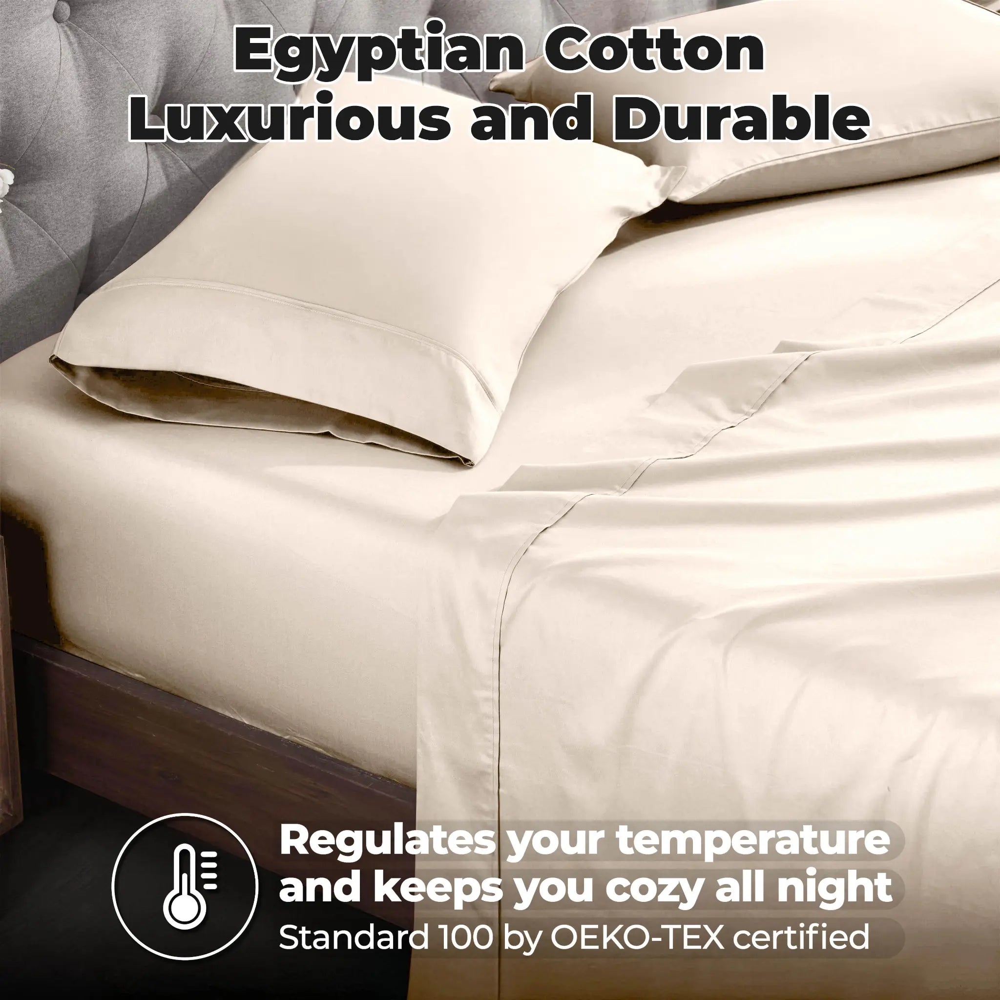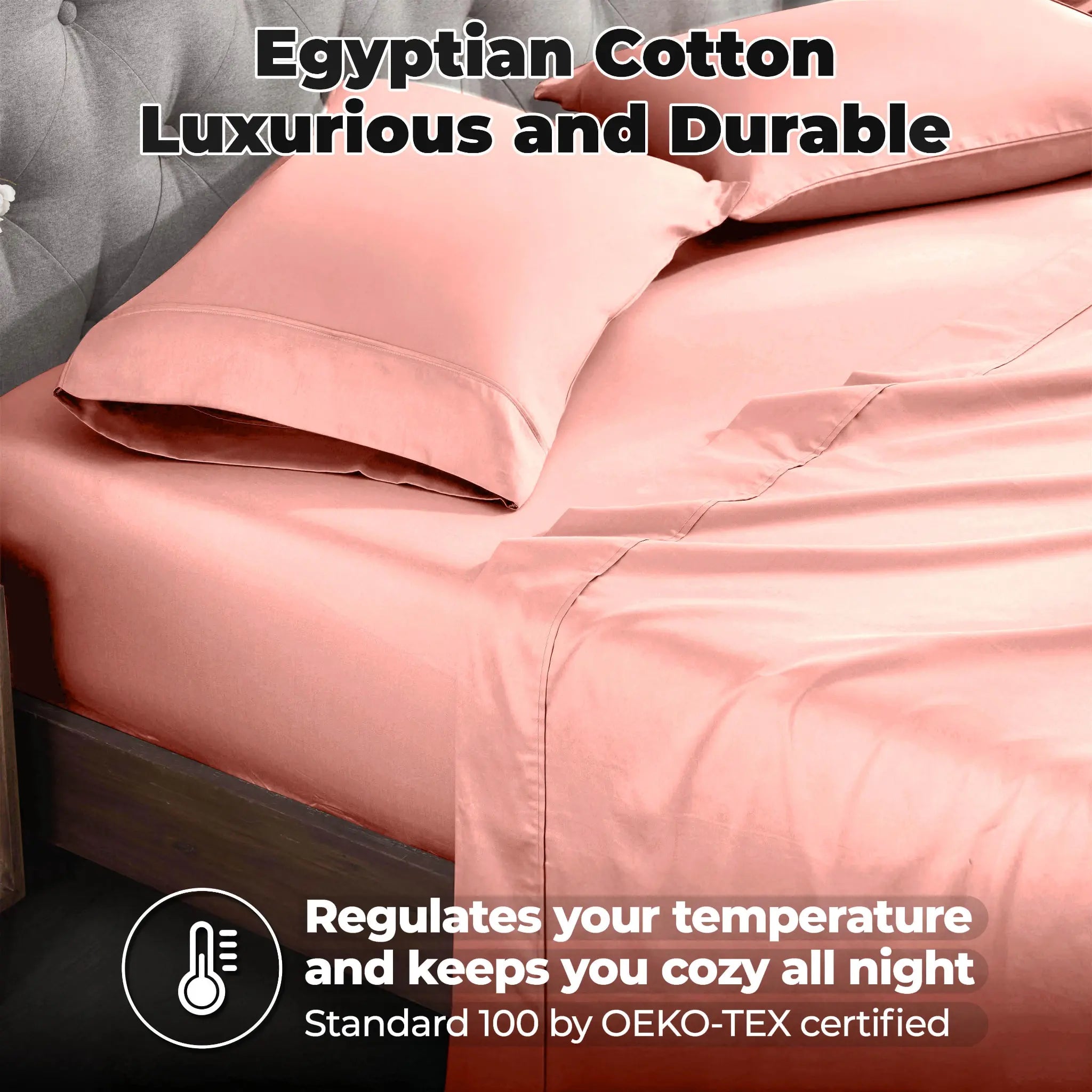 This is a set of bed sheets crafted from sateen – weave Egyptian cotton. It features a minimalist design with clean seams and subtle piping on pillowcases. The sheets come in a range of solid, light – toned colors, offering both style and comfort for your bedroom.