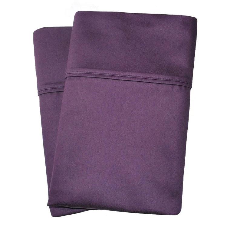 This is a set of pillowcases crafted from a smooth and shiny fabric, likely a satin or sateen weave. With a minimalist design featuring a decorative top cuff, they add a touch of elegance. Available in neutral tones like ivory and white, they are perfect for enhancing the look of your bedding.