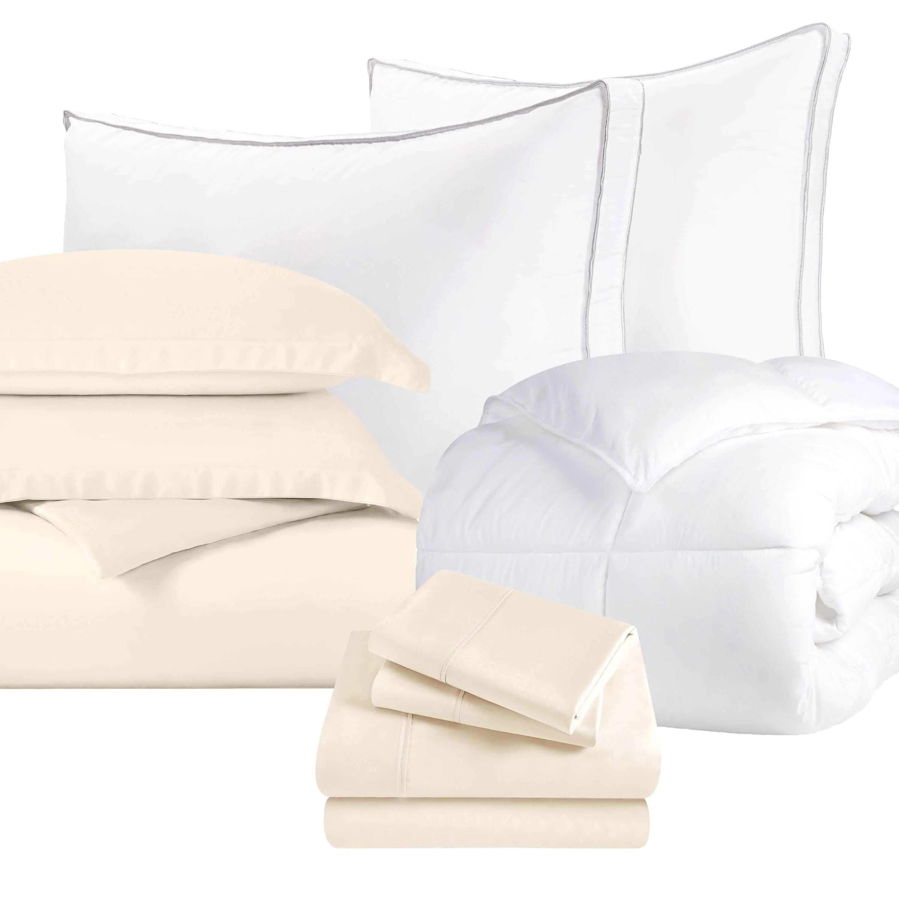 This bedding bundle is a comprehensive solution for your bedroom. It includes a fitted sheet, flat sheet, pillowcases, and a white duvet/comforter. The smooth and lustrous cotton – blend fabric gives it a high – quality look, and it comes in four elegant color options to match different decor styles.