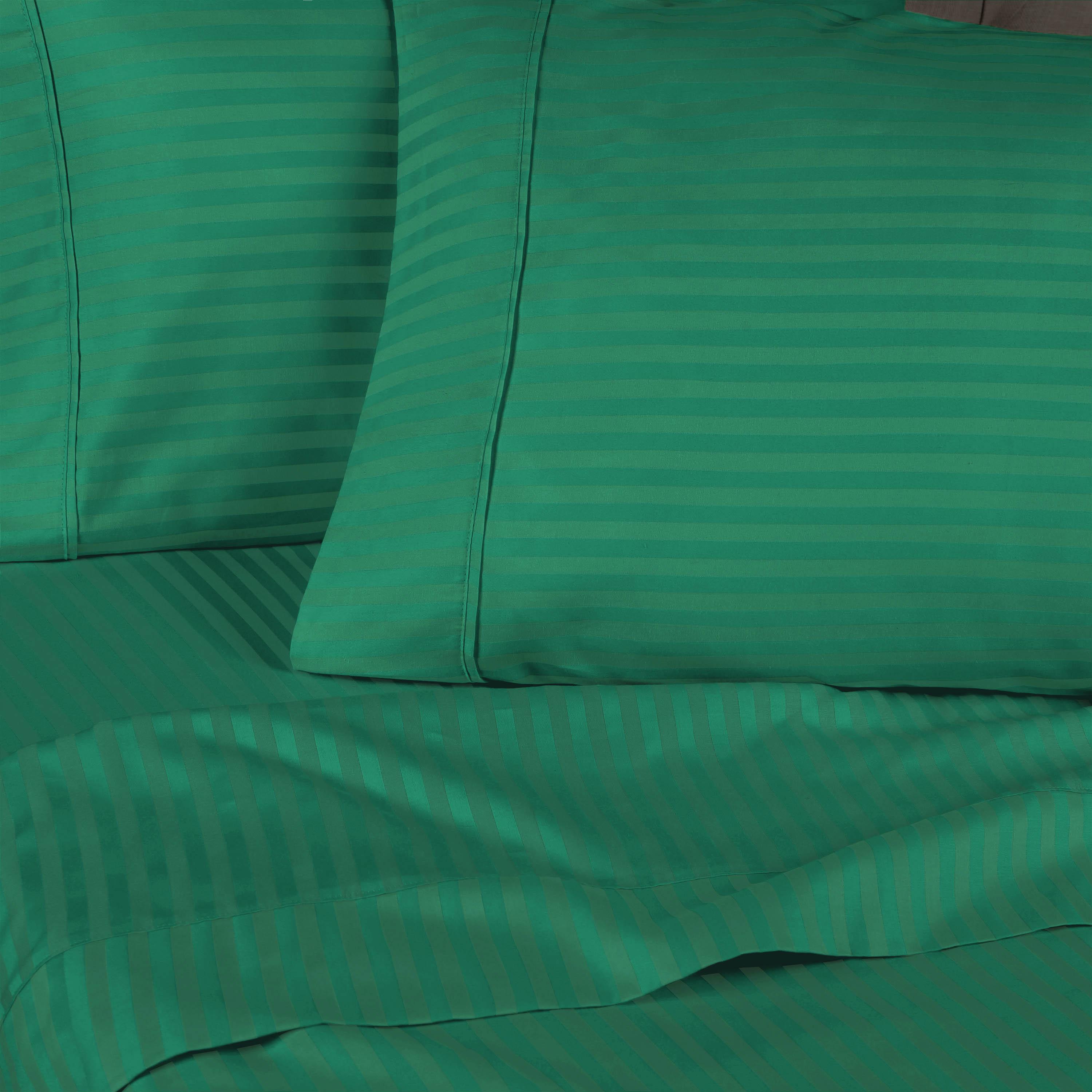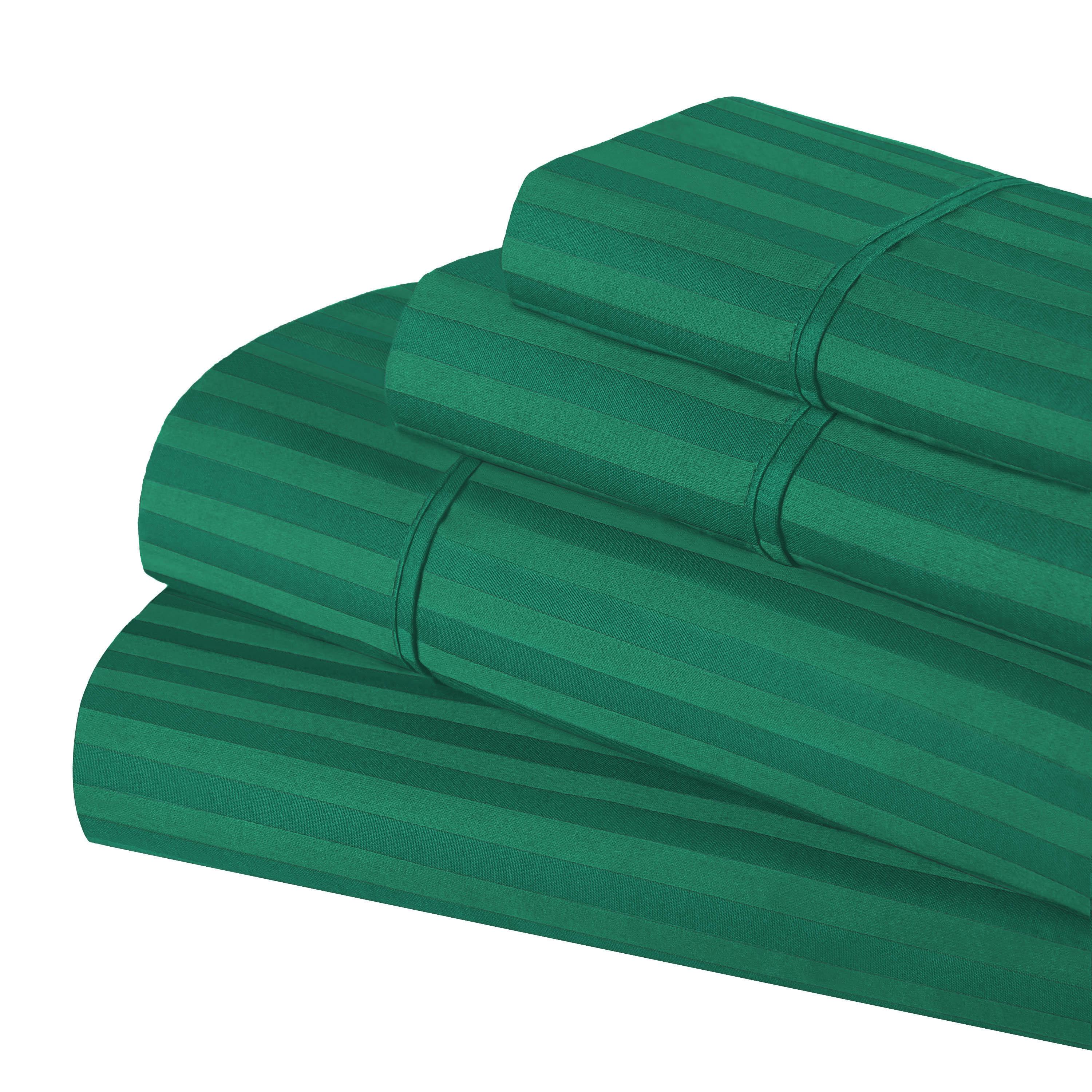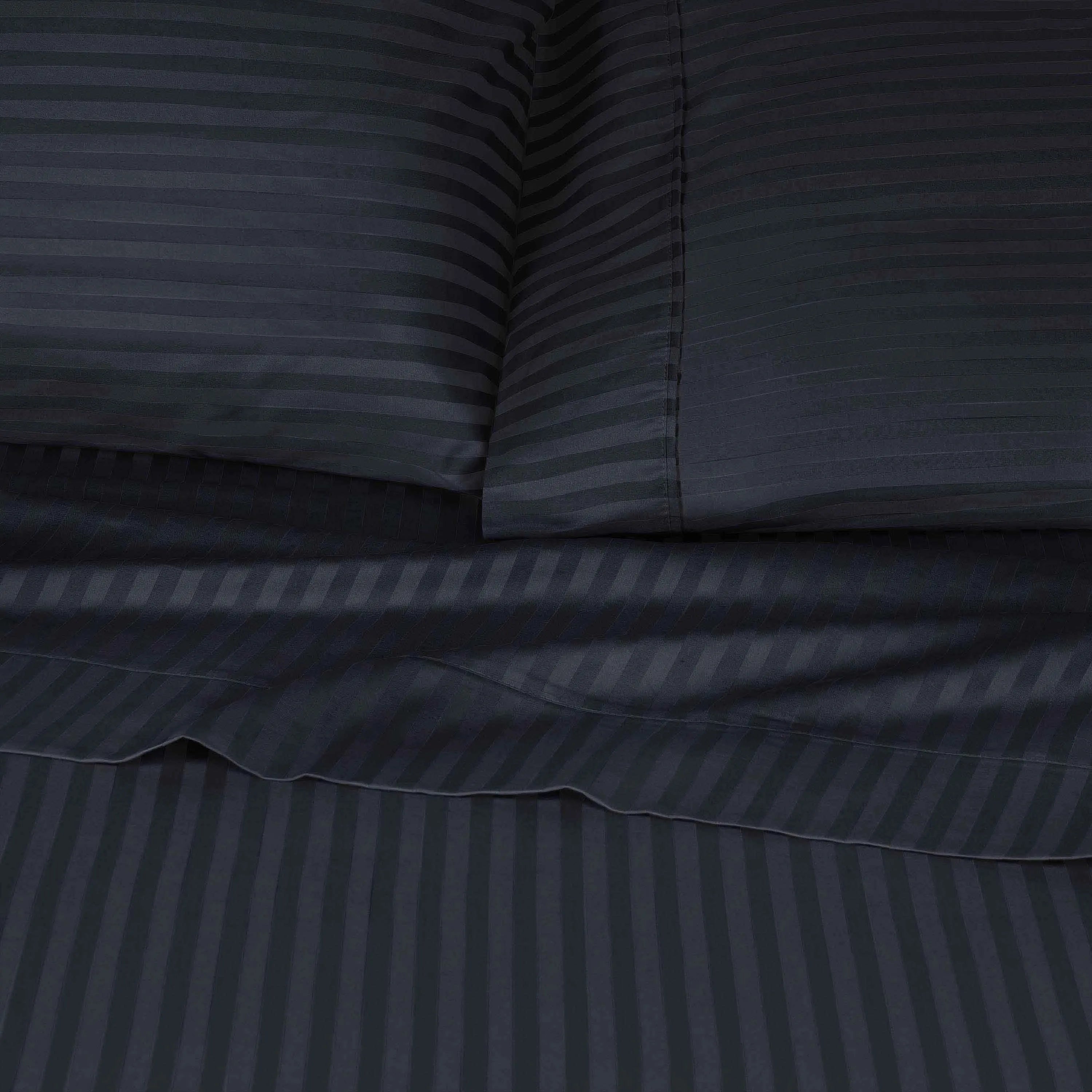 This bed sheet set offers a classic look with its vertical-striped design. Crafted from 100% Egyptian Cotton, it has a smooth, silky feel and a high thread count of 300, ensuring durability and comfort. The set comes with multiple pieces including a fitted sheet, flat sheet, and pillowcases, suitable for various bed sizes.