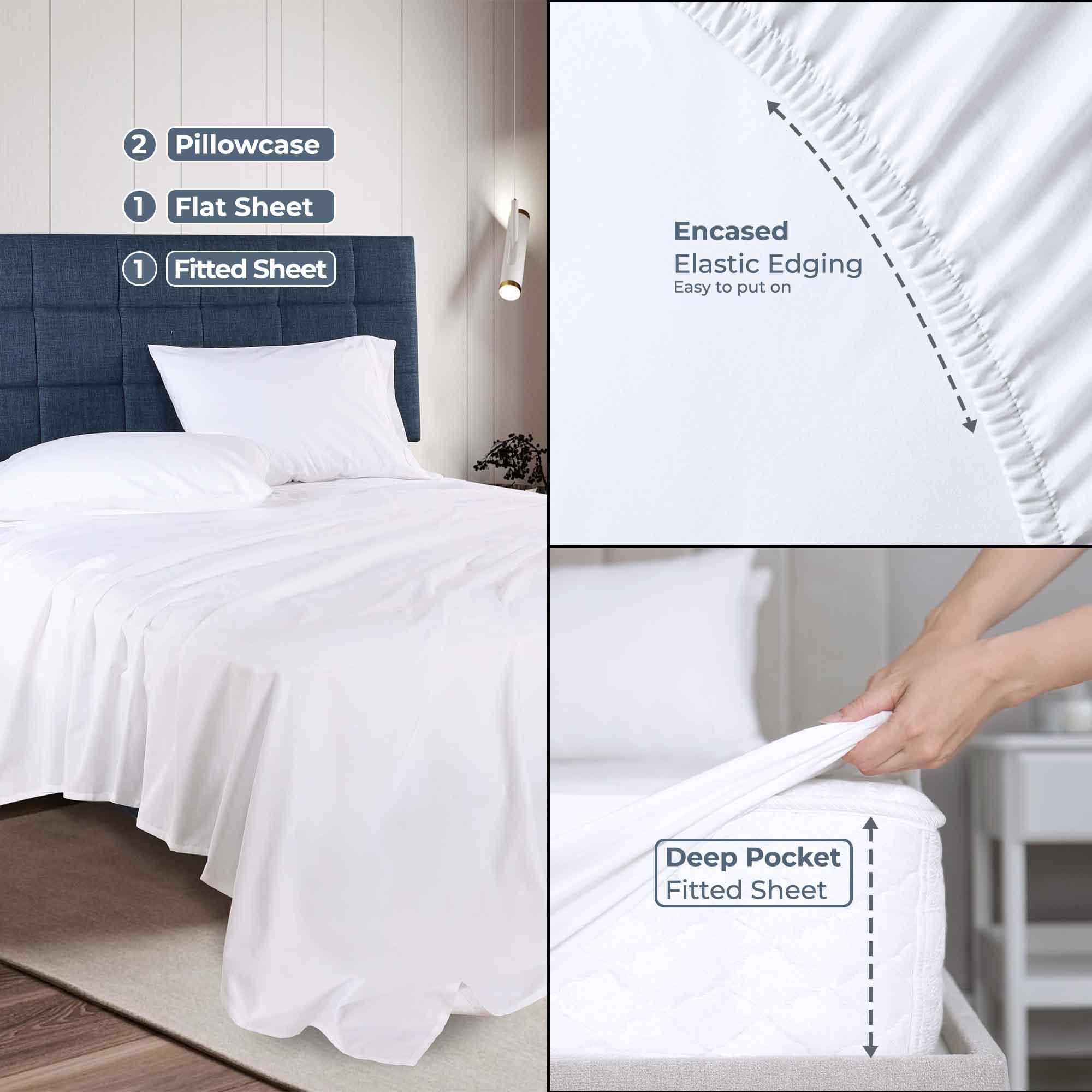 - Encased Elastic Edging: On the fitted sheet for easy and secure fitting around mattresses.