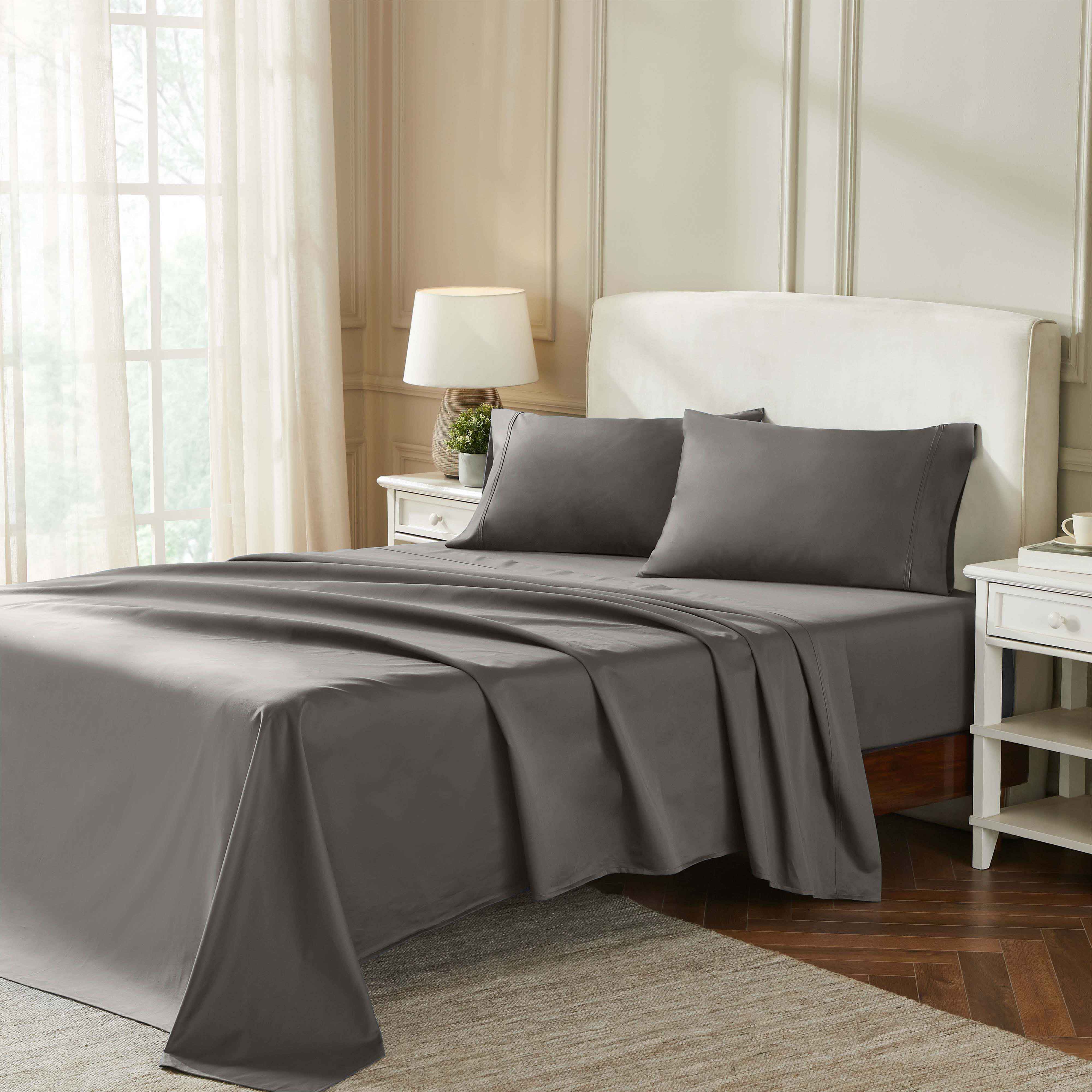 This is a double – stitched sateen cotton bed sheet set that offers both comfort and style. It comes in a range of solid, neutral colors and is crafted with high – quality materials. The set includes a fitted sheet, a flat sheet, and multiple pillowcases, making it a complete bedding solution for your bedroom.