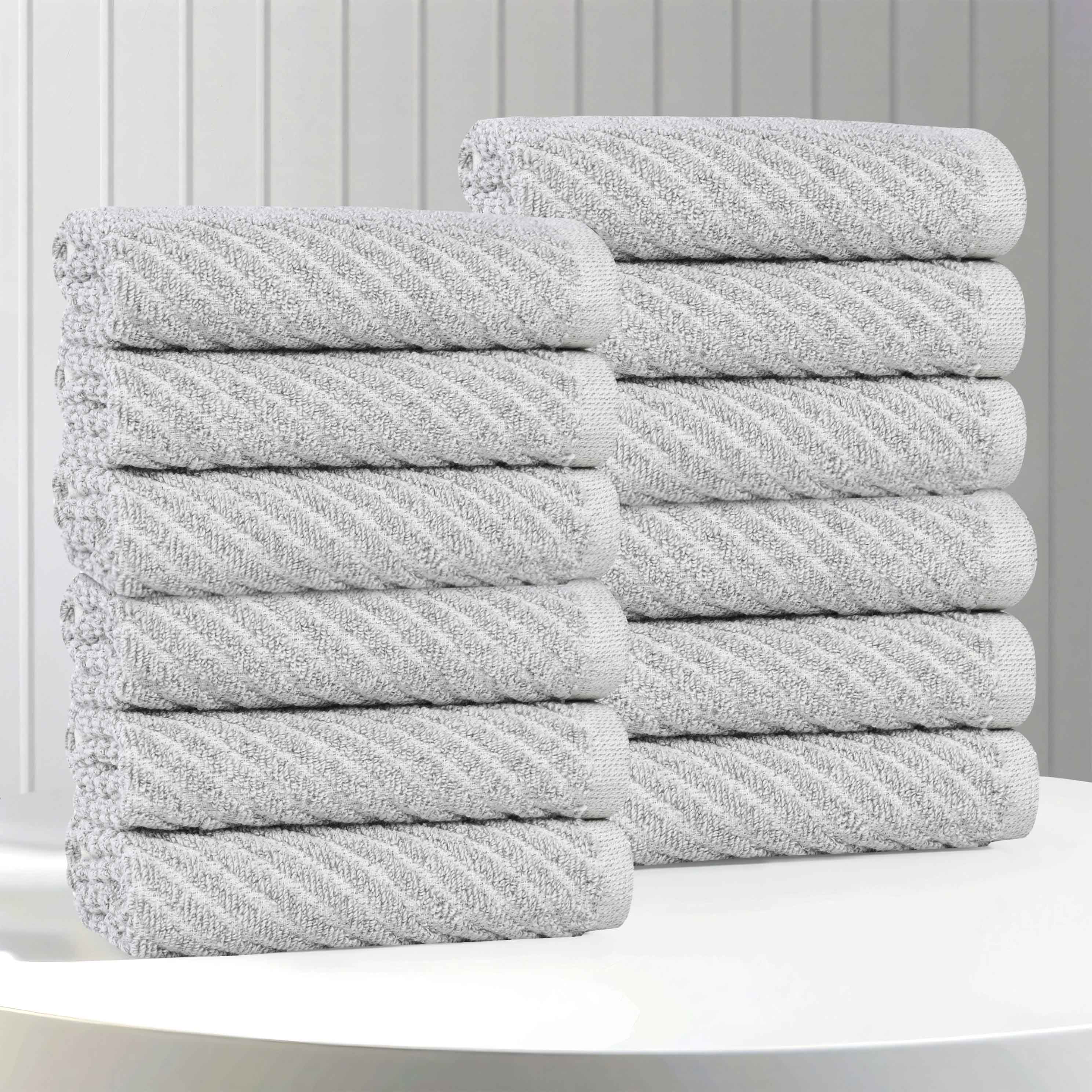 This is a set of 12 face towels crafted from a blend of 80% cotton and 20% viscose. The towels come in a variety of colors including beige, charcoal, denim blue, and platinum, and feature a diagonal chevron – like textured pattern. The thick and plush fabric gives them a high – quality look and feel, making them both absorbent and comfortable.