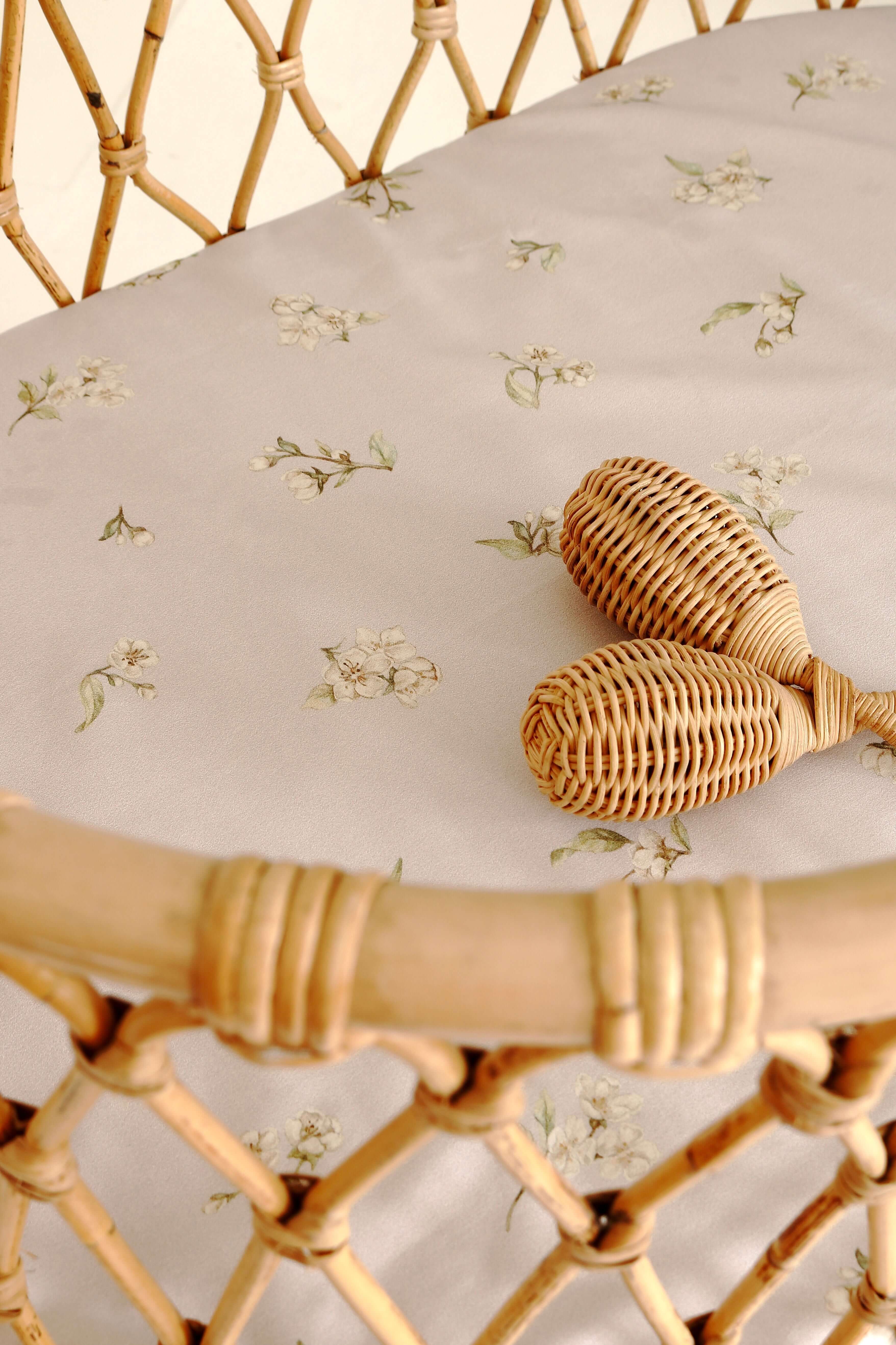 Bring a soft and dreamy look to your nursery with our Apple Blossoms on Lilac fitted sheet. Made from soft, enzyme-washed cotton, it features a delicate pattern of tiny apple blossoms in warm tones on a muted lilac background — calm, romantic, and timeless. Perfect for adding a gentle vintage charm to your baby’s room. The elasticated edges ensure a snug fit and keep the sheet securely in place, offering your little one a soft, breathable surface to sleep and play on. Available in multiple sizes to fit cribs, toddler beds, or changing baskets. Product details: • Fabric: 100% enzyme-washed cotton — soft and breathable • Pattern: Tiny apple blossoms in warm tones on lilac background • Sizes: Available from crib to single bed • Fit: Elasticated edges for a secure fit • Care: Machine wash at 40°C • Preparation time: 2–3 business days • Handmade with care in the Netherlands by Matuu Perfect for: • Crib or toddler bed — ideal for babies and young children • Soft, romantic, and vintage-inspired nursery styling • Matching with Matuu bedding, canopies, pillows, and décor • A lovely handmade gift for new parents or baby showers