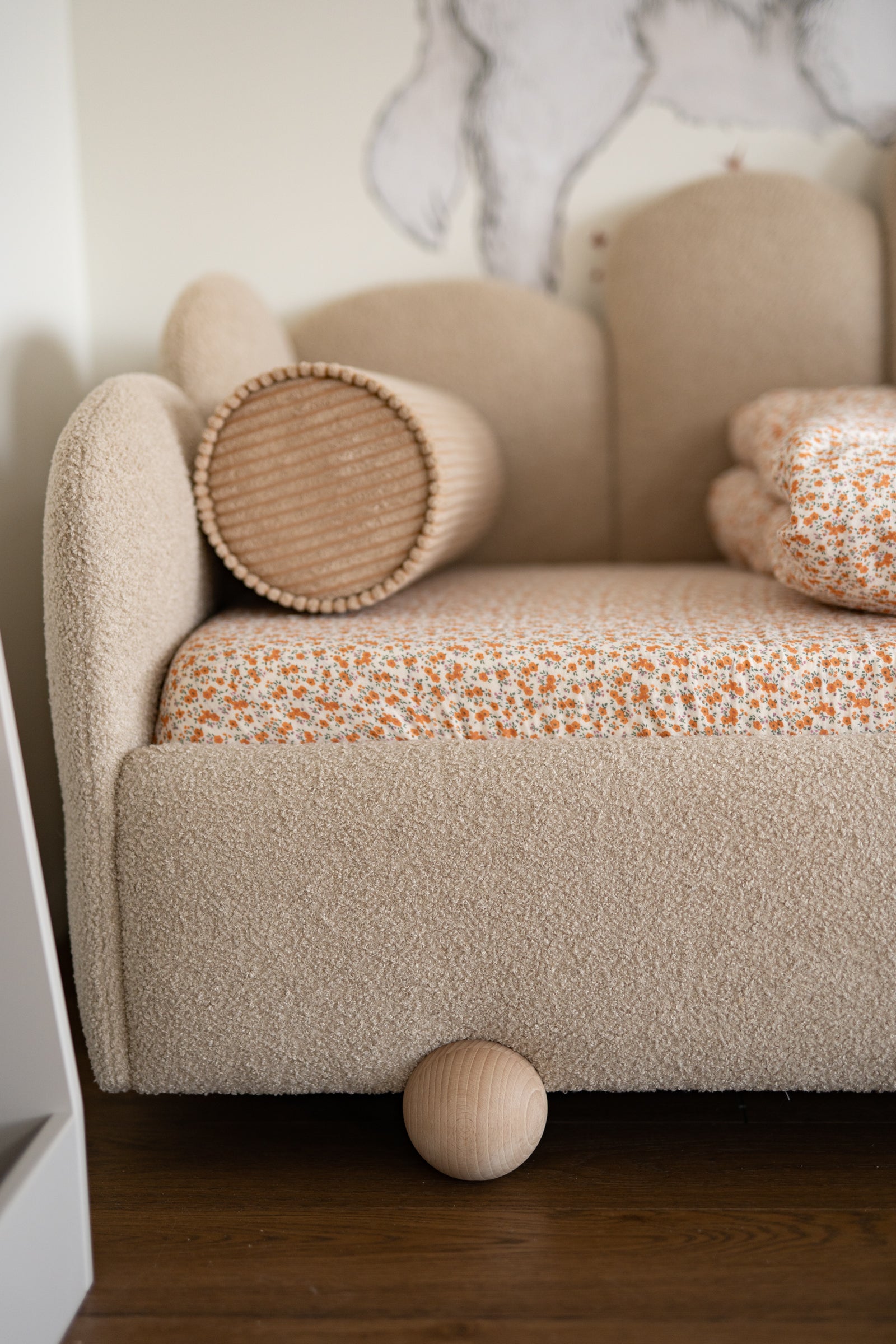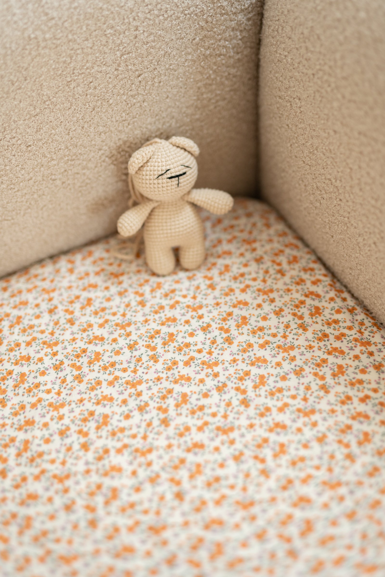 Add a touch of autumn charm to your nursery with our Autumn Meadow fitted sheet. Made from soft and breathable cotton muslin, it features a delicate pattern of tiny orange flowers on a creamy background β warm, gentle, and full of cozy character. Designed for comfort and practicality, the elasticated edges ensure a snug fit on the mattress, keeping it perfectly in place while your baby sleeps or plays. Available in multiple sizes to suit cribs, toddler beds, or changing baskets. Β Β Product details: Β β’ Fabric: 100% cotton muslin (double gauze) β soft and breathable β’ Pattern: Mini orange flowers on cream background β’ Sizes: Available from crib to single bed β’ Fit: Elasticated edges for a secure fit β’ Care: Machine wash at 40Β°C β’ Preparation time: 2β3 next business days β’ Handmade with care in the Netherlands by Matuu Β Β Perfect for: Β β’ Crib or toddler bed β ideal for babies and young children β’ Warm, cozy, and nature-inspired nursery styling β’ Matching with Matuu bedding, canopies, pillows, and dΓ©cor β’ A sweet handmade gift for new parents or baby showers