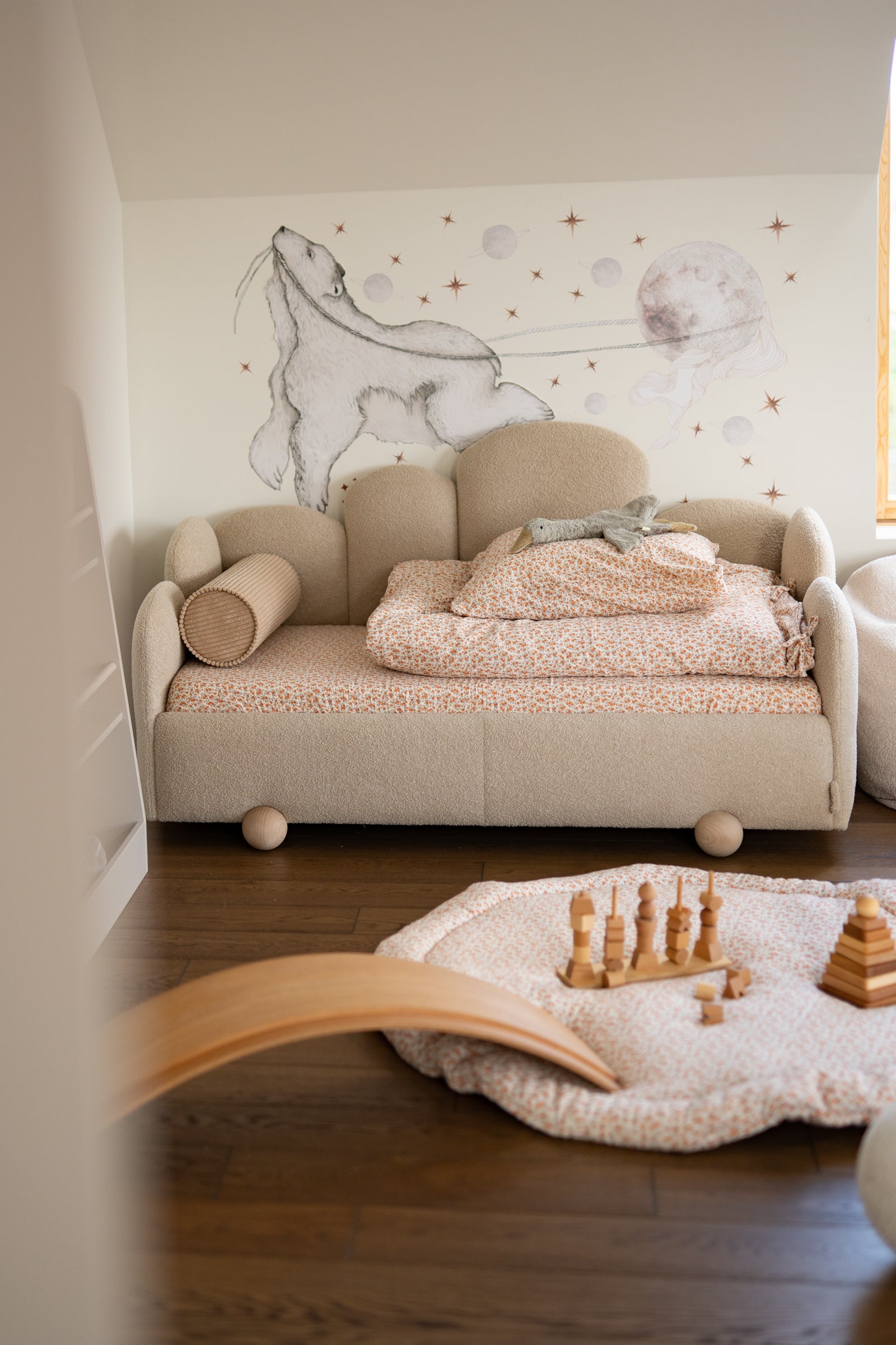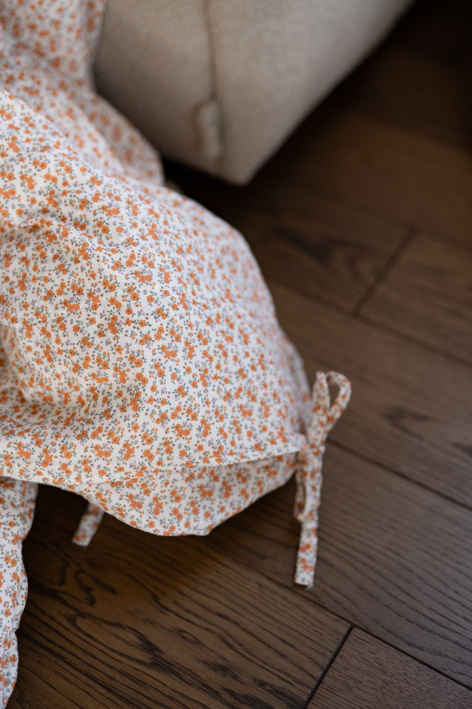 Add a warm and rustic charm to your child’s bedroom with the Autumn Meadow bedding set. Handcrafted in Amsterdam from ultra-soft, breathable muslin cotton, this set features a delicate meadow-inspired floral and foliage pattern in cozy autumn tones. The subtle botanical print instantly brings a cocooning, nature-inspired atmosphere. Closing the duvet cover and pillowcases with elegant bows adds a handcrafted, minimal finish—perfect for nurseries, toddler beds, and cozy kids’ rooms. Product Details Material: 100% muslin cotton – OEKO-TEX® certified for safety and softness Design: Delicate Autumn Meadow print—floral & foliage elements in warm, autumnal hues Closure: Bow ties on duvet cover and pillowcases (no zippers or buttons) Care: Turn inside out; machine wash at 40 °C on gentle cycle Craftsmanship: Designed and handmade in Amsterdam by Matuu Perfect For Creating a cozy, vintage-inspired nursery Nature-themed or woodland-style kids’ rooms Snuggly toddler or single beds with a soft, timeless aesthetic Parents seeking artisan-made, breathable bedding Ideal as a baby shower or birthday gift that combines style and comfort