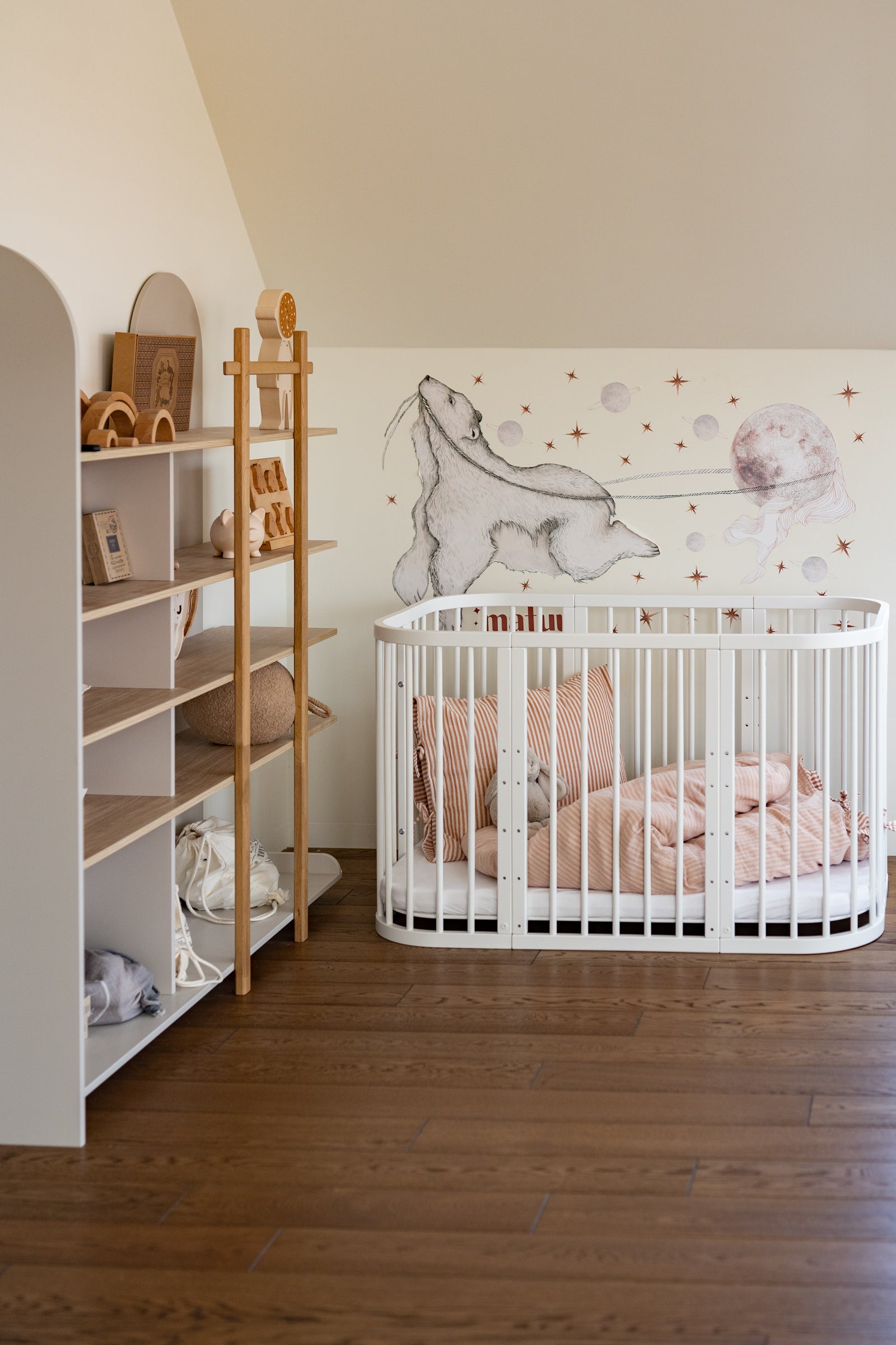 Bring subtle elegance and cozy charm into your child’s room with the Beige Duo Stripes bedding set. Handcrafted from soft, breathable muslin cotton, this reversible design features two complementary stripe patterns: wider beige stripes on the outside and fine, delicate stripes on the inside – a timeless detail that adds texture and sophistication to any nursery or bedroom. Lightweight, breathable, and OEKO-TEX® certified, this bedding is safe and gentle for sensitive skin, offering comfort through every season. Instead of zippers or buttons, the duvet cover closes with cotton ties, creating a soft, minimal look while keeping the duvet securely in place. Each set is handmade in the Netherlands, available in multiple sizes from crib to single bed. Product Details Material: 100% muslin cotton – OEKO-TEX® certified Design: Beige Duo Stripes – wide stripes + fine delicate stripes Closure: Cotton ties (no zippers or buttons) Sizes: Crib, cot, junior, toddler, and single bed Care: Machine wash at 30°C, gentle cycle Preparation time: 2–3 business days Handmade in the Netherlands by Matuu Perfect for Neutral and minimal baby rooms Scandinavian, Japandi, or boho interiors Cozy toddler or single beds Parents who love timeless, striped patterns Matching with other Beige Stripes accessories (fitted sheets, organizers) A thoughtful baby shower or birthday gift