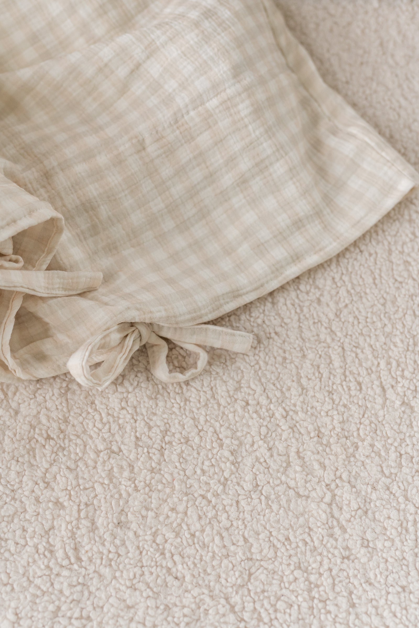 Create a cozy and timeless sleep space with our Beige & Sage Gingham bedding set – made from soft, breathable cotton muslin in a delicate checkered pattern. The warm beige and sage green tones bring a natural, calm atmosphere to any baby or toddler room. This bedding set includes a duvet cover and pillowcase, both finished with cotton ties instead of buttons or zippers – safe, stylish, and easy to care for. The lightweight double gauze muslin fabric is OEKO-TEX® certified and gentle on sensitive skin. Available in multiple sizes – from crib to single bed – so your child can grow in comfort. Product details: Fabric: 100% cotton muslin (double gauze), OEKO-TEX® certified Color: Beige & sage green gingham Closure: Cotton tie closures (no buttons/zippers) Sizes: Crib bed, toddler bed, single bed Care: Machine washable at 40°C, air dry, do not tumble dry Preparation time: 2–3 business days Handmade in the Netherlands by Matuu Perfect for: Baby or toddler bedding Boho or nature-inspired nursery décor Soft and breathable bedding for sensitive skin Gender-neutral or earthy-toned interiors A thoughtful, handmade gift for new parents