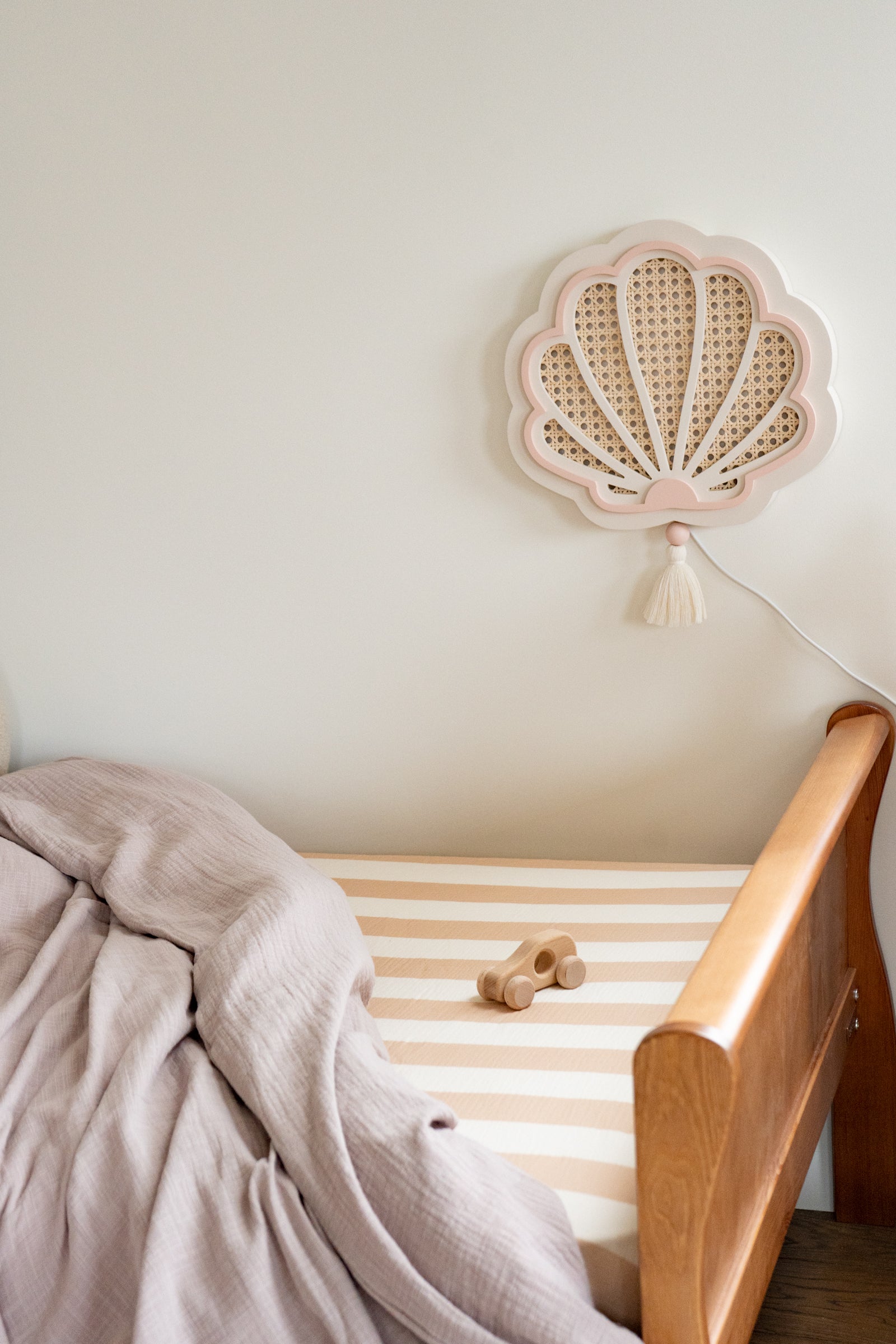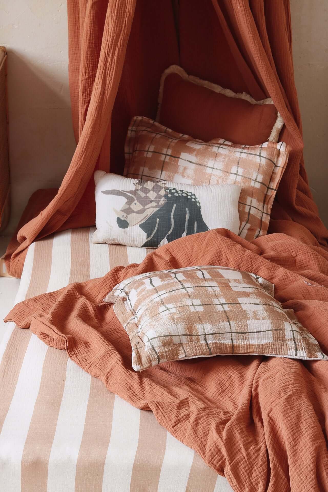Create a warm and timeless look in your nursery with our Beige Stripes fitted sheet. Made from soft and breathable cotton muslin, it features elegant beige stripes (5 cm wide) on a white background — a classic, neutral design that complements any style, from boho to Scandinavian interiors. The elasticated edges provide a perfect fit and keep the sheet securely in place, ensuring your baby sleeps and plays comfortably. Available in multiple sizes to suit cribs, toddler beds, or changing baskets.   Product details:  • Fabric: 100% cotton muslin (double gauze) — soft and breathable • Pattern: Beige stripes (5 cm wide) on white background • Sizes: Available from crib to single bed • Fit: Elasticated edges for a secure fit • Care: Machine wash at 40°C • Preparation time: 2–3 business days • Handmade with care in the Netherlands by Matuu   Perfect for:  • Crib or toddler bed — ideal for babies and young children • Neutral, warm, and timeless nursery styling • Matching with Matuu bedding, canopies, pillows, and décor • A thoughtful handmade gift for new parents or baby showers