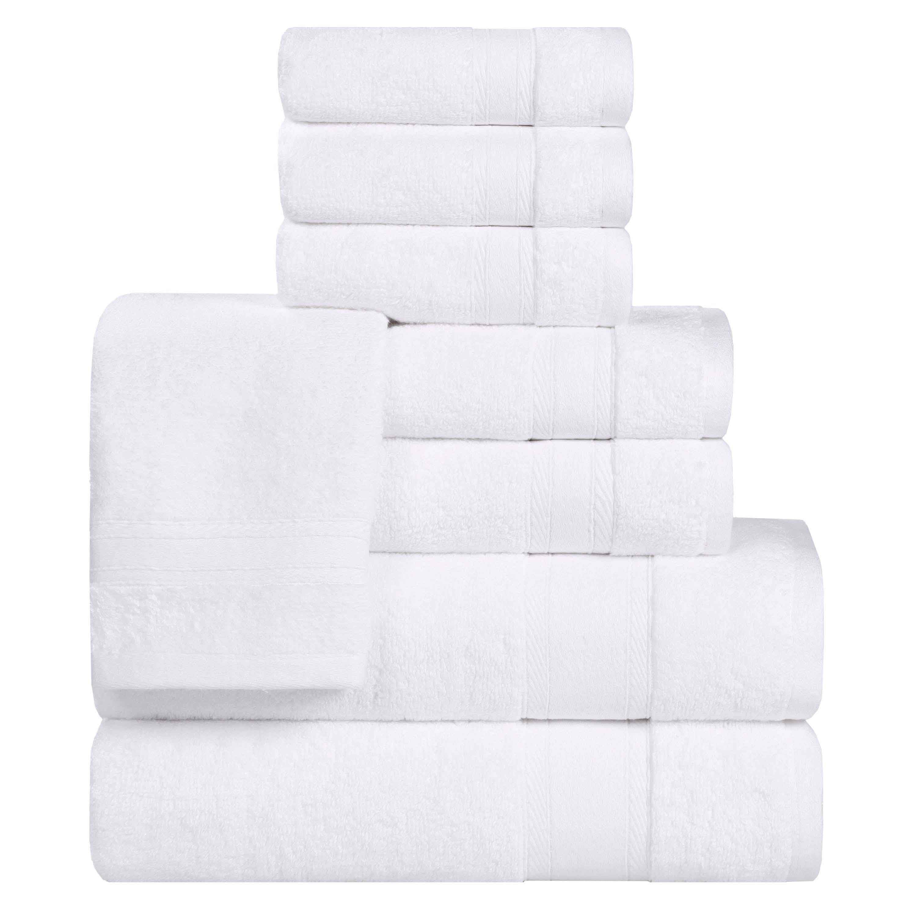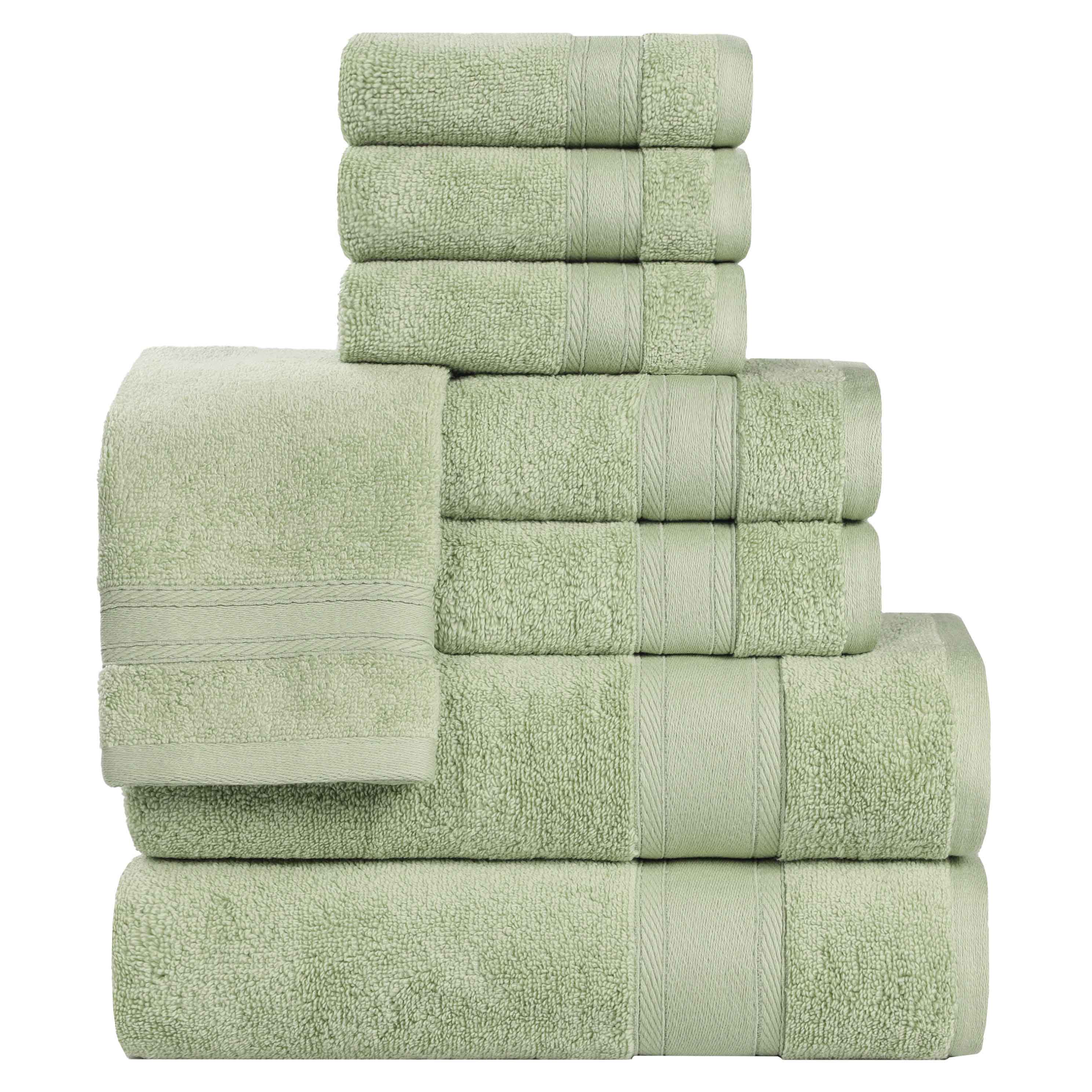 This is an 8-piece towel set designed for bathroom use. Made of 100% cotton with a textured terry cloth finish, it offers excellent water absorption. The set comes in solid neutral tones and includes different sizes to meet various personal hygiene needs.