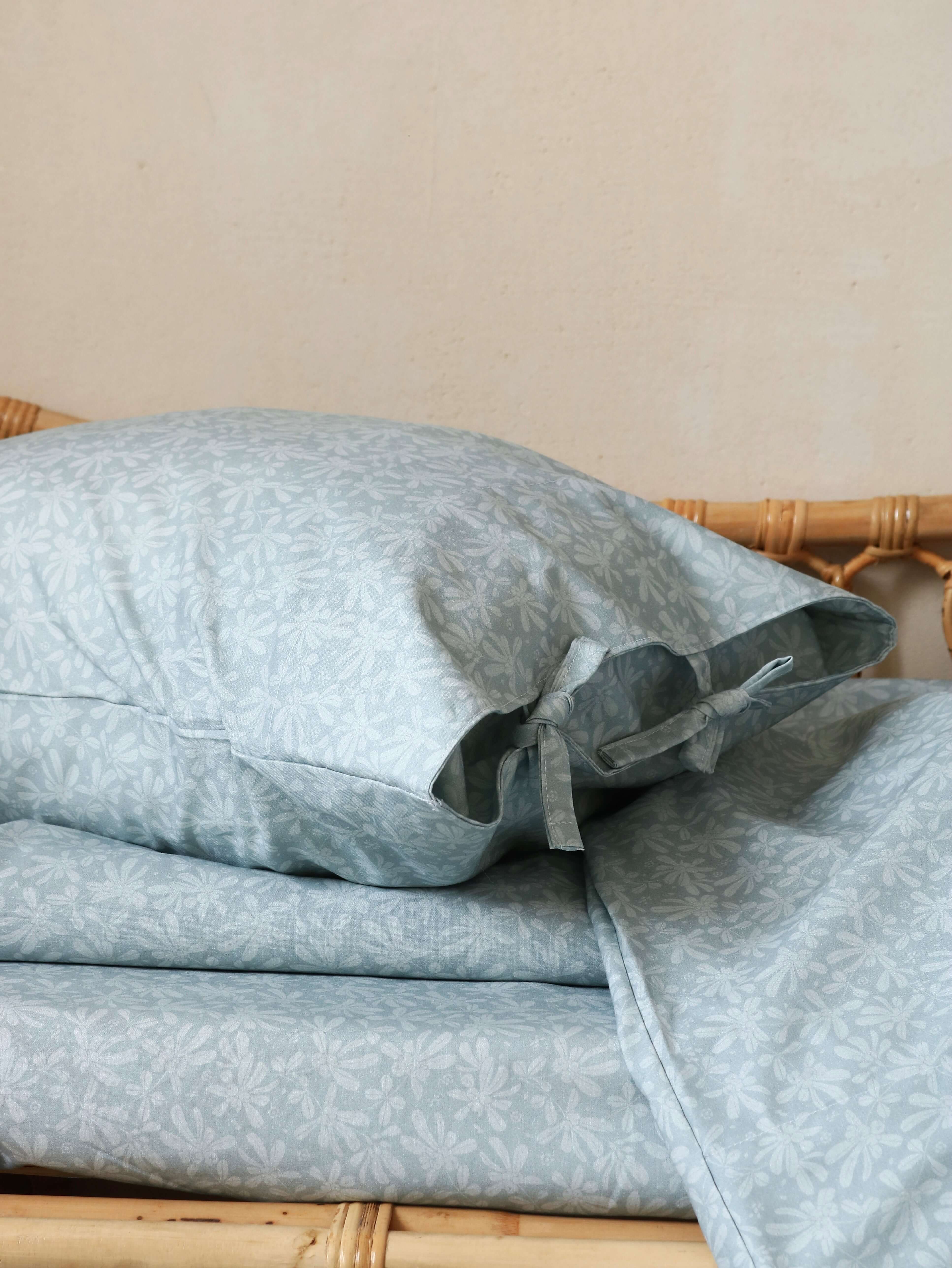 Bring a touch of calm elegance and timeless charm into your home with the Blue Barberries bedding set. Crafted from soft, enzyme-washed cotton, this bedding feels smooth, breathable, and gentle on the skin – perfect for restful sleep all year round. The subtle floral-inspired barberry pattern in muted blue tones creates a serene atmosphere, ideal for boho, vintage, Scandinavian, or nature-inspired interiors. Each set is lovingly handmade in the Netherlands, ensuring premium quality and attention to detail. The duvet cover closes with cotton ties instead of zippers or buttons, adding a minimal, natural finish while keeping everything securely in place. Designed for both kids and adults, this bedding set is OEKO-TEX® certified – safe for sensitive skin and eco-friendly. Product Details Material: 100% enzyme-washed cotton – OEKO-TEX® certified Print: Blue Barberries – subtle botanical pattern in soft blue tones Closure: Cotton ties (no zippers or buttons) Sizes: Crib, cot, toddler, junior, and single bed (also suitable for adults in single size) Set includes: 1 duvet cover + 1 pillowcase (toddler/single) or just duvet cover (crib size) Care: Machine wash at 40°C, do not tumble dry, iron on low if needed Preparation time: 2–3 business days Handmade in the Netherlands by Matuu Perfect for: Calming, nature-inspired interiors Baby, toddler, or kids’ rooms Neutral or vintage-style nurseries Cozy adult bedrooms (single size) Matching with Barberries accessories (canopy, playmat, garland) Baby shower or birthday gift