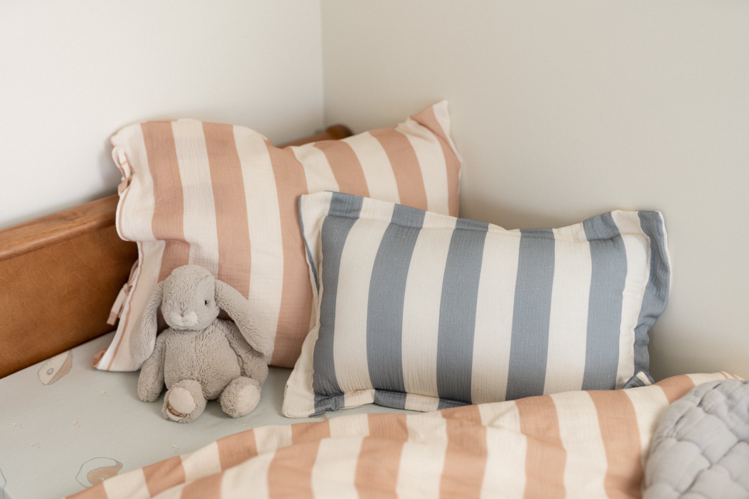 Gorgeous, blue stripes muslin pillow finished with fringes Size – 35×55 cm You can combine different pillows to discover better results. Washing instruction:Machine wash in 40 degrees, dry flat Processing time: 1-3 work days