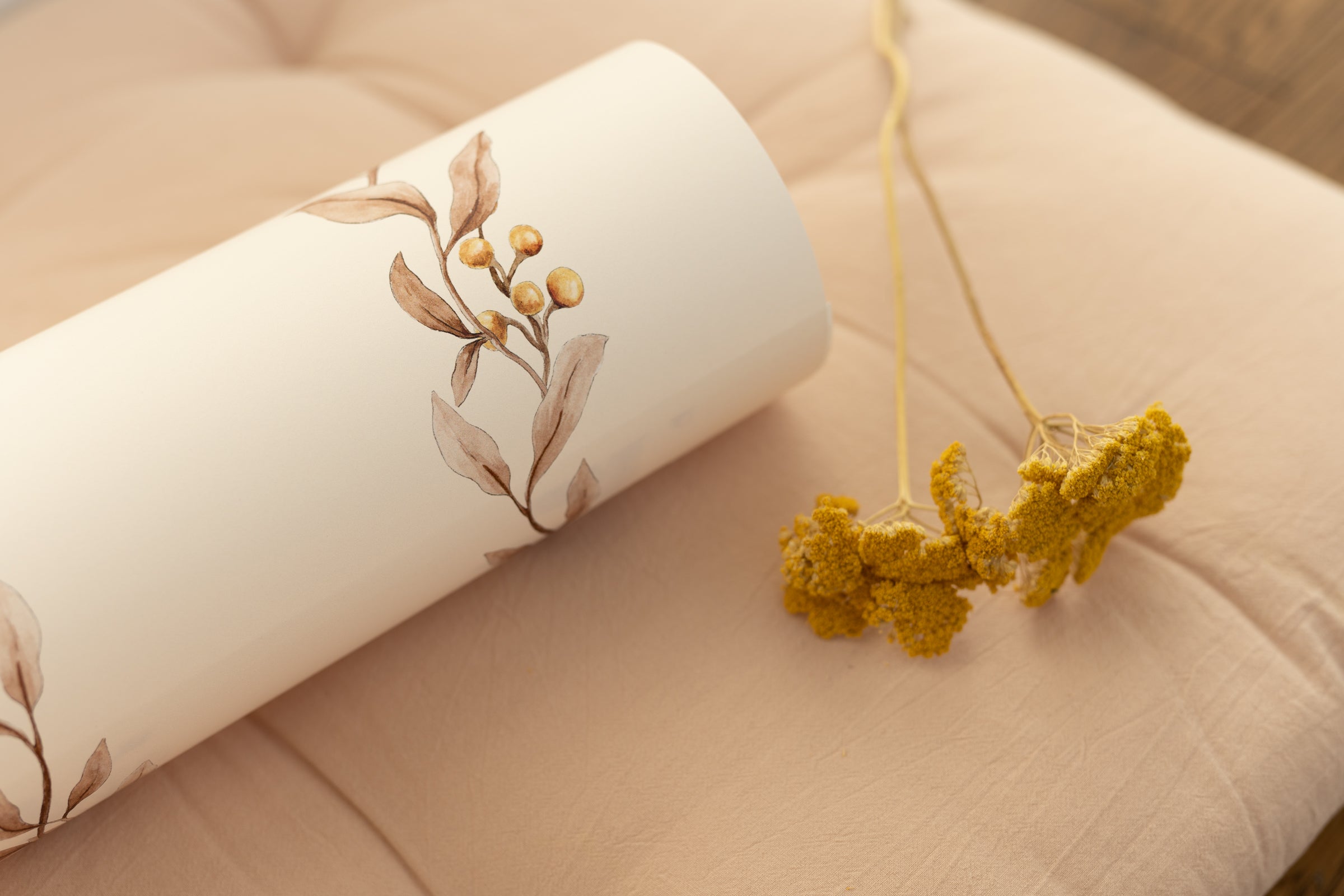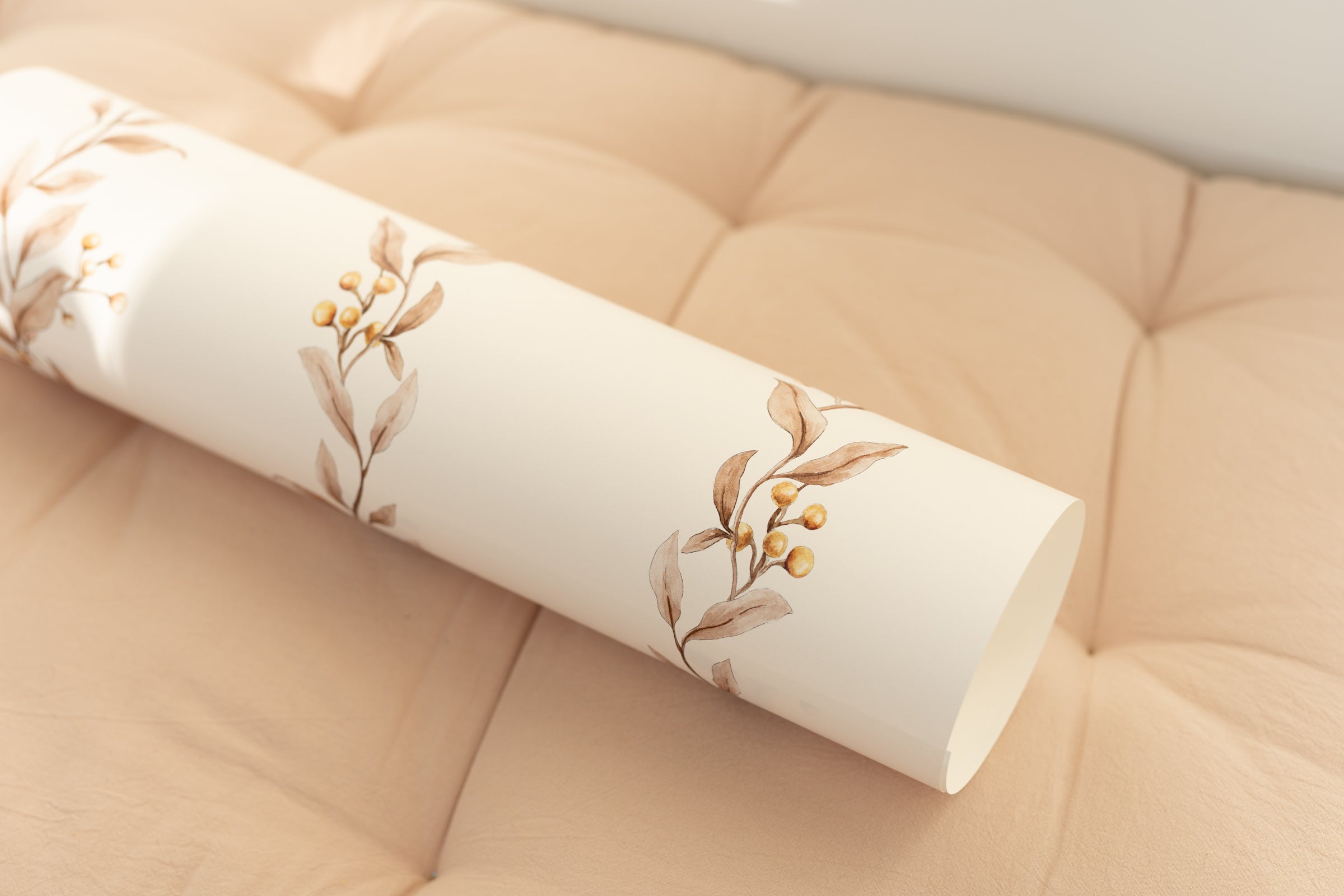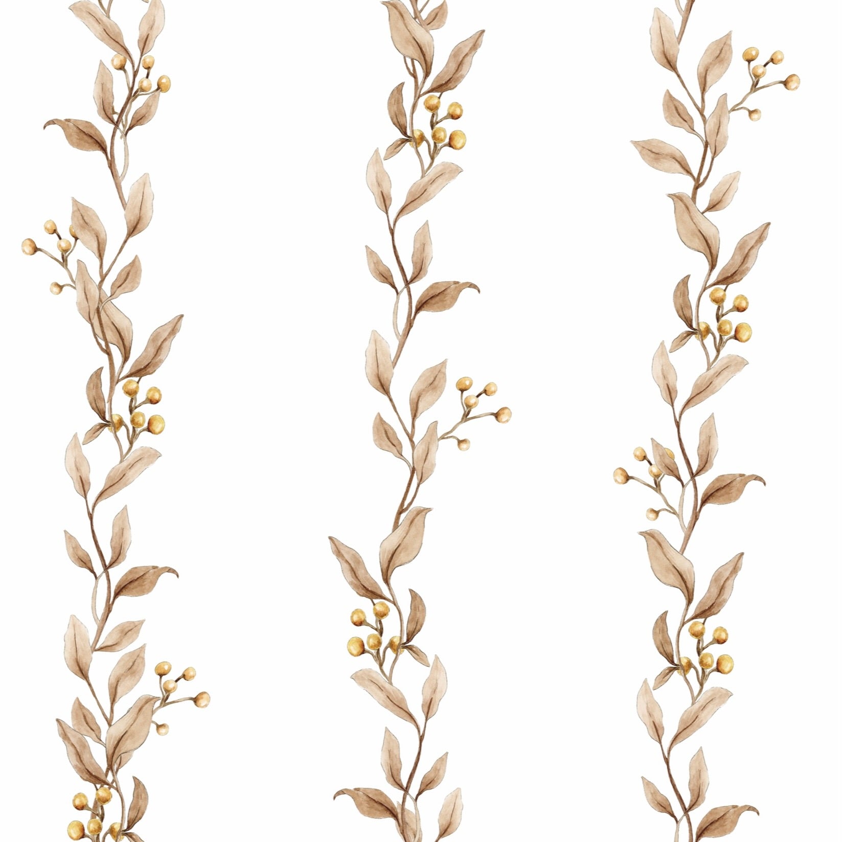 Bring timeless botanical charm into your home The Brown Leaf Garland on White wallpaper features delicate hand-painted leaf garlands flowing across a soft white background. Its warm, minimal design works beautifully in both adult interiors and childrenβs spaces, adding a calm, nature-inspired touch to bedrooms, living rooms, nurseries, or hallways. Why youβll love it β’ Hand-painted botanical design, exclusive to Matuu β’ Soft brown leaves on a light, airy white background β’ Perfect for Japandi, boho, or Scandinavian-inspired interiors β’ Made to order β each roll is freshly printed just for you Product details β’ Design: Hand-painted brown leaf garlands β’ Colors: Warm brown, soft white β’ Material: Premium non-woven wallpaper (vlies) β’ Finish: Matte, smooth surface β’ Pattern repeat: Every 50 cm β’ Production: Printed to order β crafted especially for you Sizes & installation Each roll contains 2 strips: ββ 50 cm wide Γ 270 cm high or ββ 50 cm wide Γ 310 cm high Coverage: 1 set covers 1 meter wall width Β Installation: β’ Paste the wall (not the wallpaper) β’ Use non-woven wallpaper paste β’ Surface must be clean, smooth, and dry β’ Instructions: Download the step-by-step non-woven wallpaper guide How many rolls do I need? Each set includes 2 vertical strips (50 cm wide), coveringΒ 1 meter in width. Examples: Wall width 2.3 m β order 3 sets Wall width 4 m β order 4 sets Tip: Always add 5β10 cm margin, as walls are rarely perfectly straight. Check β Double Check Please carefully inspect your wallpaper before installation. Verify colours, pattern alignment, and length immediately upon delivery. We allow a cutting tolerance of up to 1 mm per strip. If the deviation is larger, we will gladly reprint your order. *Once the wallpaper has been cut and installed, it is no longer possible to objectively determine whether any irregularity originates from production or from handling during installation. For this reason, claims raised after installation are very difficult to assess. Important Notes This wallpaper is not kept in stock β itβs printed to order. Not sure about the colour or pattern scale?We recommend ordering a sample first. Lead time & delivery Production time: 1β3 working days Delivery time: 2β7 working days (EU)