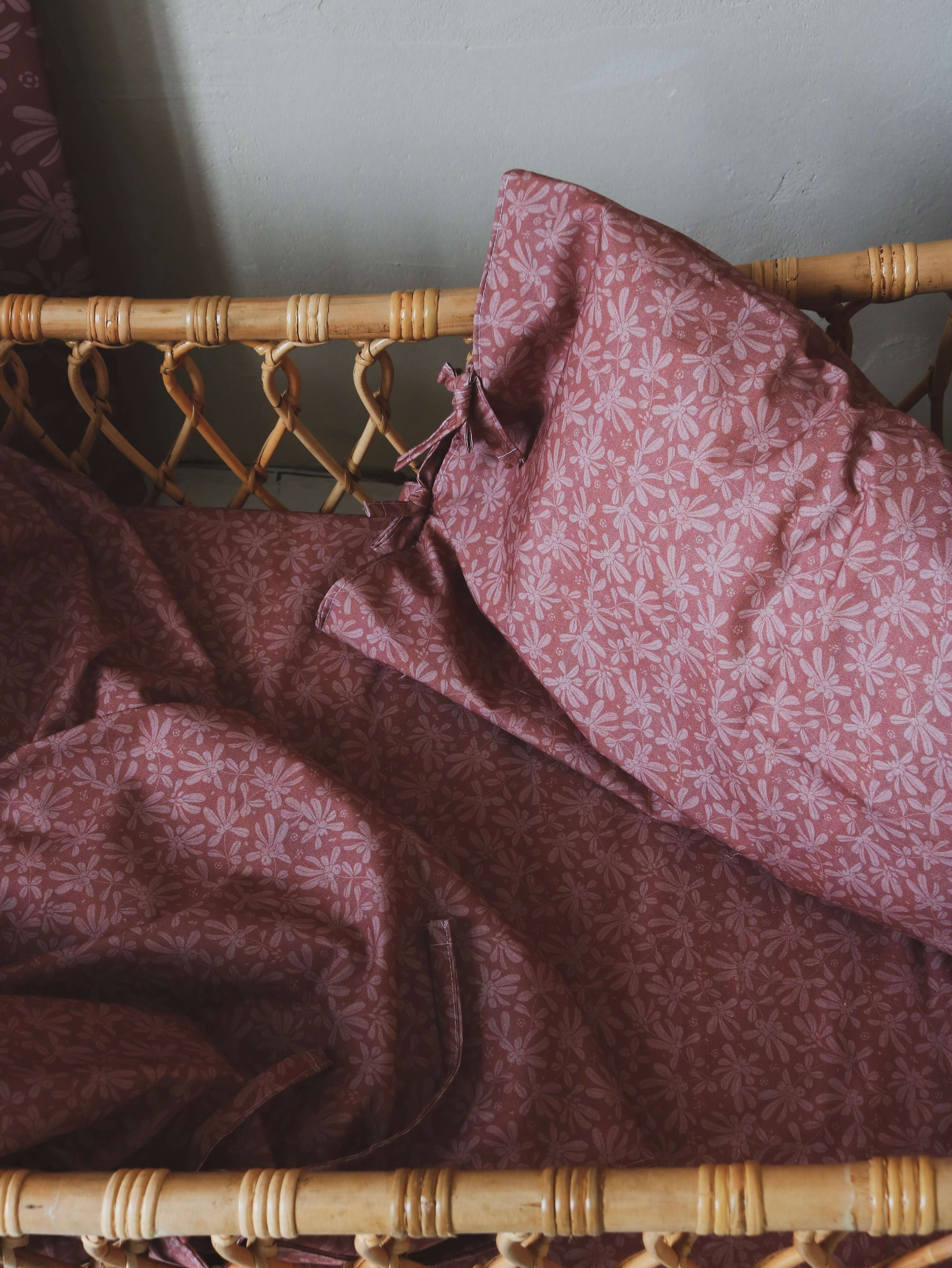 Bring a warm, autumn-inspired touch to your nursery with our Burgundy Barberries fitted sheet. Made from soft, enzyme-washed cotton, it features a delicate pattern of tiny barberry branches in deep burgundy tones on a light background — elegant, cozy, and timeless. Perfect for adding warmth and natural charm to your baby’s room. The elasticated edges ensure a snug fit and keep the sheet securely in place, providing your little one with a soft and breathable surface for sleep and play. Available in multiple sizes to fit cribs, toddler beds, or changing baskets. Product details: • Fabric: 100% enzyme-washed cotton — soft and breathable • Pattern: Tiny burgundy barberry branches on light background • Sizes: Available from crib to single bed • Fit: Elasticated edges for a secure fit • Care: Machine wash at 40°C • Preparation time: 2–3 business days • Handmade with care in the Netherlands by Matuu Perfect for: • Crib or toddler bed — ideal for babies and young children • Warm, nature-inspired, and timeless nursery styling • Matching with Matuu bedding, canopies, pillows, and décor • A thoughtful handmade gift for new parents or baby showers