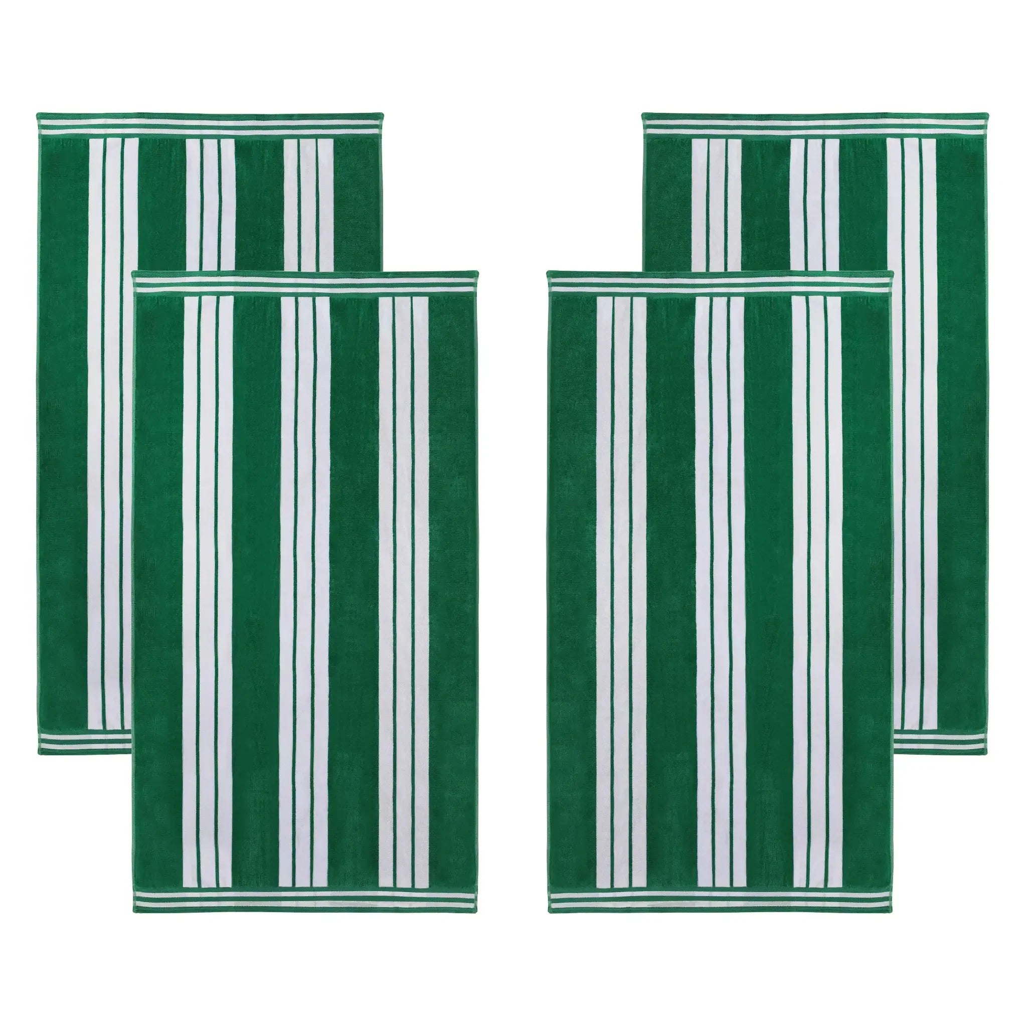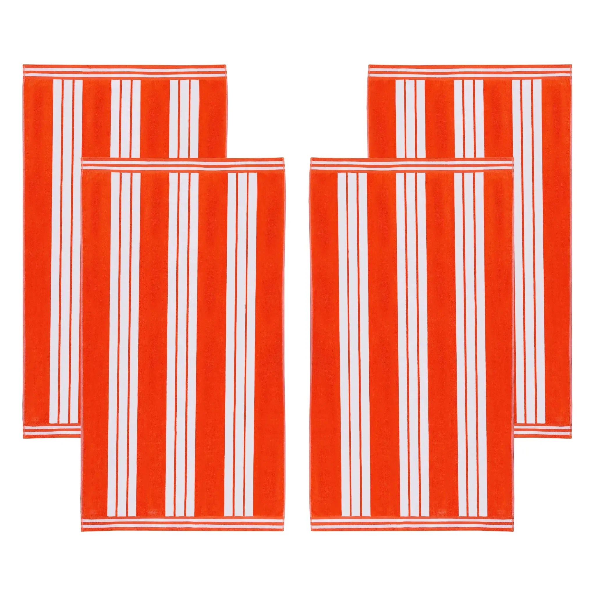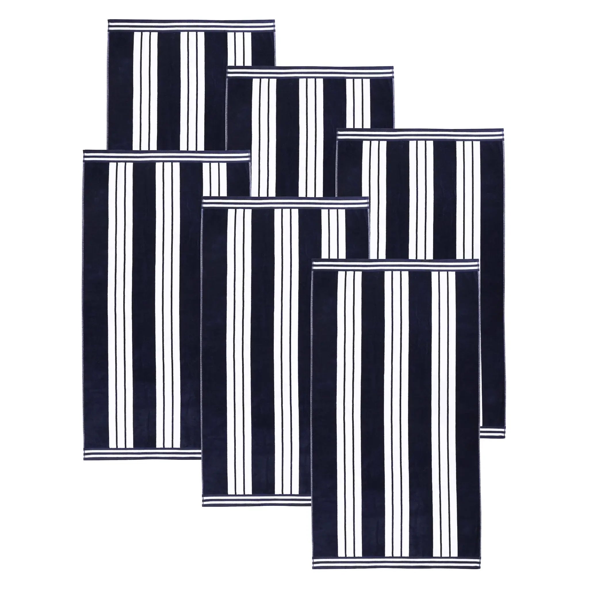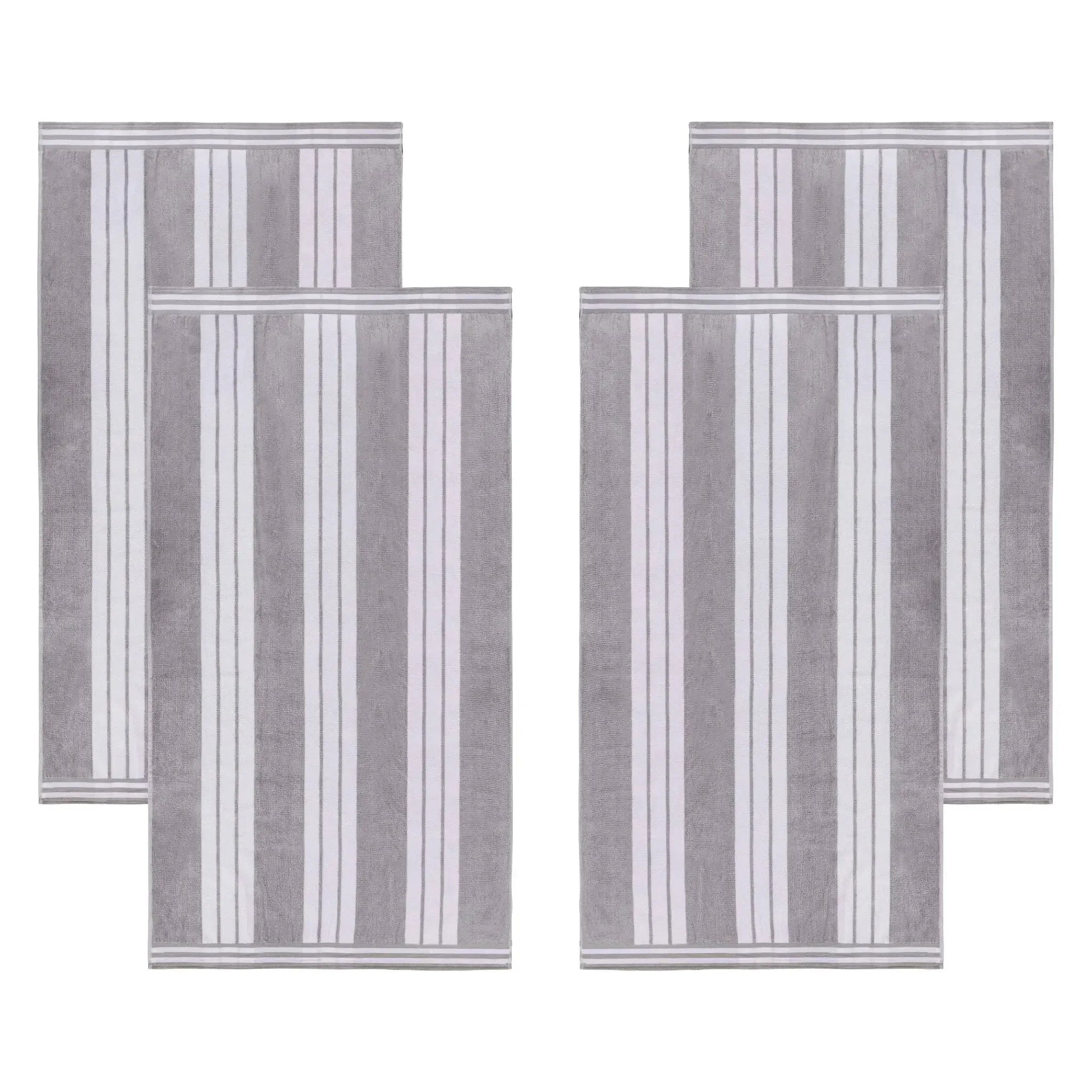 This is an extra-large beach towel set crafted from 100% cotton. With a dual – textured design of terry cloth on one side and velvety velour on the other, it offers both absorbency and softness. The vertical cabana stripe pattern with white stripes and multiple color options adds a stylish touch.