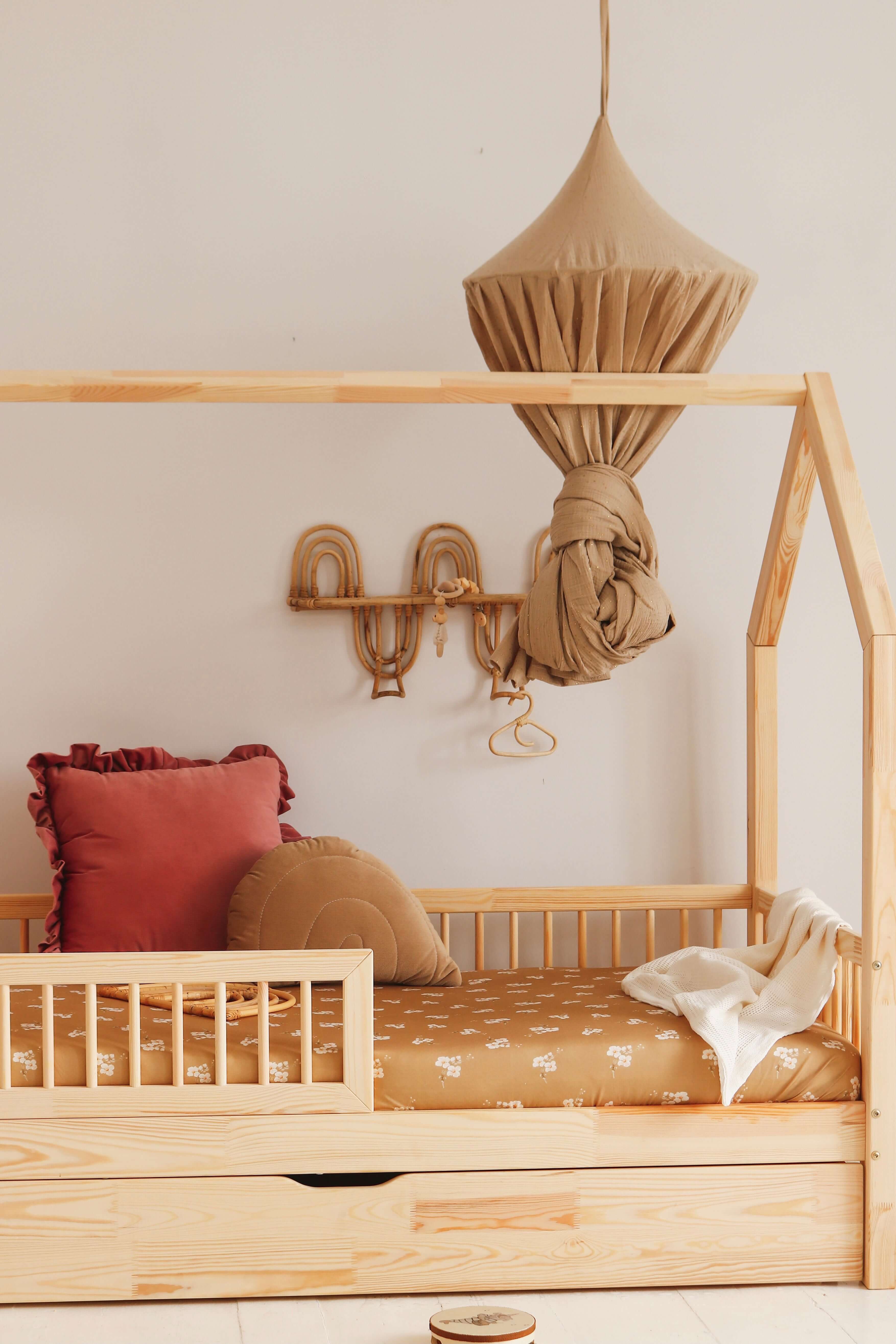 Add warmth and charm to your nursery with our Caramel Small Flowers fitted sheet. Made from soft, enzyme-washed cotton, it features a delicate pattern of white, hand-painted watercolor flowers on a caramel background — a cozy and timeless design that brings a touch of nature and softness to your baby’s room. The elasticated edges ensure a snug fit and keep the sheet perfectly in place, giving your little one a soft and breathable surface to rest and play on. Available in multiple sizes to fit cribs, toddler beds, or changing baskets.   Product details:  • Fabric: 100% enzyme-washed cotton — soft and breathable • Pattern: White watercolor flowers on caramel background • Sizes: Available from crib to single bed • Fit: Elasticated edges for a secure fit • Care: Machine wash at 40°C • Preparation time: 2–3 business days • Handmade with care in the Netherlands by Matuu   Perfect for:  • Crib or toddler bed — ideal for babies and young children • Warm, boho, and nature-inspired nursery styling • Matching with Matuu bedding, canopies, pillows, and décor • A thoughtful handmade gift for new parents or baby showers