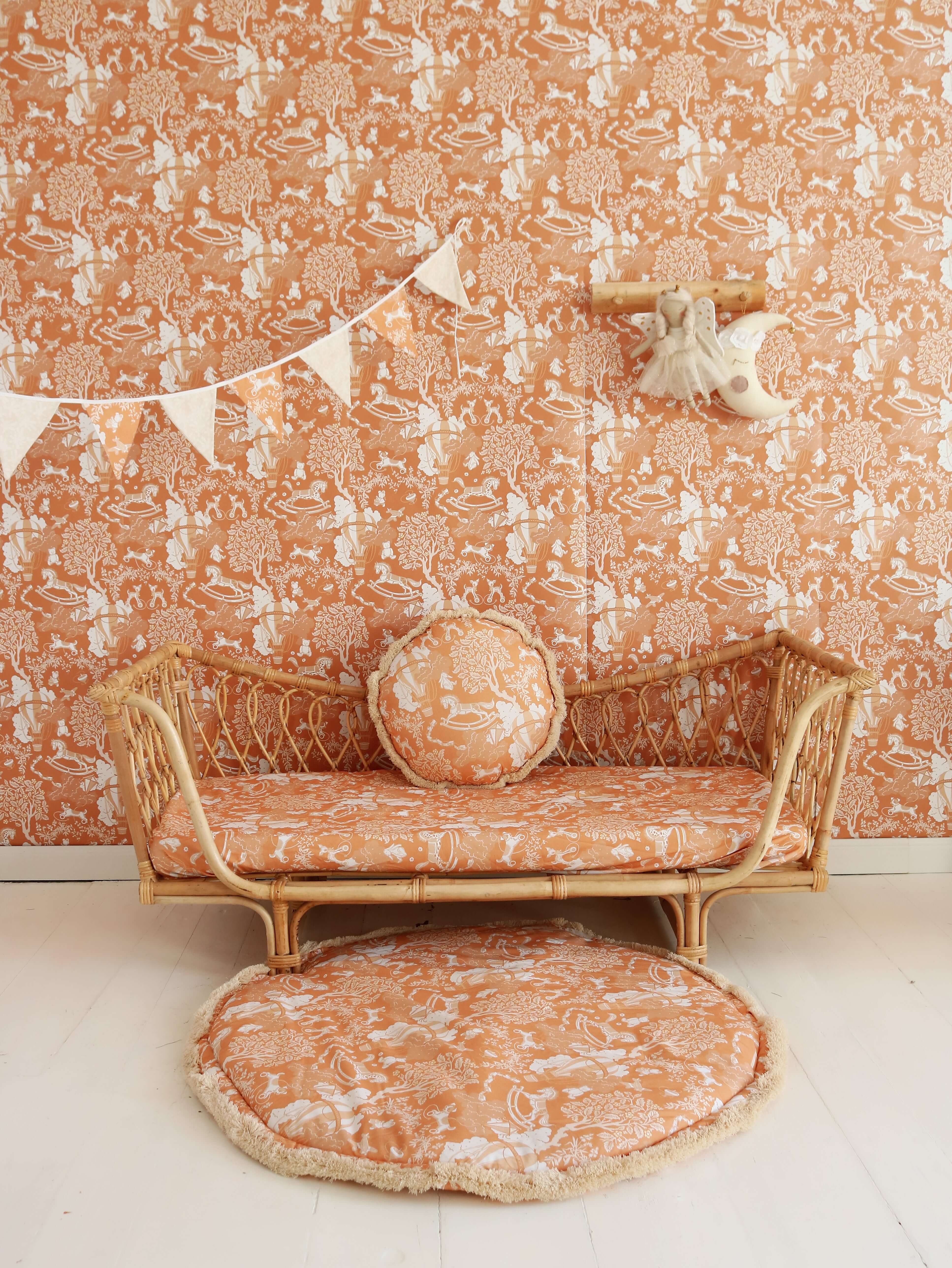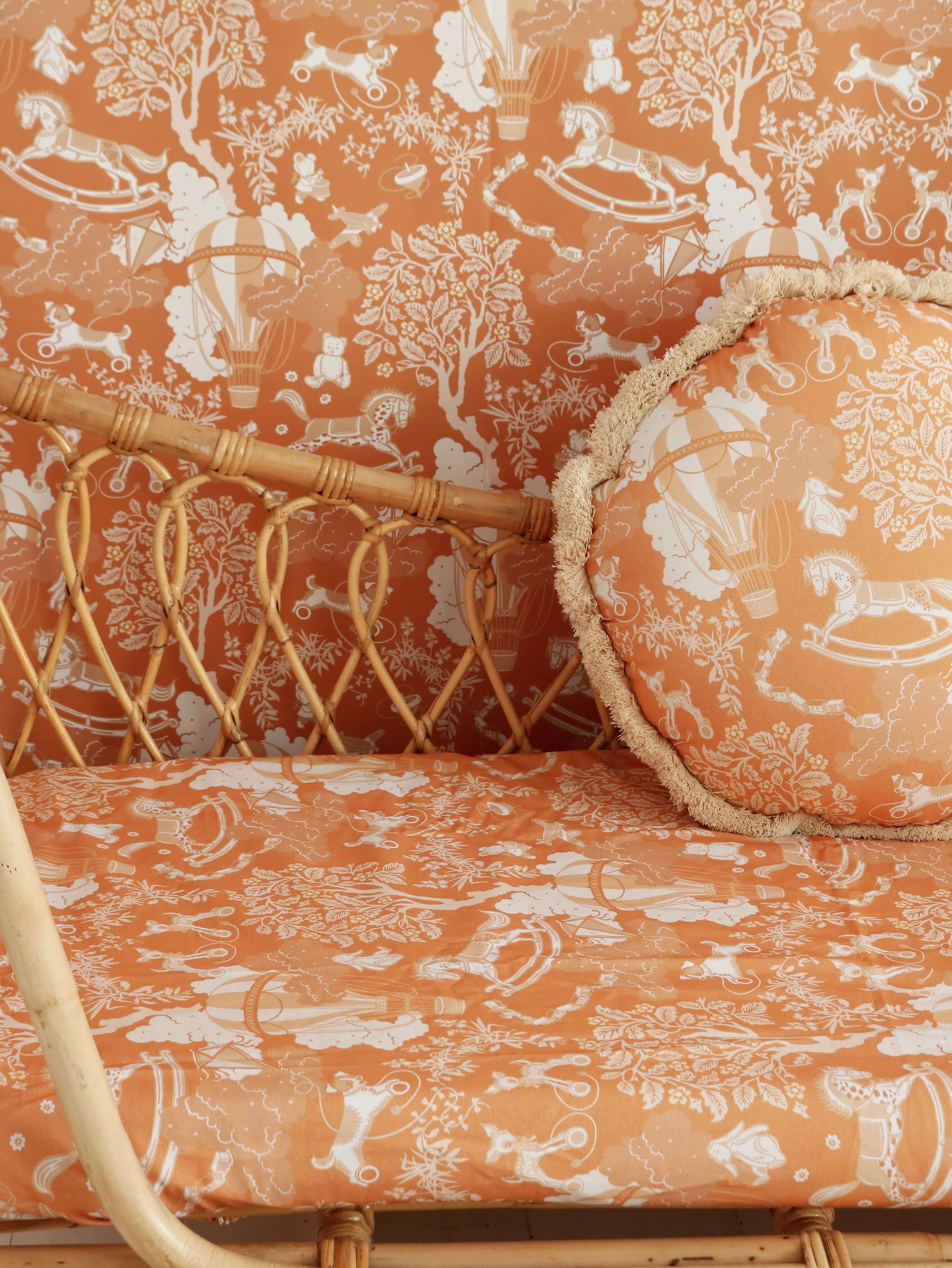 Bring warmth and nostalgia to your nursery with our Childhood Dreams fitted sheet. Made from soft, enzyme-washed cotton, it features a delicate white floral print on a rich rust background — a cozy and timeless combination that adds character and comfort to any baby room. The elasticated edges ensure a snug fit and keep the sheet perfectly in place, offering your baby a soft, breathable surface for sleeping and playing. Available in multiple sizes to fit cribs, toddler beds, or changing baskets.   Product details:  • Fabric: 100% enzyme-washed cotton — soft and breathable • Pattern: White floral print on rust background • Sizes: Available from crib to single bed • Fit: Elasticated edges for a secure fit • Care: Machine wash at 40°C • Preparation time: 2–3 business days • Handmade with care in the Netherlands by Matuu   Perfect for:  • Crib or toddler bed — ideal for babies and young children • Warm, retro, and nature-inspired nursery styling • Matching with Matuu bedding, canopies, pillows, and décor • A lovely handmade gift for new parents or baby showers