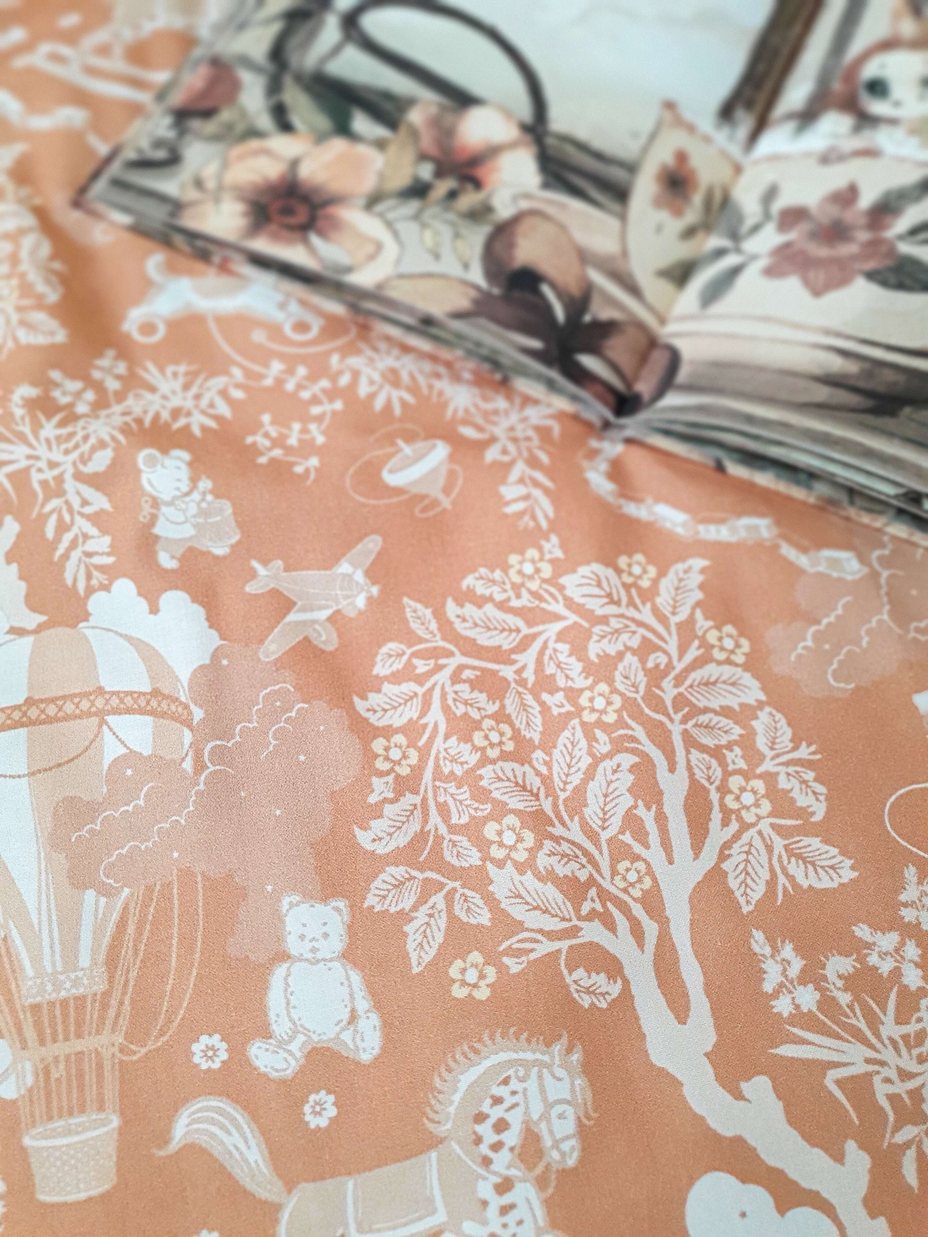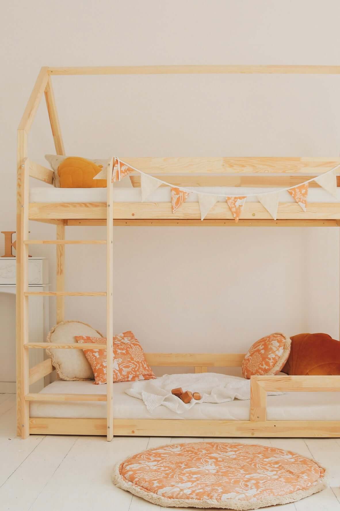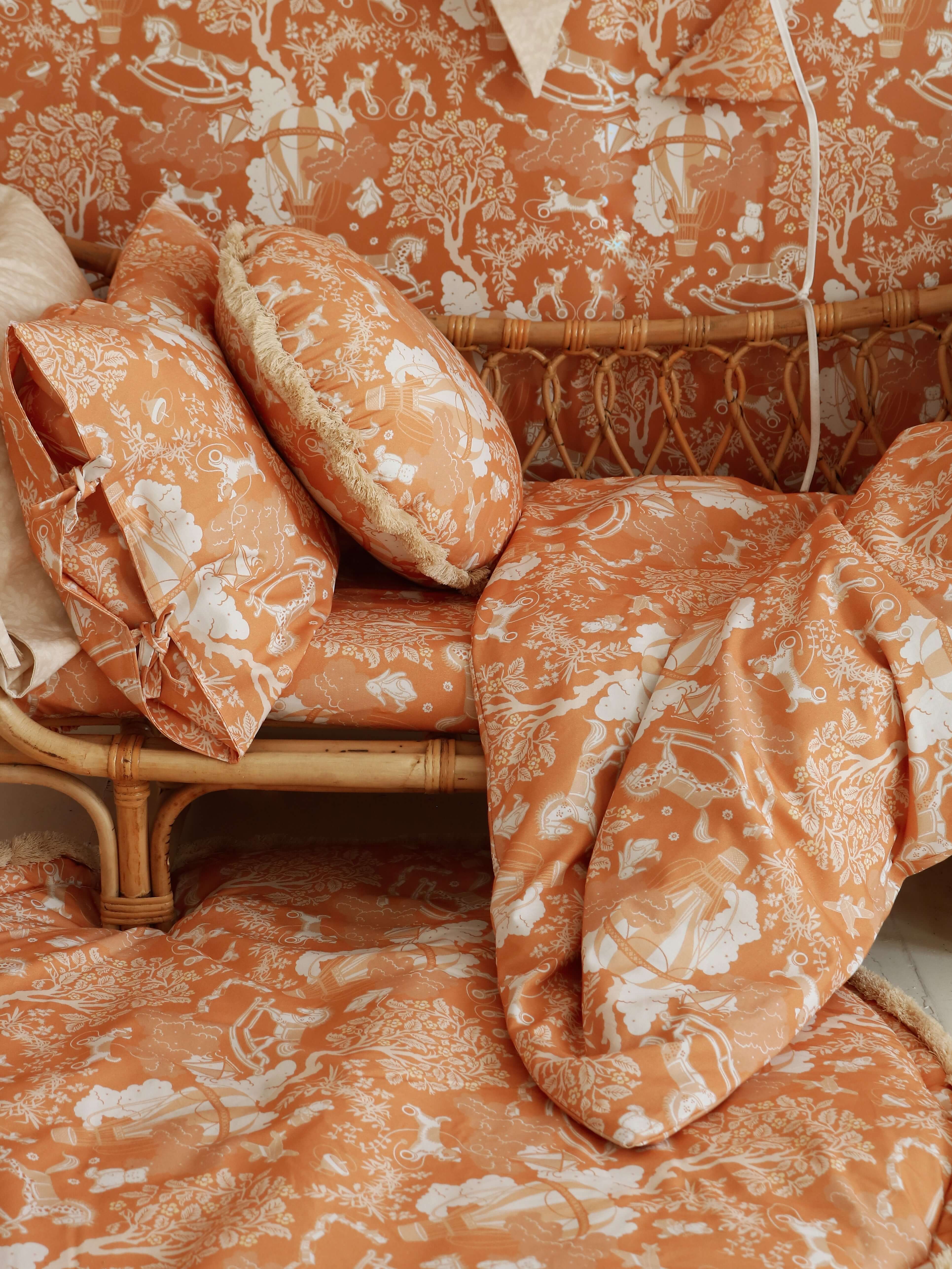 Designed and made in Amsterdam, the Netherlands. Double-sided play mat, perfect for bedding your little one. Your child can use the playmat as a rug, a place to play, to learn to rest, or a kick-off for a journey into the imagination. It works great as a floor for the canopy! A round playmat has become recently a must-have in kids’ room interior design. Because it’s double-sided, you can easily change the look of the room. It is soft and cozy, but above all, it is SAFE for your child. The playmat has been carefully sewn using high-quality fabrics. I used the thick 100% cotton fabric with (OEKO-TEX Standard 100 Class 1 certified). To give an extraordinary look, it is finished with an ecru fringe(97% cotton, 3%pp). The mat is filled with fiberfill with a thickness of around 2 cm. The chosen filling is also lightweight and has anti-allergic properties – it is odourless and chemical-free, does not absorb moisture. Washing instructions: We recommend washing at max 30°C, using a special gentle cycle. Spin at 1200 pm. Ideally with a washing detergent that does not contain phosphates. Iron only the cotton side, at max 100°C (one dot setting) with a huge amount of steam. Don’t bleach or use other strong bleaching detergents. Don’t wring after washing. There is a possibility to make a mat in other sizes, let me know if you are interested 😉 The price above is including TAX(21%).