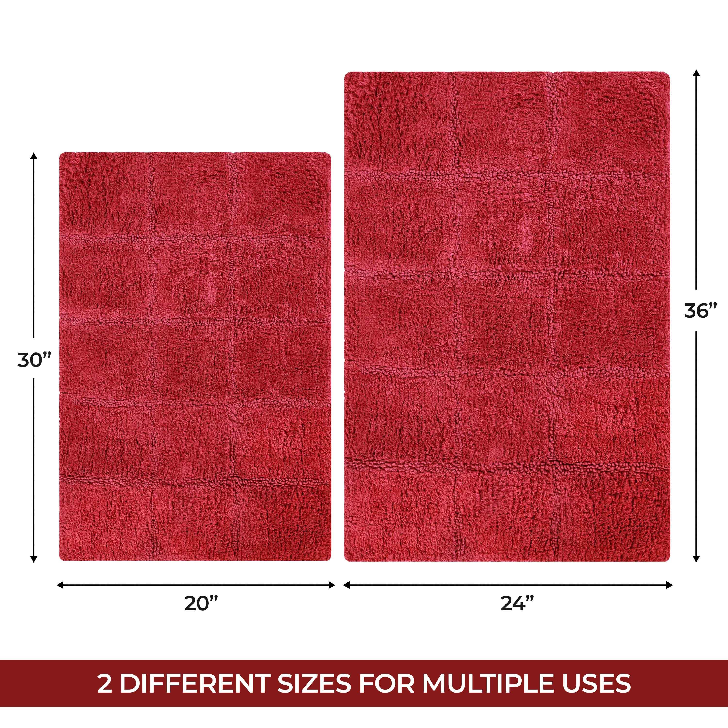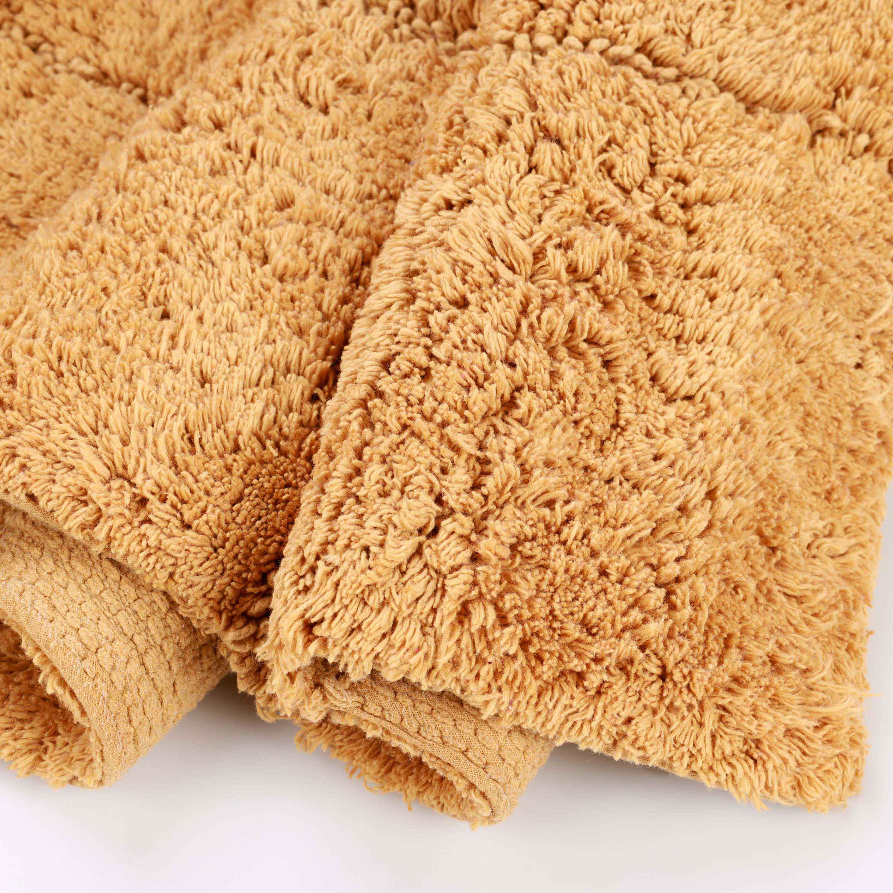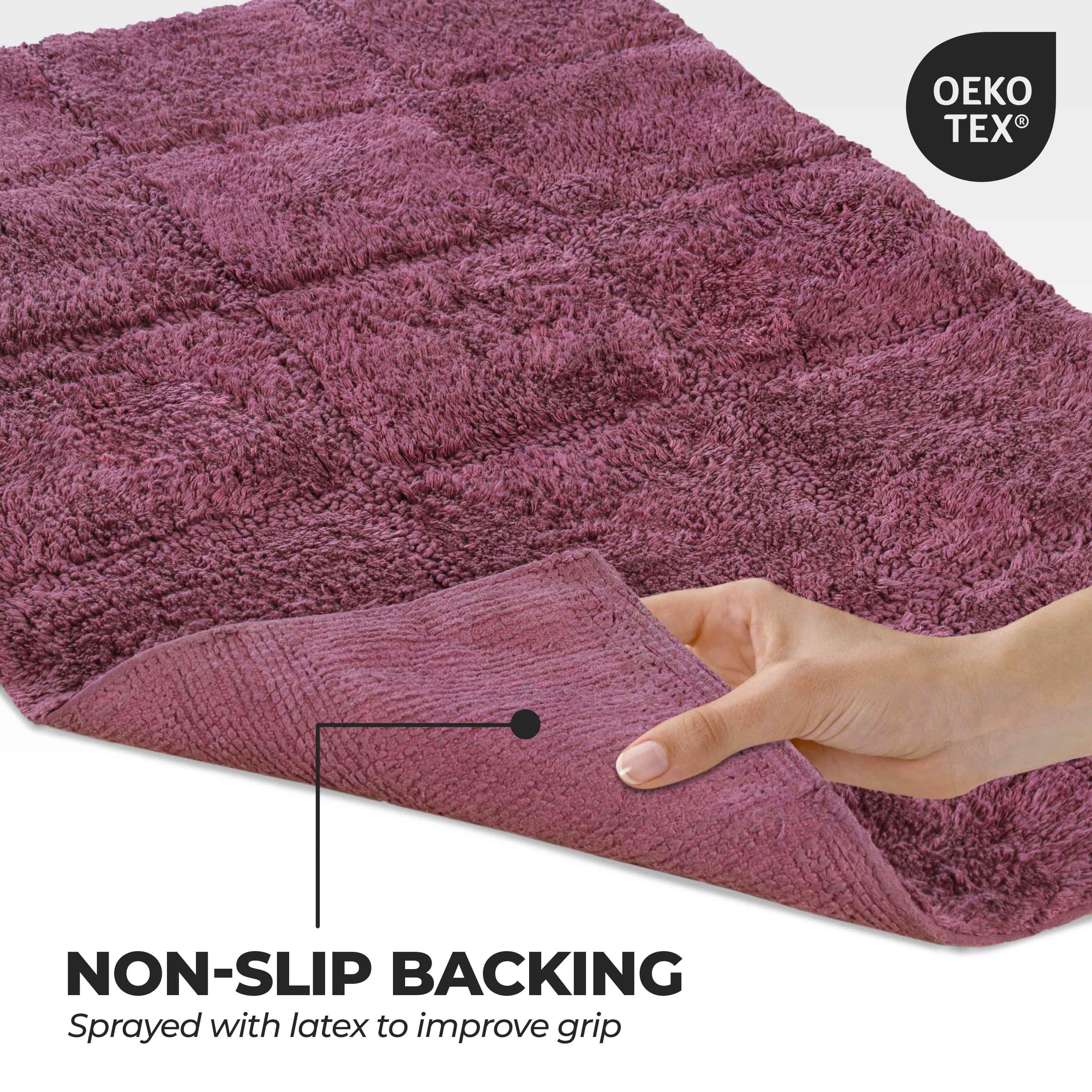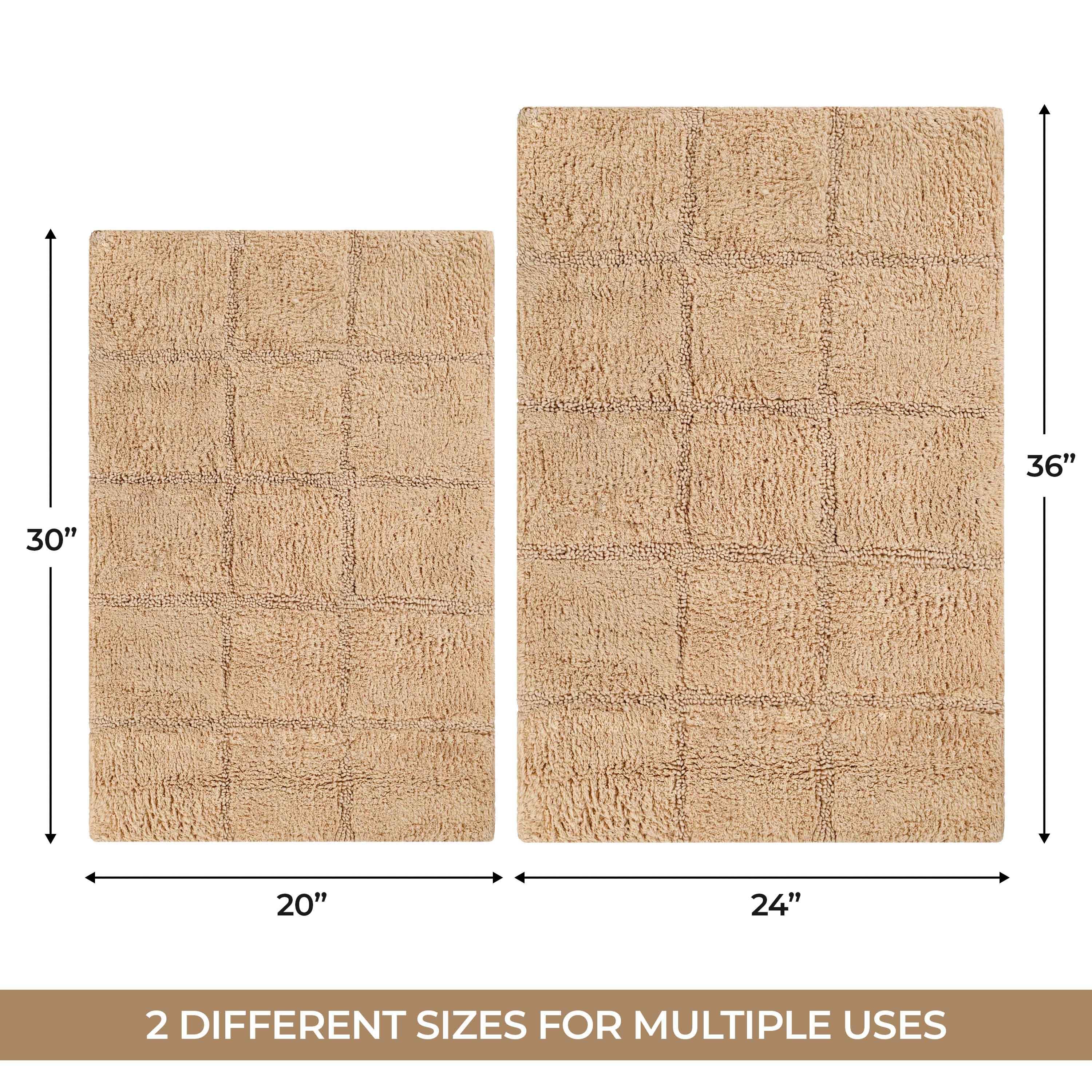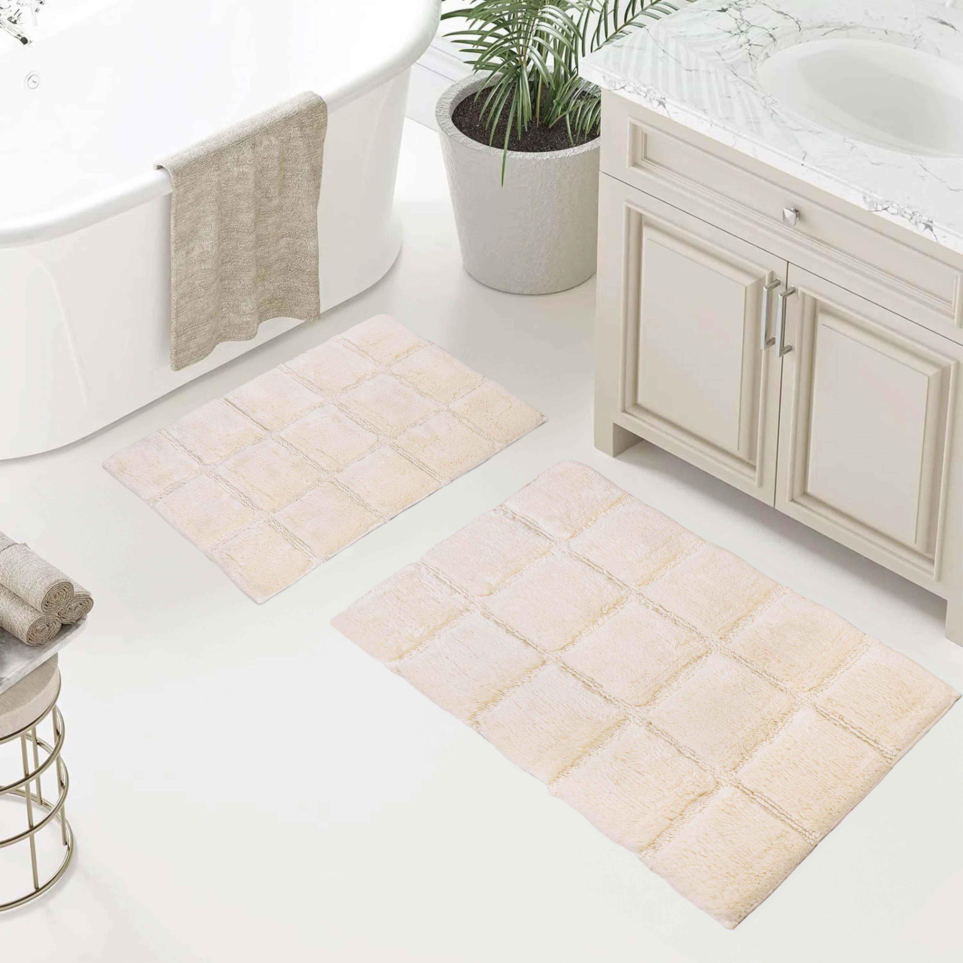 This bath rug set is crafted from 100% cotton, making it highly absorbent and perfect for use in wet areas like bathrooms. The textured grid pattern not only adds a stylish touch but also enhances water absorption. With multiple color options and two different sizes available, it can easily match various bathroom decors and fit different spaces.