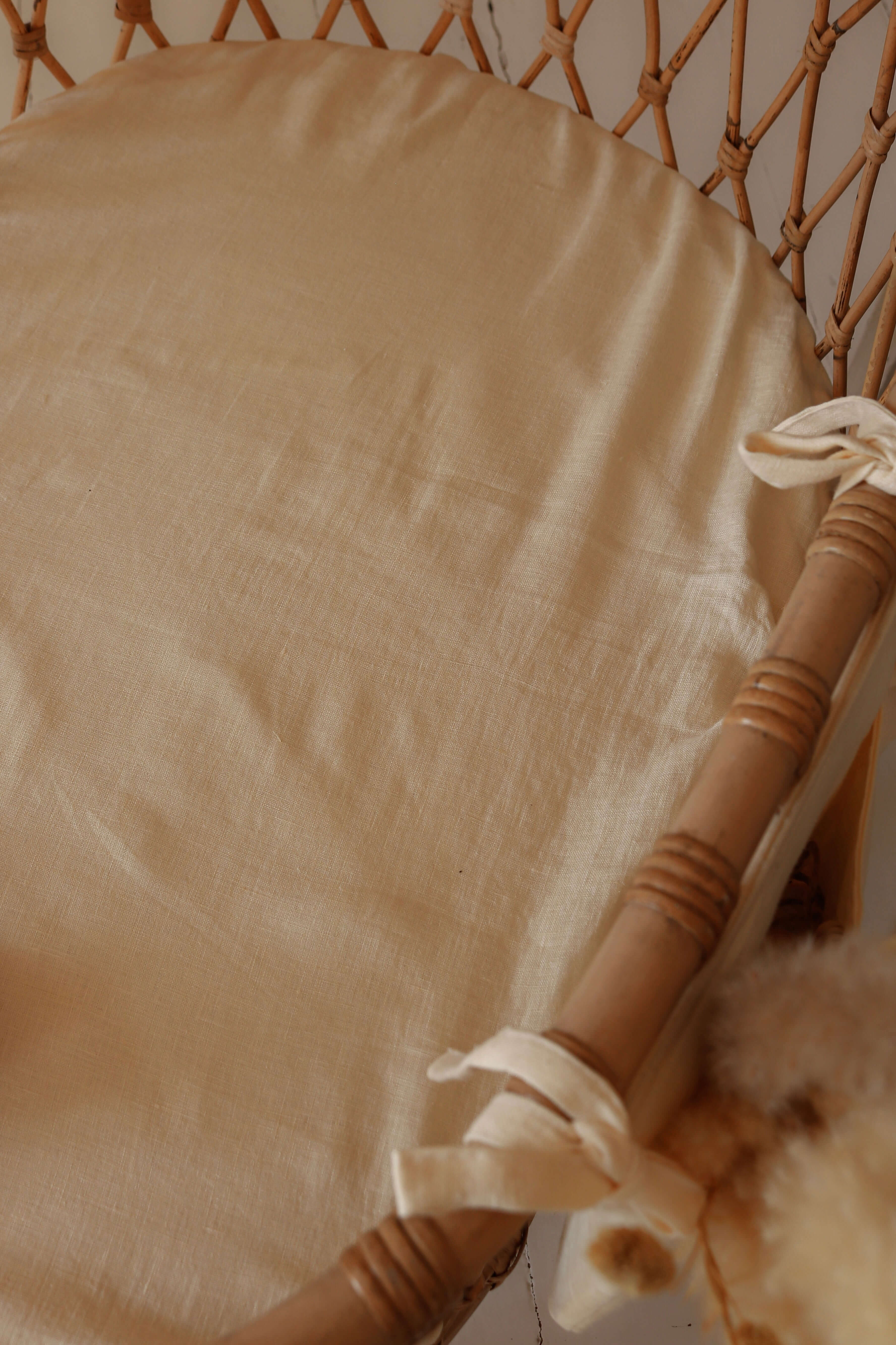 Create a calm and timeless atmosphere in your nursery with our Cream Linen fitted sheet. Made from 100% natural linen, it features a soft cream tone and a beautifully textured surface — elegant, breathable, and perfect for every season. Linen adds a natural, cozy touch that fits both modern and boho-inspired interiors. The elasticated edges ensure a snug and secure fit, keeping the sheet perfectly in place while your little one rests or plays. Available in multiple sizes to fit cribs, toddler beds, or changing baskets.   Product details:  • Fabric: 100% natural linen — breathable, soft, and durable • Color: Cream • Sizes: Available from crib to single bed • Fit: Elasticated edges for a secure fit • Care: Machine wash at 40°C • Preparation time: 2–3 business days • Handmade with care in the Netherlands by Matuu   Perfect for:  • Crib or toddler bed — ideal for babies and young children • Neutral, warm, and timeless nursery styling • Matching with Matuu bedding, canopies, pillows, and décor • A beautiful handmade gift for new parents or baby showers