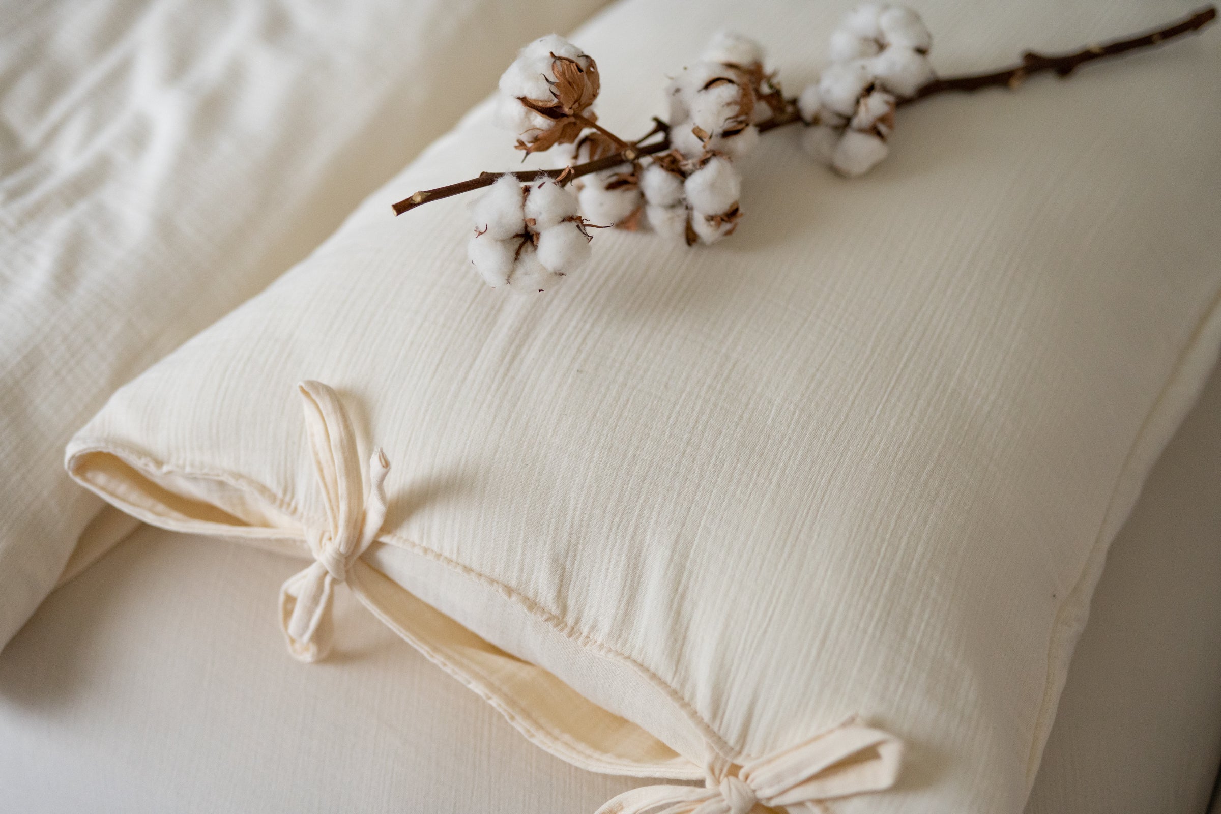 Create a soft, soothing haven in any nursery or child’s room with our Ecru Muslin Bedding Set. Crafted from luxuriously soft, breathable muslin cotton, this set brings a soothing neutral tone to your decor. The high-quality fabric ensures gentle comfort and a timeless, minimalist aesthetic—perfect for Scandinavian, Japandi, or neutral nurseries. Instead of zippers or buttons, the duvet cover and pillowcases close with elegant bow ties, adding a touch of handmade sophistication. Each set is lovingly handcrafted in Netherlands using OEKO‑TEX® certified materials, ensuring the safest and most gentle bedding for sensitive skin. Product Details Material: 100% muslin cotton – OEKO‑TEX® certified Design: Solid ecru—minimalist and neutral Closure: Cotton bow ties (no zippers or buttons) Care: Turn inside out before washing; machine wash at 40 °C gentle cycle Handcrafted in: Netherlands by Matuu Perfect For Neutral, minimalist style nurseries Scandinavian, Japandi, or modern design baby rooms Cozy, breathable toddler and child’s bedding Parents looking for clean, timeless, and safe bedding A thoughtful, gender-neutral baby shower or birthday gift