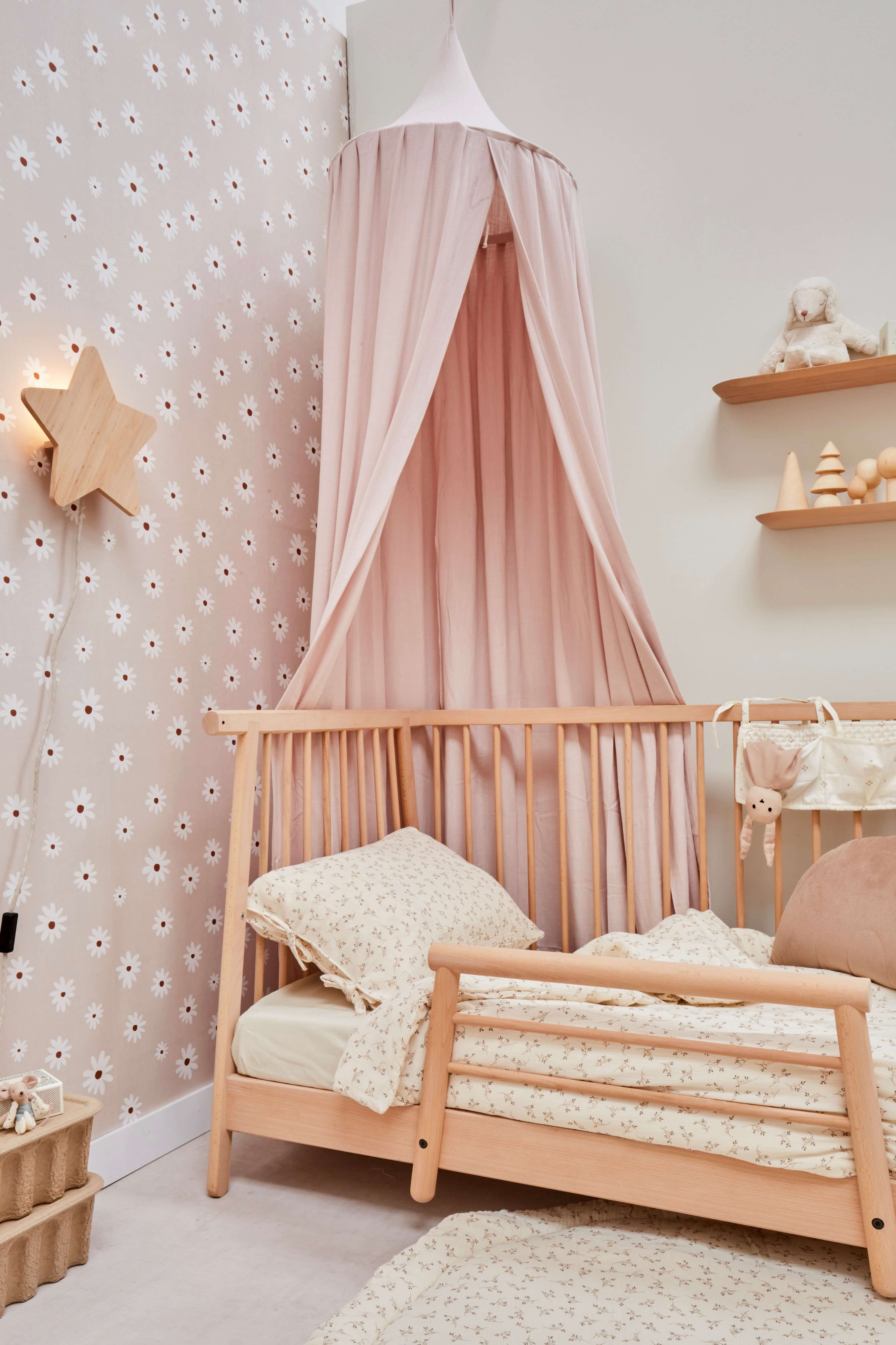 Bring softness and gentle charm to your childβs room with the Crystal Rose canopy β a dreamy light pink bed canopy handmade from a flowy linen-viscose blend. With its delicate blush tone and airy fabric, this canopy is the perfect accent for cribs, toddler beds or cozy play corners. It creates a soothing, magical space for sleep, play or quiet time β loved by both little ones and older kids. Inside, a hidden loop lets you hang a mobile or fairy lights. Itβs easy to install using cotton straps, and the built-in metal hoop keeps its shape beautifully. Product Details β’ Fabric: 30% linen, 70% viscose β lightweight and breathable β’ Color: Light dusty pink (Crystal Rose) β’ Height: approx. 235 cm (fabric) + 60 cm cotton hanging ties β’ Hoop diameter: 50 cm (metal ring included, hidden inside) β’ Mounting: Two cotton straps β fits any ceiling hook β’ Interior loop: For mobile, pendant or lights β’ Care: Remove hoop before washing. Machine wash at 30Β°C, gentle cycle, air dry β’ Preparation time: 2β3 business days β’ Handmade in the Netherlands by Matuu Perfect for: β’ Cribs, toddler beds and kidsβ beds β’ Soft, romantic or neutral nursery styling β’ Boho or Scandinavian-inspired rooms β’ Cozy playtime corners or reading nooks β’ Thoughtful baby shower or birthday gifts