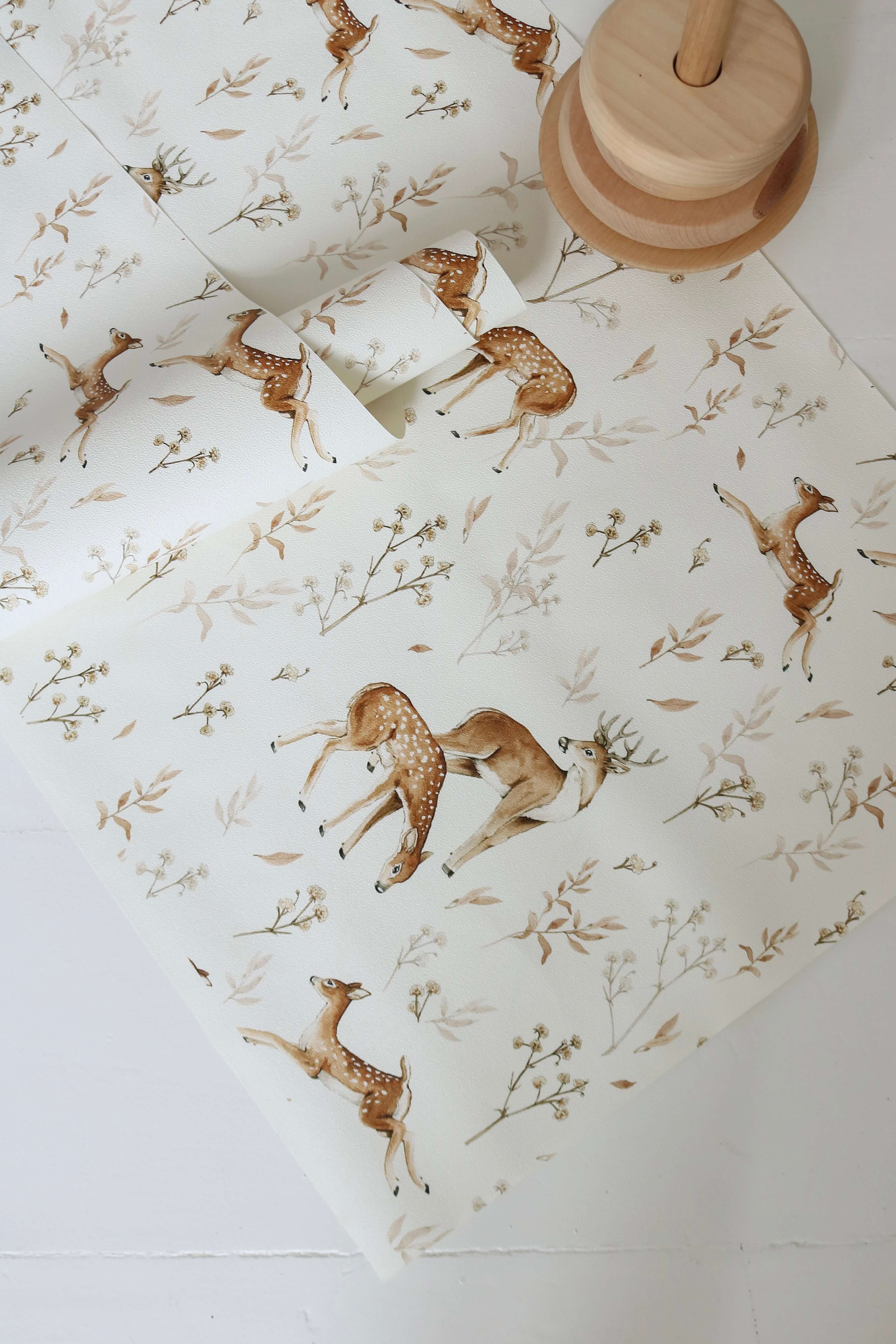 Bring serene, woodland charm into your space with Deer Glade – white wallpaper by Matuu. Featuring delicate, hand-drawn deer, leaves, and subtle forest details on a fresh white background, this premium non-woven (flizelin) wallpaper creates a light, peaceful atmosphere perfect for Scandinavian-inspired interiors. Ideal for nurseries, kids’ rooms, bedrooms, or cozy corners, Deer Glade – white adds timeless elegance and a gentle touch of nature. Whether you’re creating a feature wall or decorating an entire room, this wallpaper is easy to install and designed to last. Why You’ll Love It Fresh white background with delicate deer and forest pattern Hand-drawn artistic details for a soft, nature-inspired look Perfect for nurseries, kids’ rooms, bedrooms, or Scandinavian interiors Premium non-woven (flizelin) material — paste-the-wall application Available in two heights: 270 cm (standard) or 310 cm (XXL for tall walls) Product Details Roll width: 50 cm Roll height: 270 or 310 cm Two rolls cover 1 meter of wall width Pattern repeat: every 50 cm Finish: matte, non-reflective Sizes & Installation • Available sizes: – 2 strips of 50 × 270 cm – 2 strips of 50 × 310 cm • Coverage: 1 set covers 1 meter of wall width Installation: • Paste the wall (not the wallpaper) • Use non-woven wallpaper paste • Surface must be clean, smooth, and dry • Instructions: Download the step-by-step non-woven wallpaper guide Production & Delivery • Production time: 1–3 business days • Delivery time: 2–7 business days (EU) Check – Double Check Please carefully inspect your wallpaper before installation. Verify colours, pattern alignment, and length immediately upon delivery. We allow a cutting tolerance of up to 1 mm per strip. If the deviation is larger, we will gladly reprint your order. *Once the wallpaper has been cut and installed, it is no longer possible to objectively determine whether any irregularity originates from production or from handling during installation. For this reason, claims raised after installation are very difficult to assess. Important Notes This wallpaper is not kept in stock – it’s printed to order. Not sure about the colour or pattern scale?We recommend ordering a sample first.