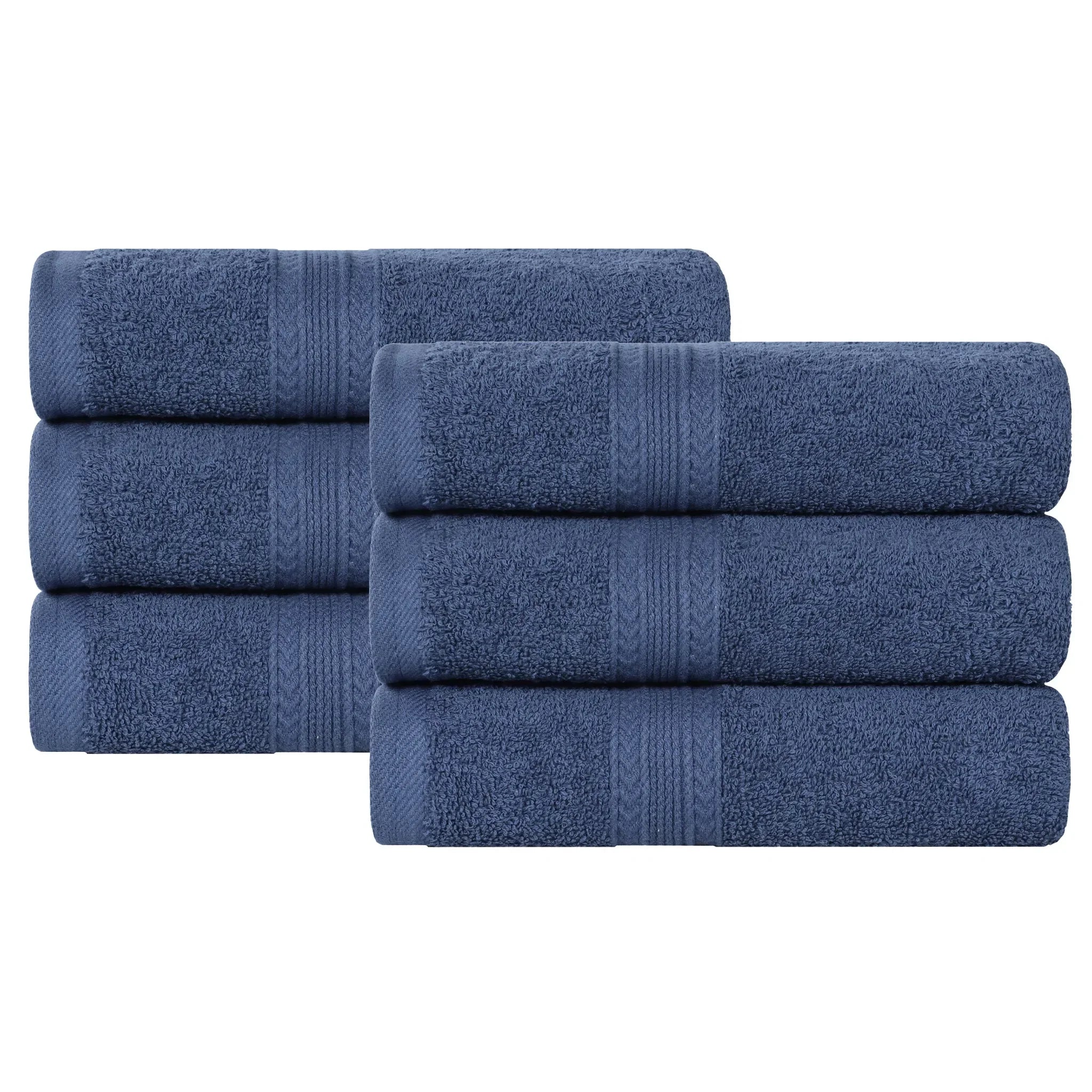 This set of hand towels is crafted from high – quality cotton, specifically terry cloth cotton, which offers excellent absorbency. The towels come in a range of neutral and vibrant colors, with a minimalist yet elegant design. Each towel features decorative, raised textured bands along the folded edges, adding a touch of sophistication.
