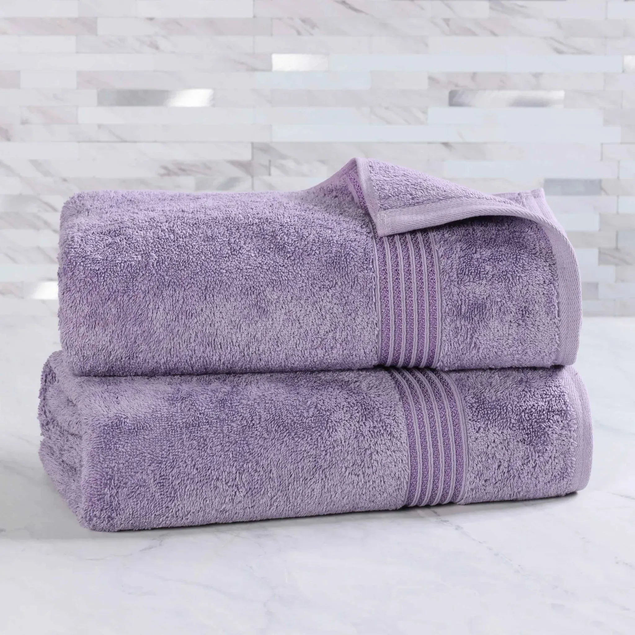 This product is a high – quality set of two towels. Crafted from Egyptian cotton, they offer exceptional softness and breathability. With a variety of color options, each towel features an elegant vertical striped design on the rolled edge, and has a plush and fluffy texture.