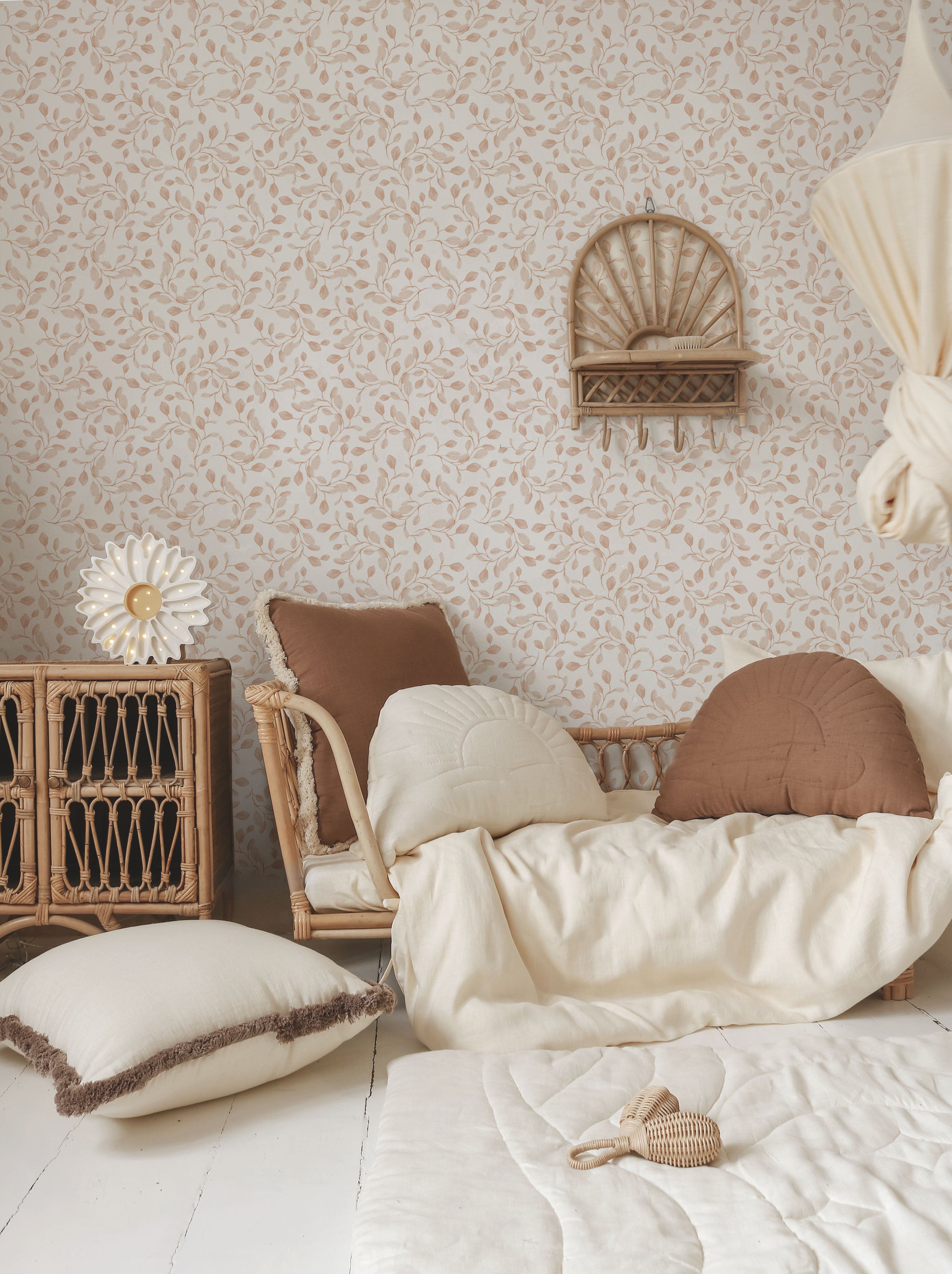Delicate botanical wallpaper with warm earthy tones Let your space breathe with warmth and nature. The Eucalyptus Whimsy β light brown wallpaper features hand-painted eucalyptus branches in soft, warm beiges and taupes on a light cream background. This serene, nature-inspired design is ideal for bedrooms, nurseries or Japandi-style interiors. Product details: Design: hand-painted eucalyptus branches Colours: warm beige, taupe, light brown, cream Material: non-woven (vlies) wallpaper Finish: matte, smooth Pattern repeat: every 50 cm Printed to order β every wallpaper is made especially for you Sizes & Installation Available sizes: – 2 strips of 50 Γ 270 cm – 2 strips of 50 Γ 310 cm Coverage: 1 set = 1 meter wall width Installation: β’ Paste the wall (not the wallpaper) β’ Use non-woven wallpaper paste β’ Surface must be clean, smooth, and dry β’ Instructions: Download the step-by-step non-woven wallpaper guide How many sets do I need? Each set covers 1 meter of wall width. Add 5β10 cm extra to account for wall irregularities. Examples: 2.3 m wide wall β order 3 sets 4 m wide wall β order 4 sets Lead time & delivery Production: 1β3 working days Delivery: 2β4 working days (UE) Check β Double Check Please carefully inspect your wallpaper before installation. Verify colours, pattern alignment, and length immediately upon delivery. We allow a cutting tolerance of up to 1 mm per strip. If the deviation is larger, we will gladly reprint your order. *Once the wallpaper has been cut and installed, it is no longer possible to objectively determine whether any irregularity originates from production or from handling during installation. For this reason, claims raised after installation are very difficult to assess. Important Notes This wallpaper is not kept in stock β itβs printed to order. Not sure about the colour or pattern scale?We recommend ordering a sample first.