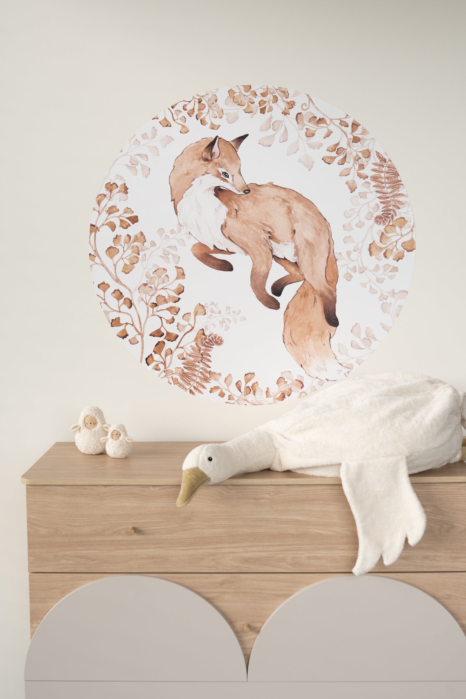 This Fox in the Fall Leaves wall decal features a beautifully illustrated fox nestled among autumnal foliage, bringing nature’s warmth and coziness into your child’s space. The soft, earthy tones create a serene and welcoming atmosphere – ideal for woodland-themed nurseries or kids’ rooms. A perfect alternative to traditional wallpaper, this round decal offers quick transformation without mess or damage. Made from high-quality, child-safe materials, the sticker is washable, durable, and easy to apply or remove. Material Matte, self-adhesive PVC (95 μm) Washable and fade-resistant EN 13501-1 B-s2-d0 fire safety certified Safe for children’s spaces Available sizes Round Ø 100 cm Round Ø 120 cm Application Peel & stick – no tools or glue needed For smooth, clean walls or furniture Full instructions: Processing time 5–10 business days * Please note: Our wall stickers are printed to order and are therefore non-returnable, unless there is a defect or a mistake in printing. If you experience any issue with your order, please contact us and we will be happy to help. Perfect for: Woodland-themed nurseries Gender-neutral baby rooms Cozy reading or play corners Nature-inspired interiors Scandinavian, boho or rustic decor styles