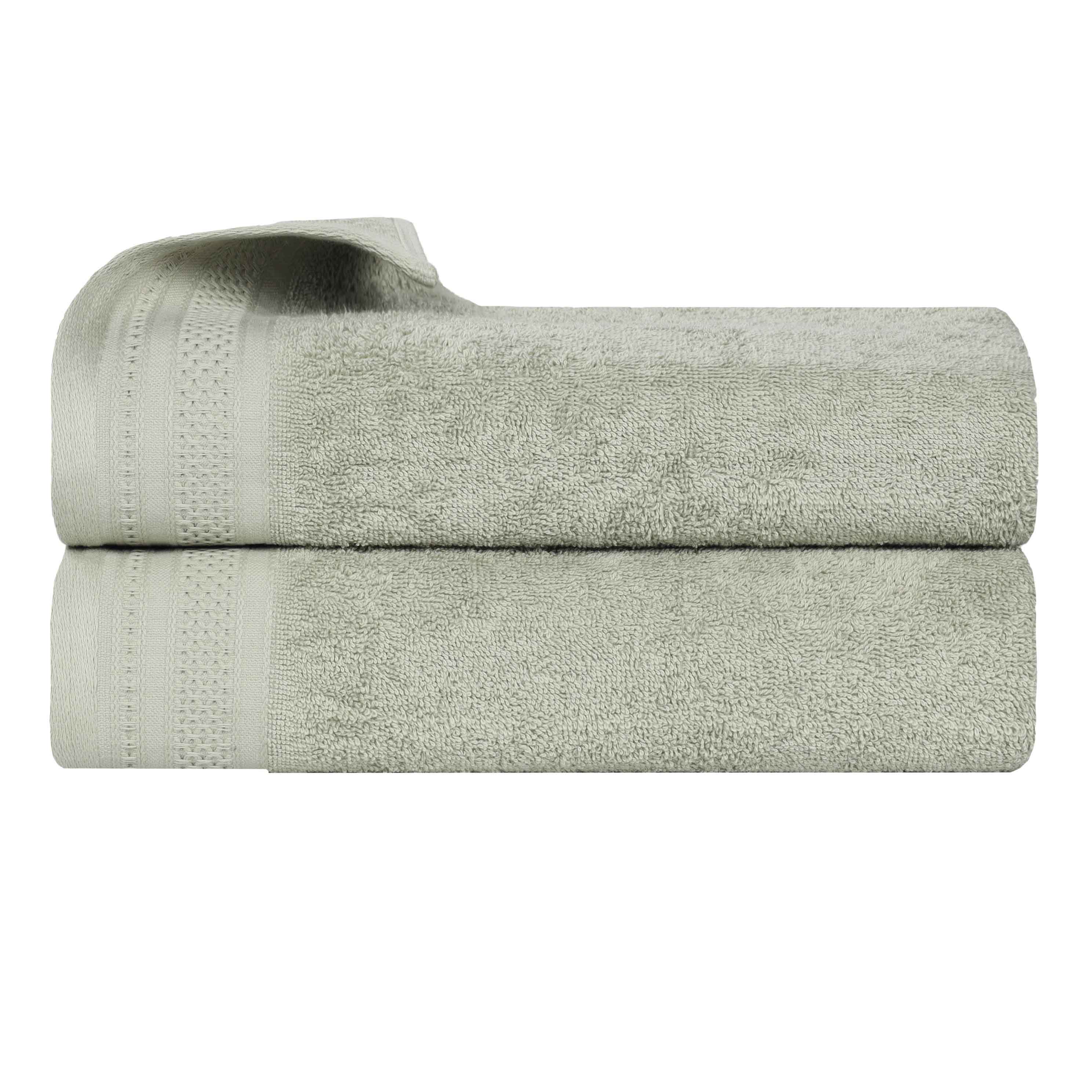 This set includes two decorative – banded cotton bath towels. The towels feature a plush, absorbent terry – cloth texture made mainly of cotton. They come in a variety of solid colors and have a decorative edge band with a subtle pattern, adding both durability and a refined look.