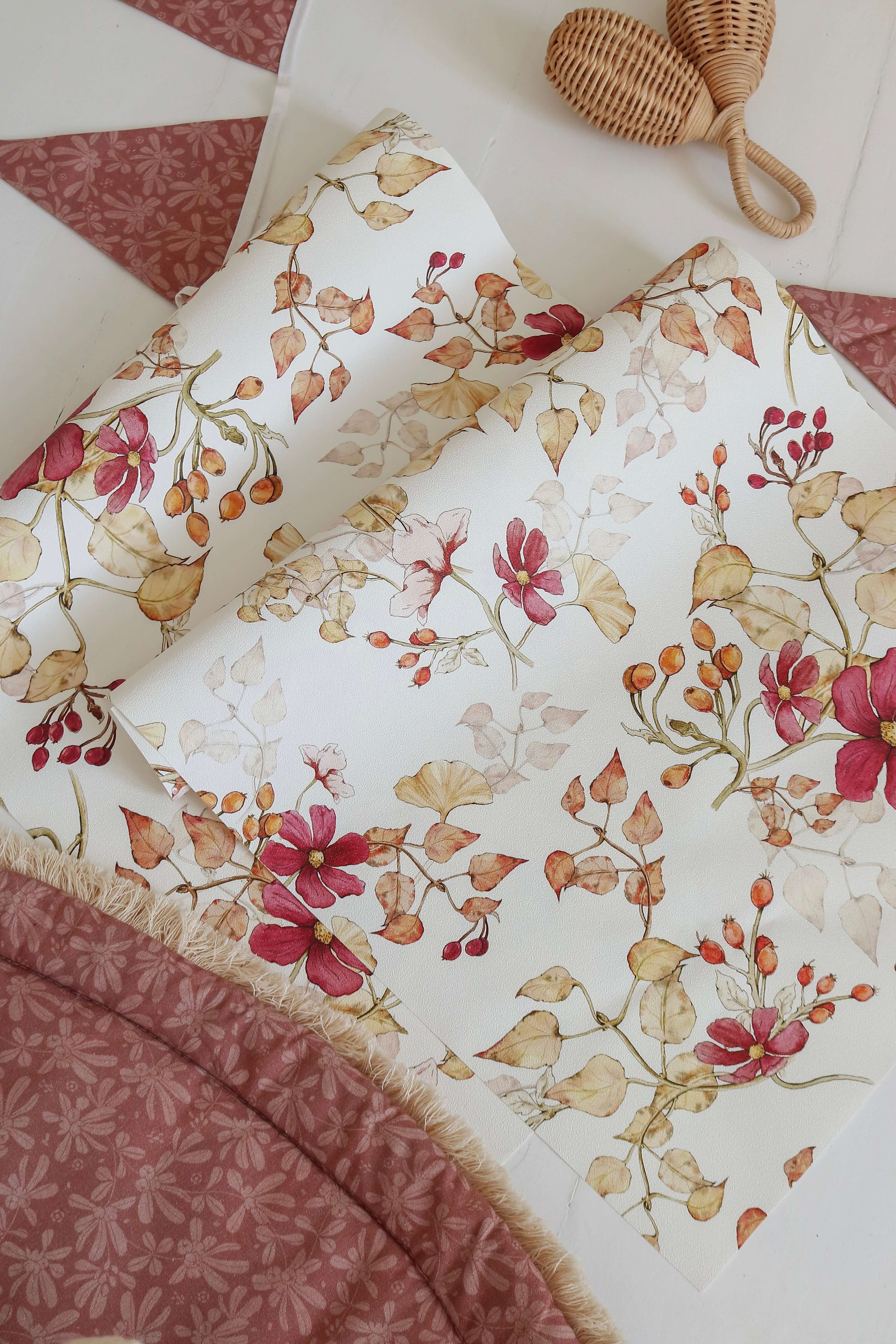 Bring a touch of boho charm and nature’s warmth into your home with Indian Summer – on white wallpaper by Matuu. Featuring delicate, hand-drawn florals and grasses in earthy tones on a fresh white background, this premium non-woven (flizelin) wallpaper adds lightness, texture, and timeless style to any space. Perfect for nurseries, kids’ rooms, bedrooms, or cozy corners, Indian Summer – on white brings a soft, natural atmosphere and blends beautifully with Scandinavian, bohemian, or minimalist interiors. Easy to apply and designed for long-lasting beauty. Why you’ll love it Fresh white background with delicate floral and grass pattern Hand-drawn design in earthy, warm tones Perfect for nurseries, kids’ rooms, bedrooms, or Scandinavian/boho interiors Premium non-woven (flizelin) material — paste-the-wall application Available in two heights: 270 cm (standard) or 310 cm (XXL for tall walls) Product Details • Design: Hand-painted burgundy barberries • Colors: Burgundy, soft beige, muted green accents • Material: Premium non-woven wallpaper (vlies) • Finish: Matte, smooth surface • Pattern repeat: every 50 cm • Production: Made to order – each roll is freshly printed Sizes & Installation Each roll contains 2 strips: • 2 × 50 cm wide × 270 cm high • 2 × 50 cm wide × 310 cm high Coverage per set: 1 meter wall width. Installation: • Paste the wall (not the wallpaper) • Use non-woven wallpaper paste • Surface must be clean, smooth, and dry • Instructions: Download the step-by-step non-woven wallpaper guide How many rolls do I need? Each set contains 2 strips (50 cm wide each, total 1 m width). Example: – Wall width 2.3 m → order 3 sets – Wall width 4 m → order 4 sets Tip: Always add 5–10 cm extra as walls are rarely perfectly straight. Production & Delivery • Production time: 1–3 business days • Delivery time: 2–7 business days (EU) Check – Double Check Please carefully inspect your wallpaper before installation. Verify colours, pattern alignment, and length immediately upon delivery. We allow a cutting tolerance of up to 1 mm per strip. If the deviation is larger, we will gladly reprint your order. *Once the wallpaper has been cut and installed, it is no longer possible to objectively determine whether any irregularity originates from production or from handling during installation. For this reason, claims raised after installation are very difficult to assess. Important Notes This wallpaper is not kept in stock – it’s printed to order. Not sure about the colour or pattern scale?We recommend ordering a sample first.