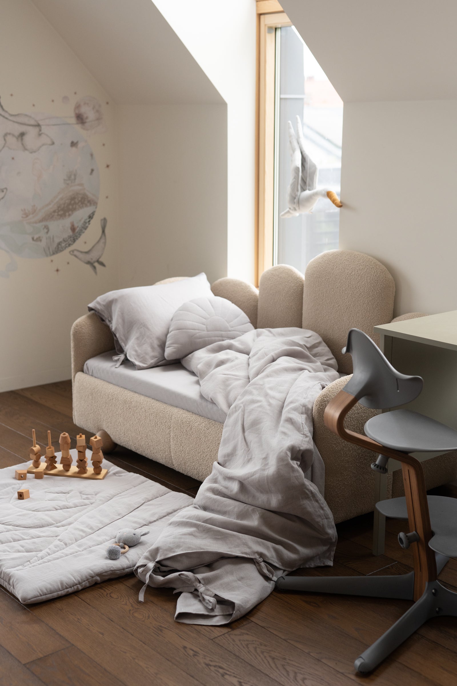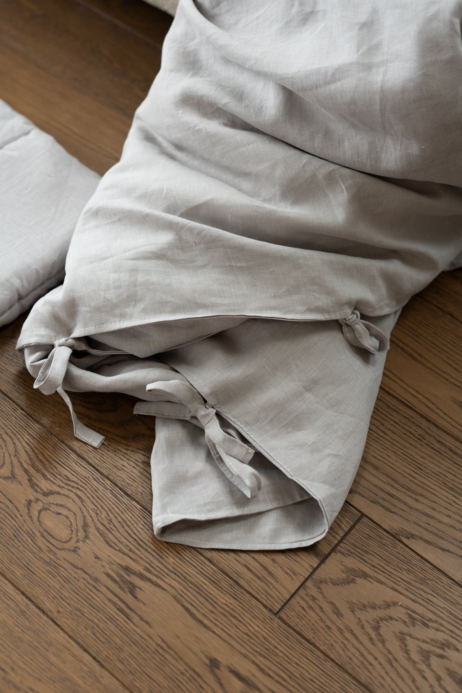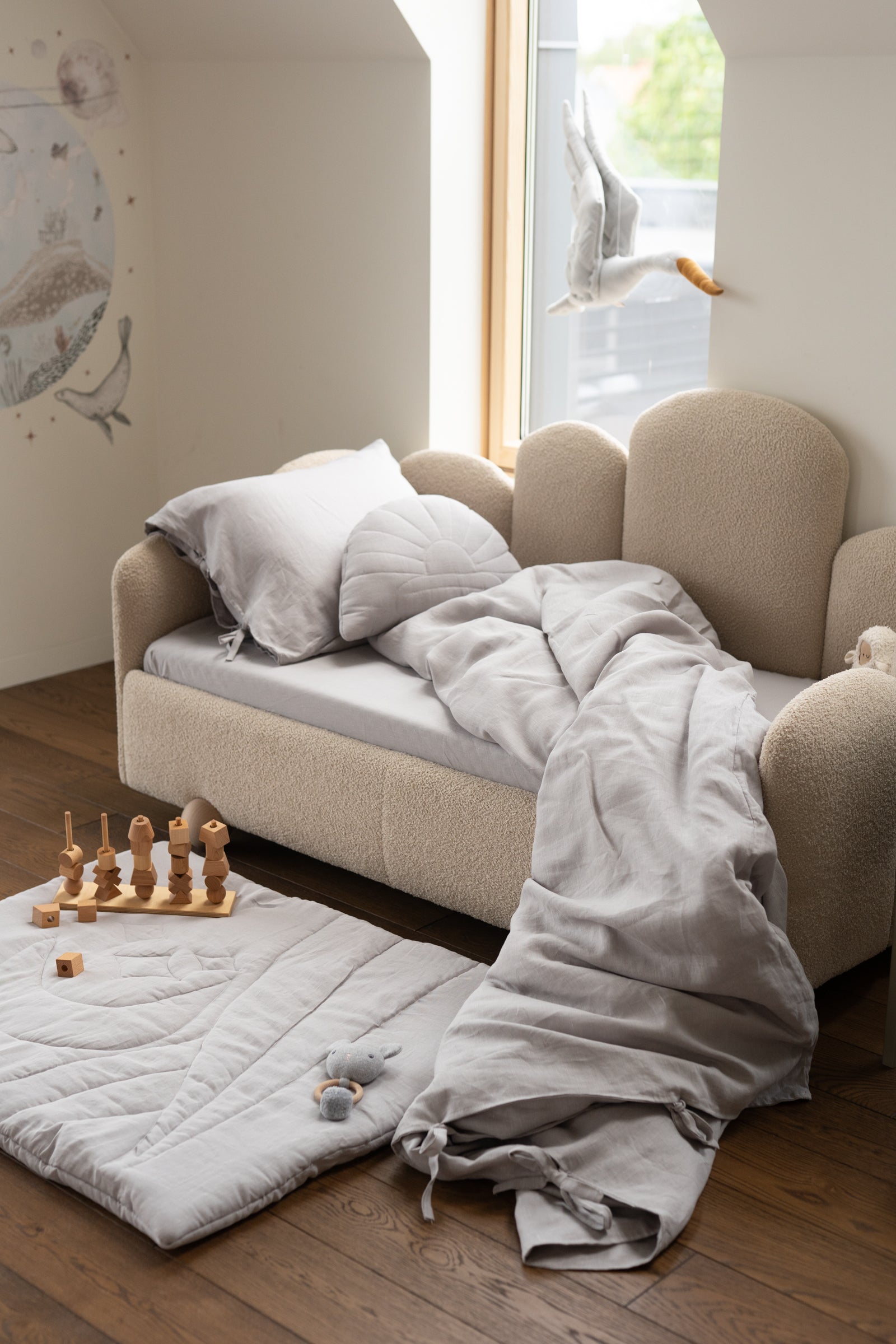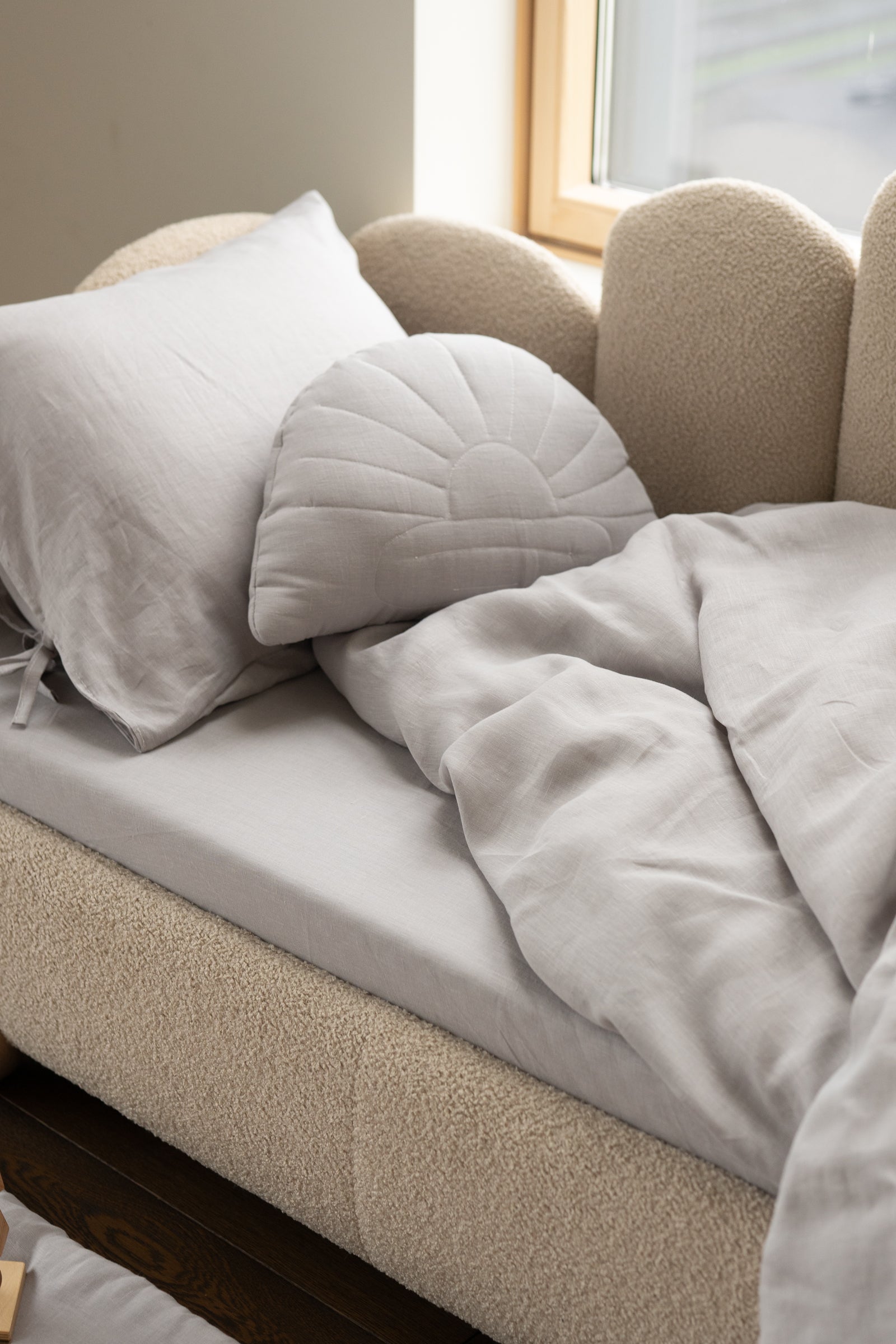 Bring effortless elegance and natural comfort into your home with the Linen Bedding Set. Crafted from 100% stonewashed linen, this bedding is luxuriously soft, breathable, and naturally temperature-regulating – keeping you cool in summer and warm in winter. The timeless design and beautiful drape of linen make it a perfect choice for Scandinavian, Japandi, rustic, or boho-inspired interiors. Hypoallergenic, durable, and sustainably produced, linen bedding only gets softer and more beautiful with every wash. Each set includes a duvet cover and matching pillowcase, finished with minimalist linen ties for an artisanal touch. Lovingly handmade in the Netherlands, this bedding combines craftsmanship, sustainability, and timeless style. Product Details Material: 100% natural linen – OEKO-TEX® certified Design: Solid color, timeless linen texture Closure: Linen ties (no zippers or buttons) Set includes: 1 duvet cover + 1 pillowcase (all sizes) Sizes: Crib, toddler, junior, single bed, and adult sizes Care: Machine wash at 40 °C; tumble dry low or air dry; iron on medium if needed Handmade in the Netherlands by Matuu Perfect For Parents looking for premium, natural baby bedding Minimalist and eco-friendly interiors Cozy toddler and kids’ rooms with a natural touch Adults who appreciate luxury linen bedding A timeless gift for birthday, baby showers, or housewarmings