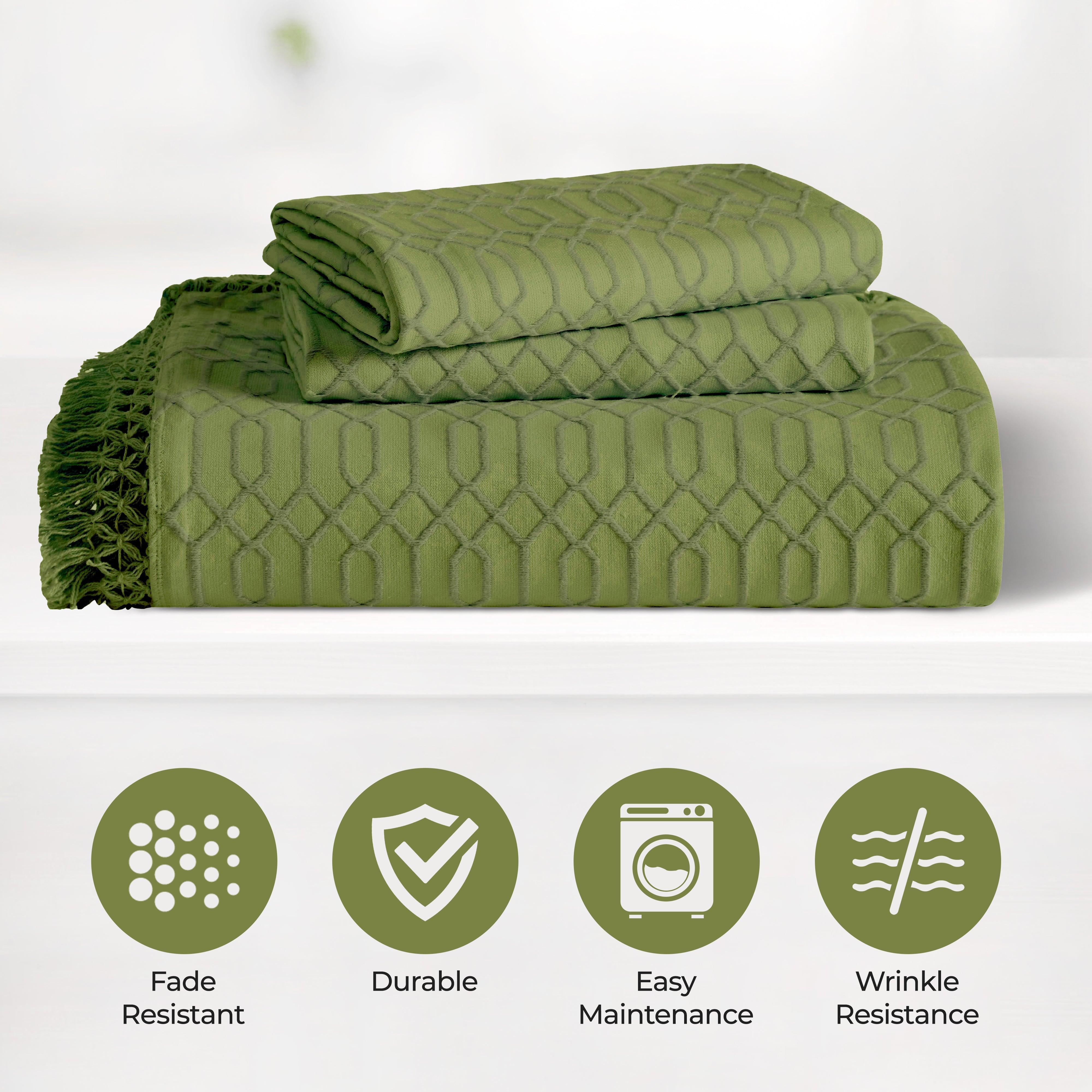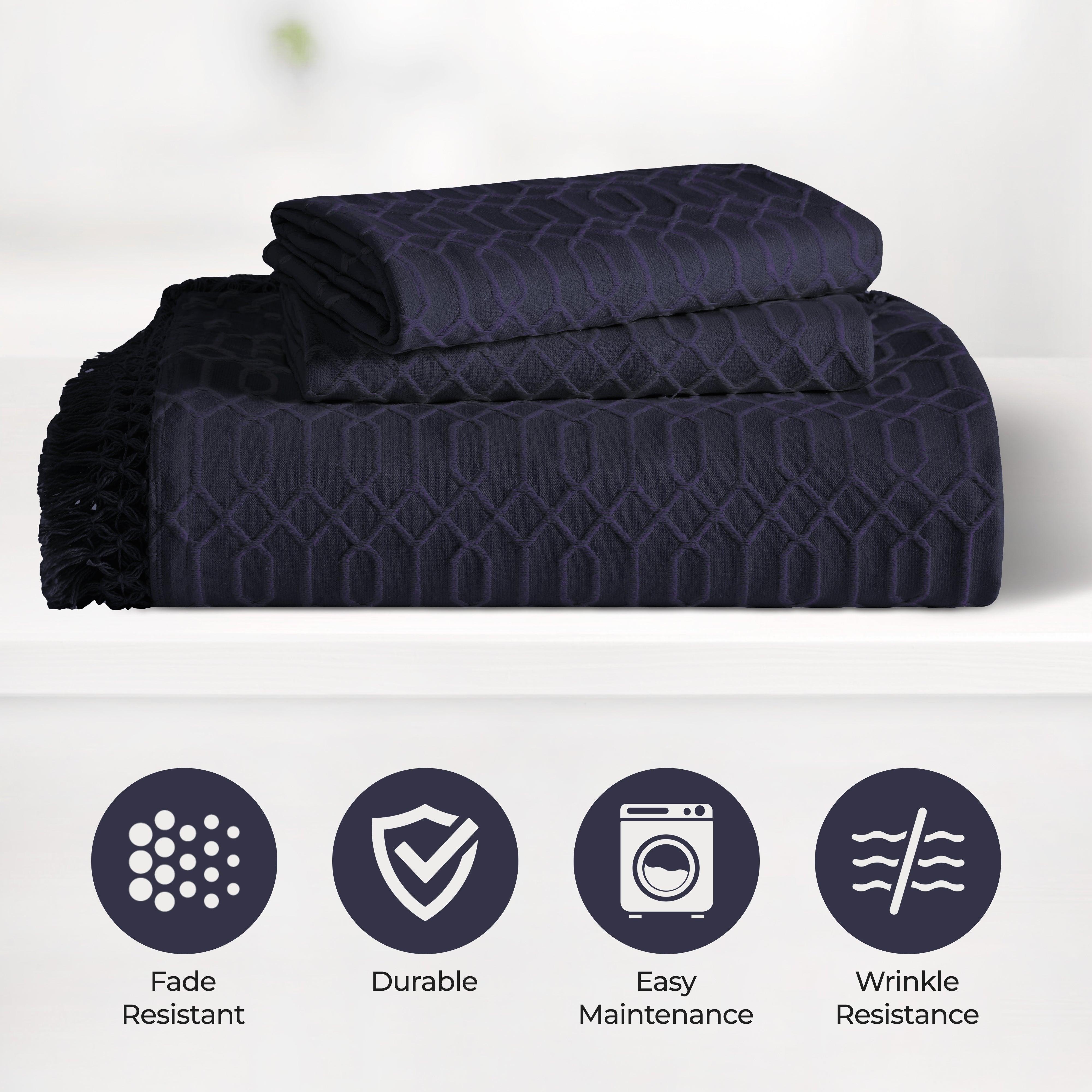 This bedspread set is a wonderful addition to any bedroom. It is crafted from a natural fiber blend, presenting a smooth yet slightly textured surface with an eye – catching geometric pattern. The fringed trim adds an elegant and bohemian touch, and it comes in a variety of colors to suit different interior styles.