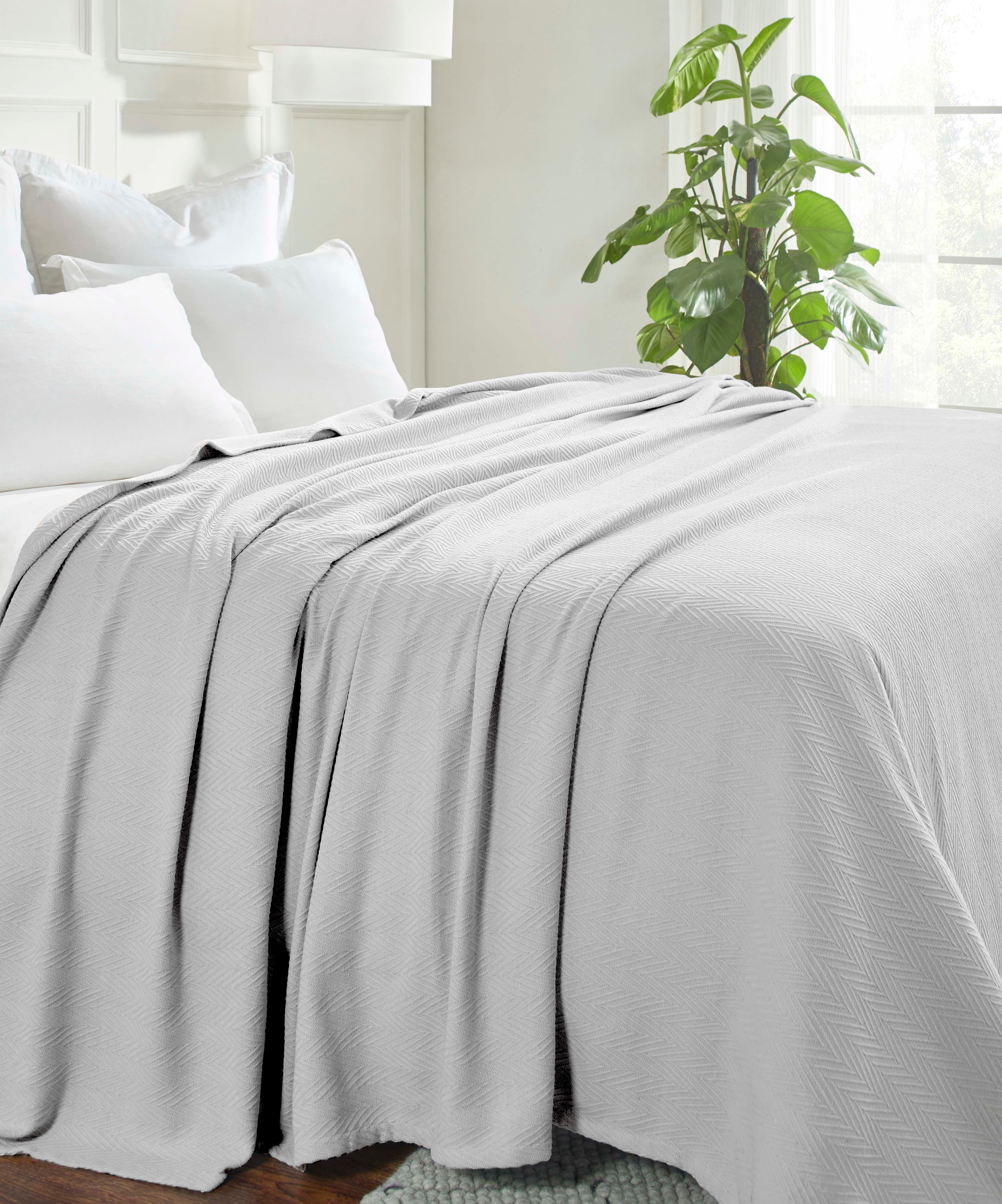 This is a geometric-embossed lightweight cotton throw blanket. It features a smooth, soft – textured fabric with a subtle chevron or leaf – like geometric pattern. Available in a wide range of solid colors, it’s suitable for both decorative and functional use on beds, couches, or chairs.