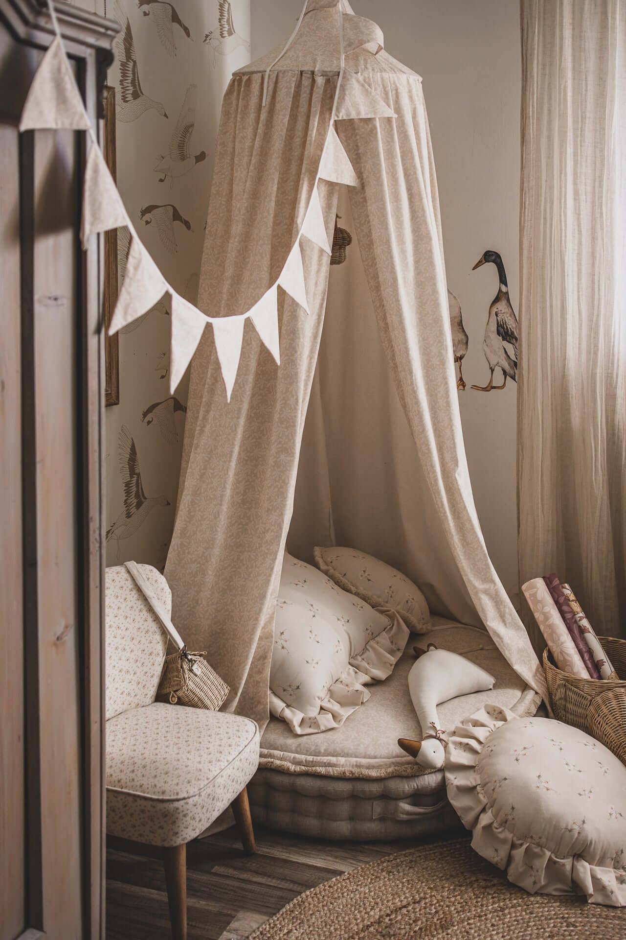 Create a serene and elegant space with our Lilac Linen canopy, handcrafted from premium-quality European linen in a soft, muted lilac shade. This airy bed canopy gently filters the light, creating a peaceful nook for rest, reading, or play. Its natural texture and subtle color make it perfect for boho, Japandi, vintage or gender-neutral interiors. Hang it above a crib, toddler bed or cozy play corner to instantly add a calming, dreamy atmosphere to your child’s room. Thoughtfully made with a hidden metal hoop, long cotton ties for secure hanging, and an interior loop to hang a mobile, pendant or fairy lights. Designed and handcrafted with care in the Netherlands by Matuu. Product details: Fabric: 100% linen – breathable, natural and durable Color: Muted lilac / dusty lavender Height: approx. 235 cm (fabric) + 60 cm cotton hanging ties Hoop diameter: 50 cm (metal hoop included, hidden inside) Mounting: Two cotton straps – fits any ceiling hook Interior loop: For pendant, mobile or fairy lights Washing: Remove hoop before washing. Machine wash at 30°C (gentle), air dry Preparation time: 2–3 business days Handmade in the Netherlands by Matuu Perfect for: • Crib or toddler bed canopy • Japandi or boho-style nursery • Calming, gender-neutral baby room • Elegant, handmade baby shower gift