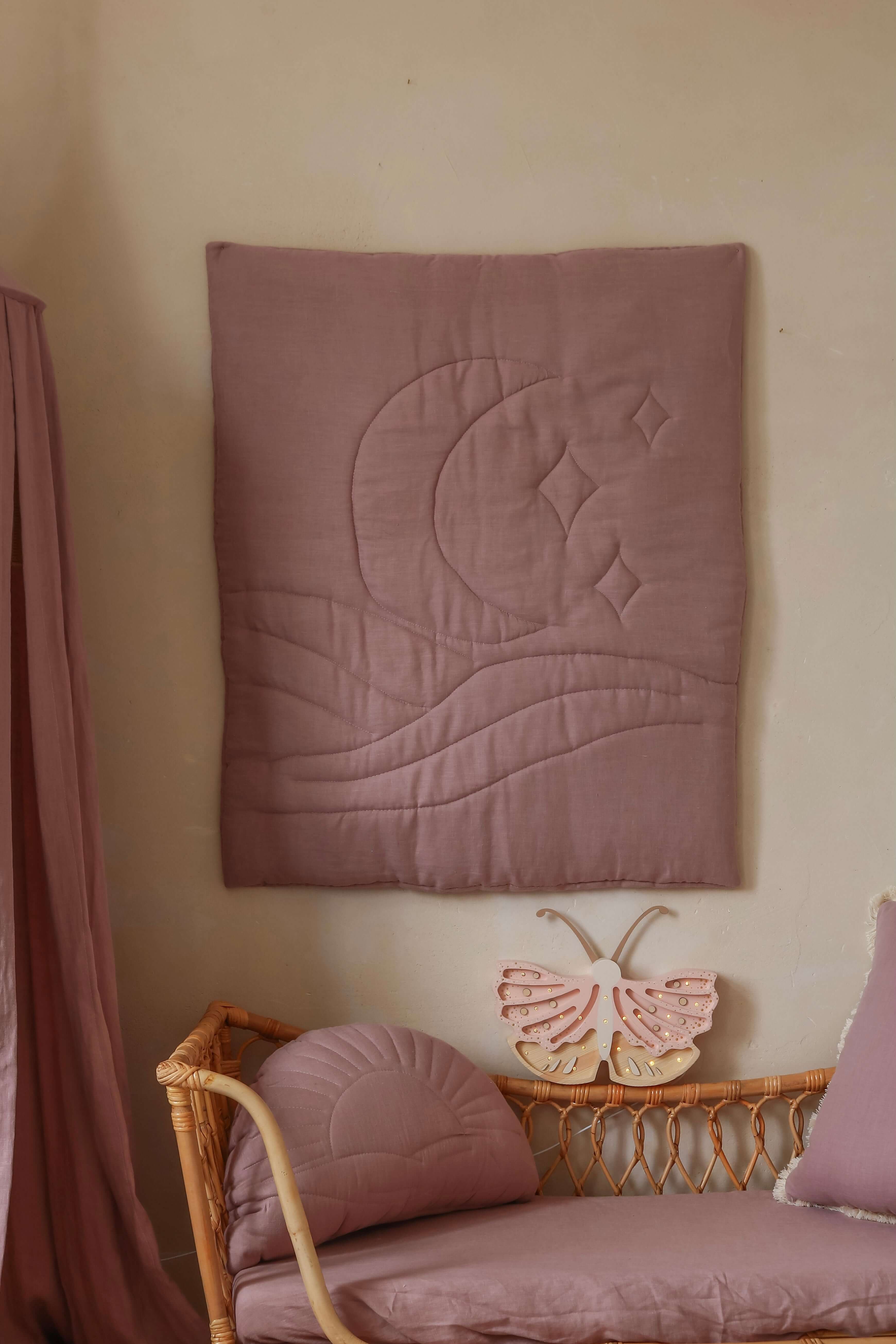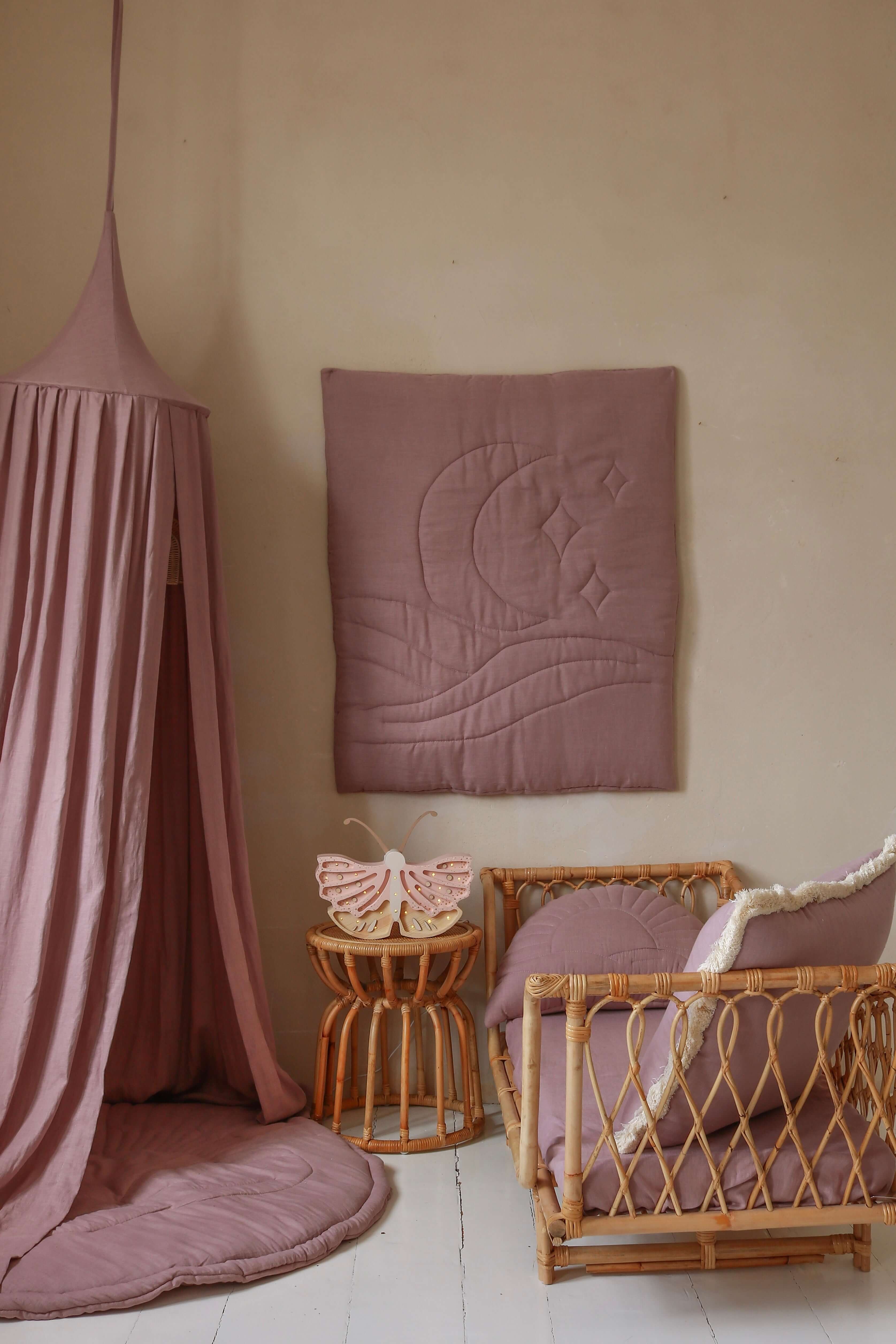 Designed and made in Amsterdam, the Netherlands, by Roksana (heart of Matuu) Soft baby linen playmat, made out of linen fabric with OEKOTEX-certified. Hypoallergenic filling. Color: lilac Quilted Playmat can be used for a newborn in a babybox or a play mat on the ground. Later as a stylish rug, bedcover for your toddler or on the wall as wallhanging.*small differences in the quilted illustration and mats may appear as everything is handmade and quilted by heart. Can be washed at 30 degrees Delivery time: 1-3 business days (counting from the next business day)