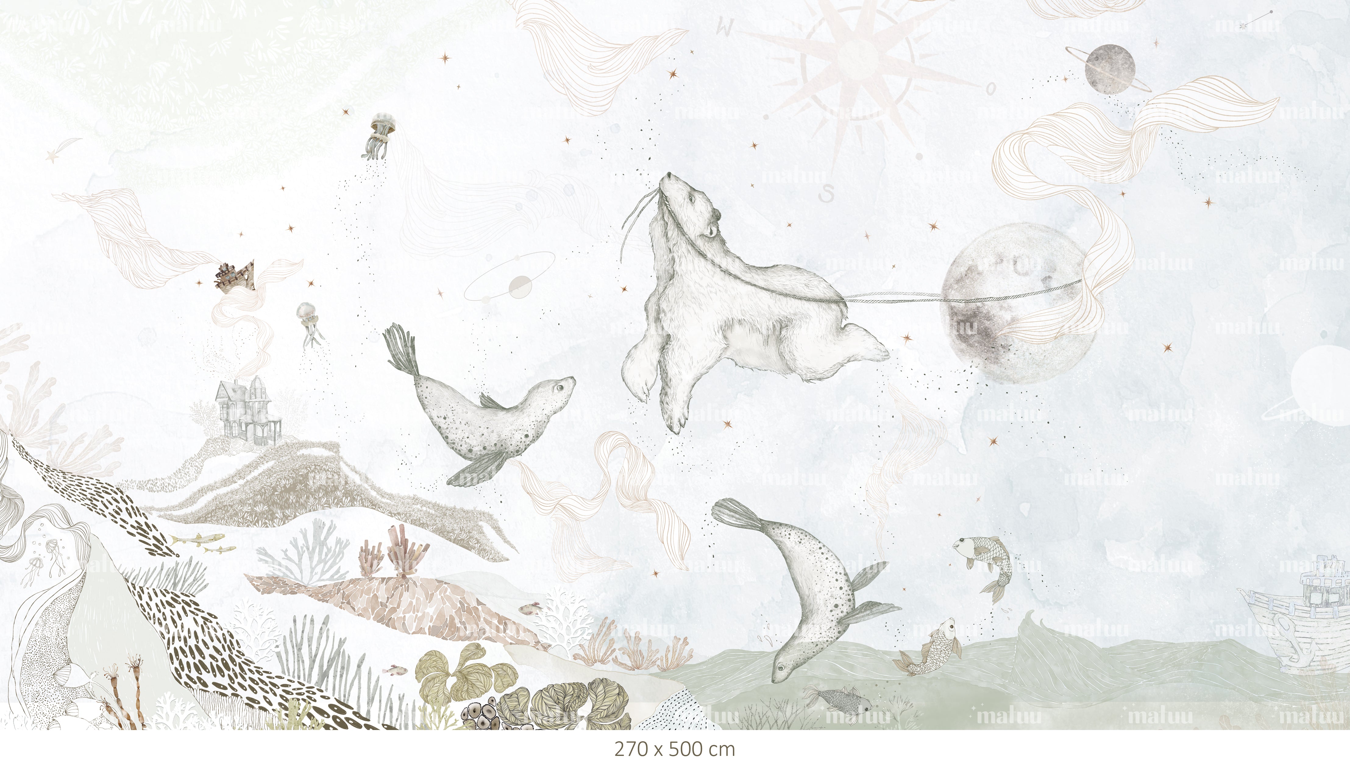 A whimsical mural designed to spark imagination! Playful bears, floating seals, and ships in the sky bring stories to life on your child’s wall. Exclusively designed for Matuu, this mural adds a dreamy, adventurous atmosphere to any space. Sizes & Dimensions • Cut into easy-to-apply strips, each 100 cm wide • The width of the stripes is 50, 70, or 100 cm depending on the size. If you would prefer 50 cm instead of 100 cm stripes, let us know in the comments 😉 • Various total sizes available Material • Easy Stick self-adhesive polyester (115 g) • Removable, repositionable, no glue needed • Premium matte texture, soft touch • Eco-friendly & safe for children’s rooms Pattern & Look • Large-scale design for an impressive, seamless look • Printed to order for each customer Production & Delivery • Processing time: 5–10 business days • EU shipping: ~4–7 business days (depends on destination) Check, Double Check We recommend checking the print layout before applying. Edges not matching? → Contact us, and we’ll reprint if needed. Slight offset (≤1 mm)? → Within standard cutting margin. How to Apply (Instructions) Download our step-by-step Easy Stick Wallpaper