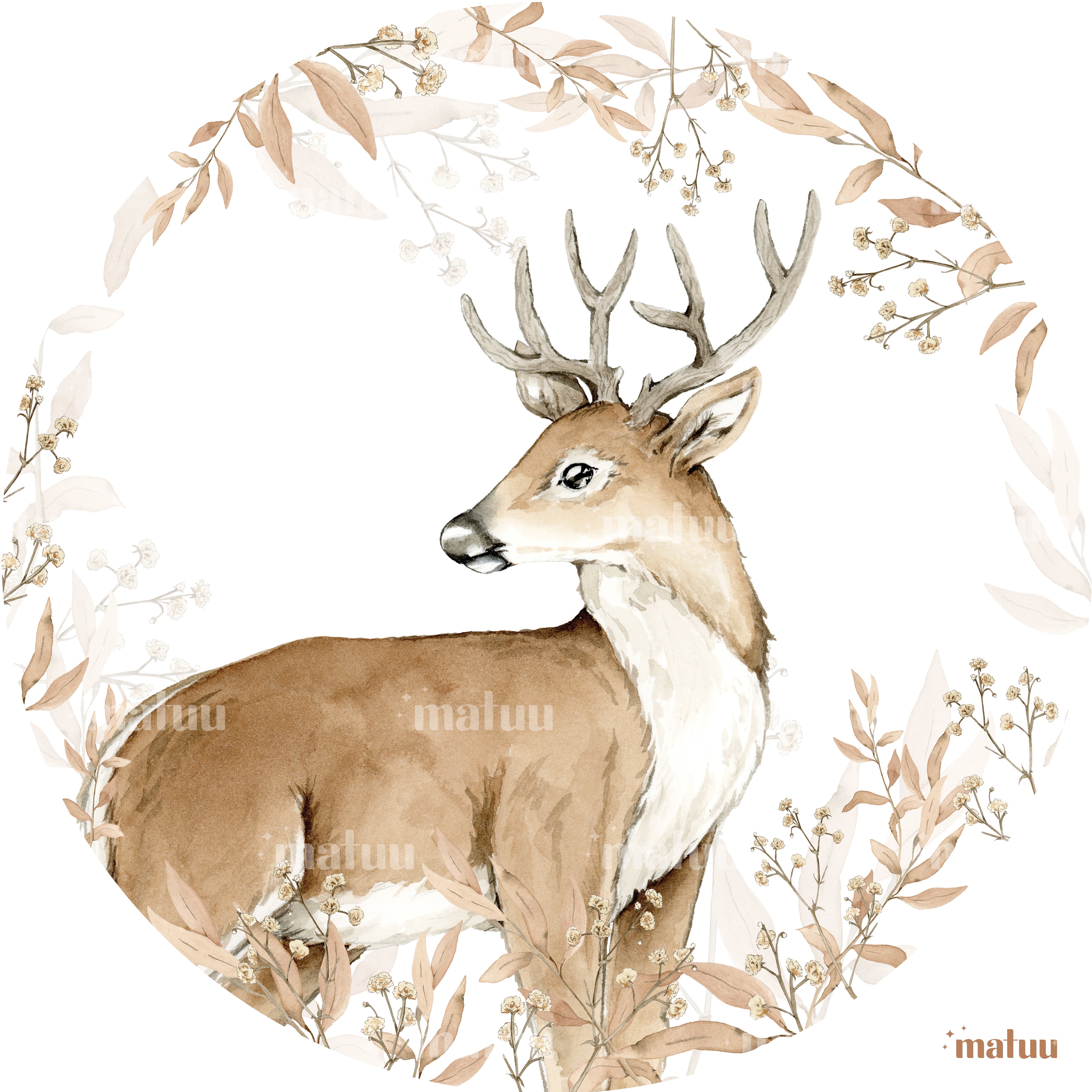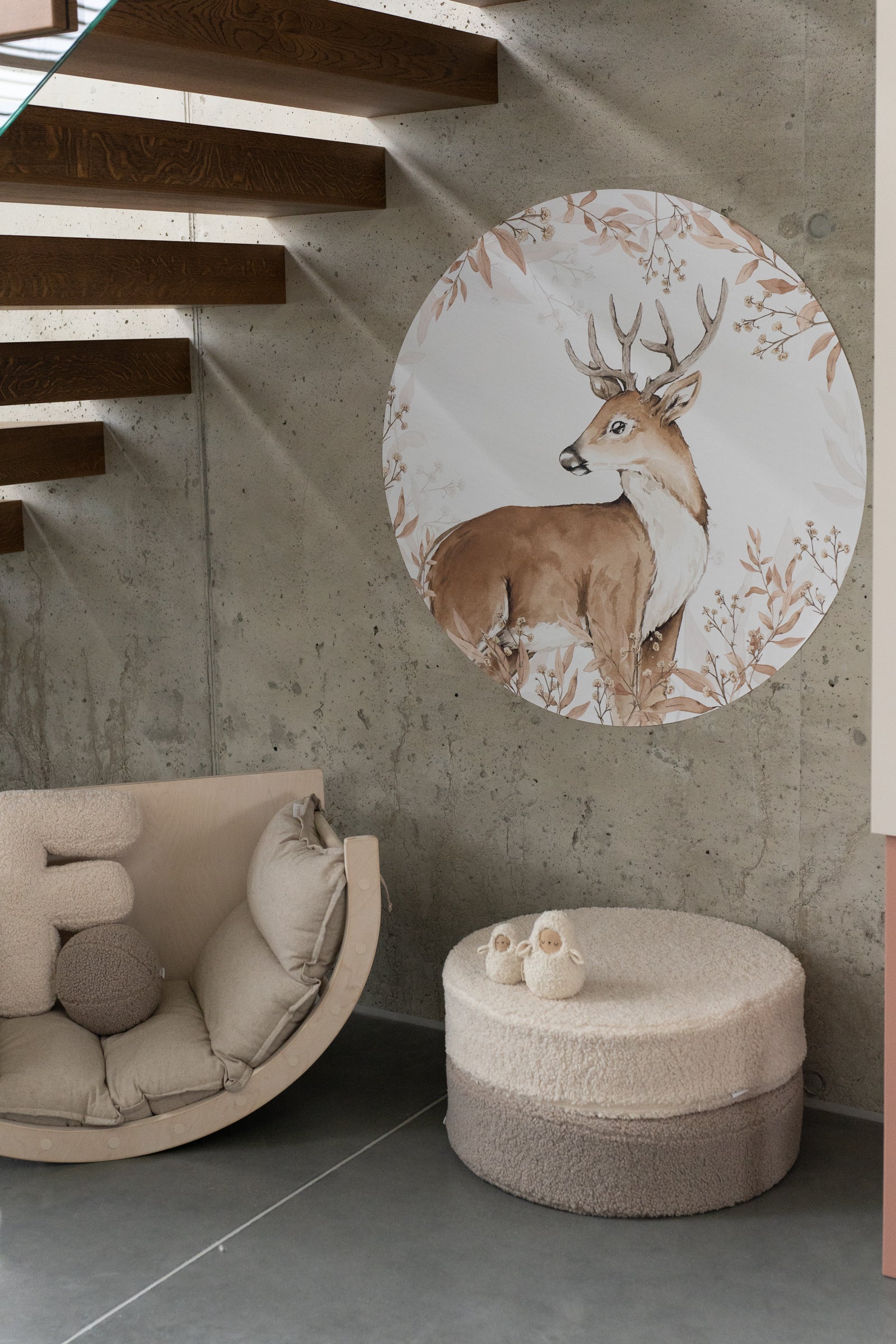 Bring woodland charm and gentle elegance to your nursery with the Majestic Deer wall sticker. This round botanical decal features a detailed deer surrounded by blooming branches and leaves in soft, earthy tones โ creating a serene and timeless atmosphere in any childโs room. This wall sticker is a perfect alternative to traditional wallpaper. Itโs easy to apply, removable without damage, and made from high-quality, fire-safe material. A beautiful, hassle-free way to add character to your childโs space. Material Matte, self-adhesive PVC (95 ฮผm) Washable and fade-resistant EN 13501-1 B-s2-d0 fire safety certified Safe for childrenโs spaces Available sizes Round ร 100 cm Round ร 120 cm Application Peel & stick โ no tools or glue needed For smooth, clean walls or furniture Full instructions: Processing time 5โ10 business days * Please note: Our wall stickers are printed to order and are therefore non-returnable, unless there is a defect or a mistake in printing. If you experience any issue with your order, please contact us and we will be happy to help. Perfect for: Woodland-themed nurseries Nature-inspired kidsโ rooms Gender-neutral baby interiors Calm and cozy nursery corners Scandinavian or boho-style spaces