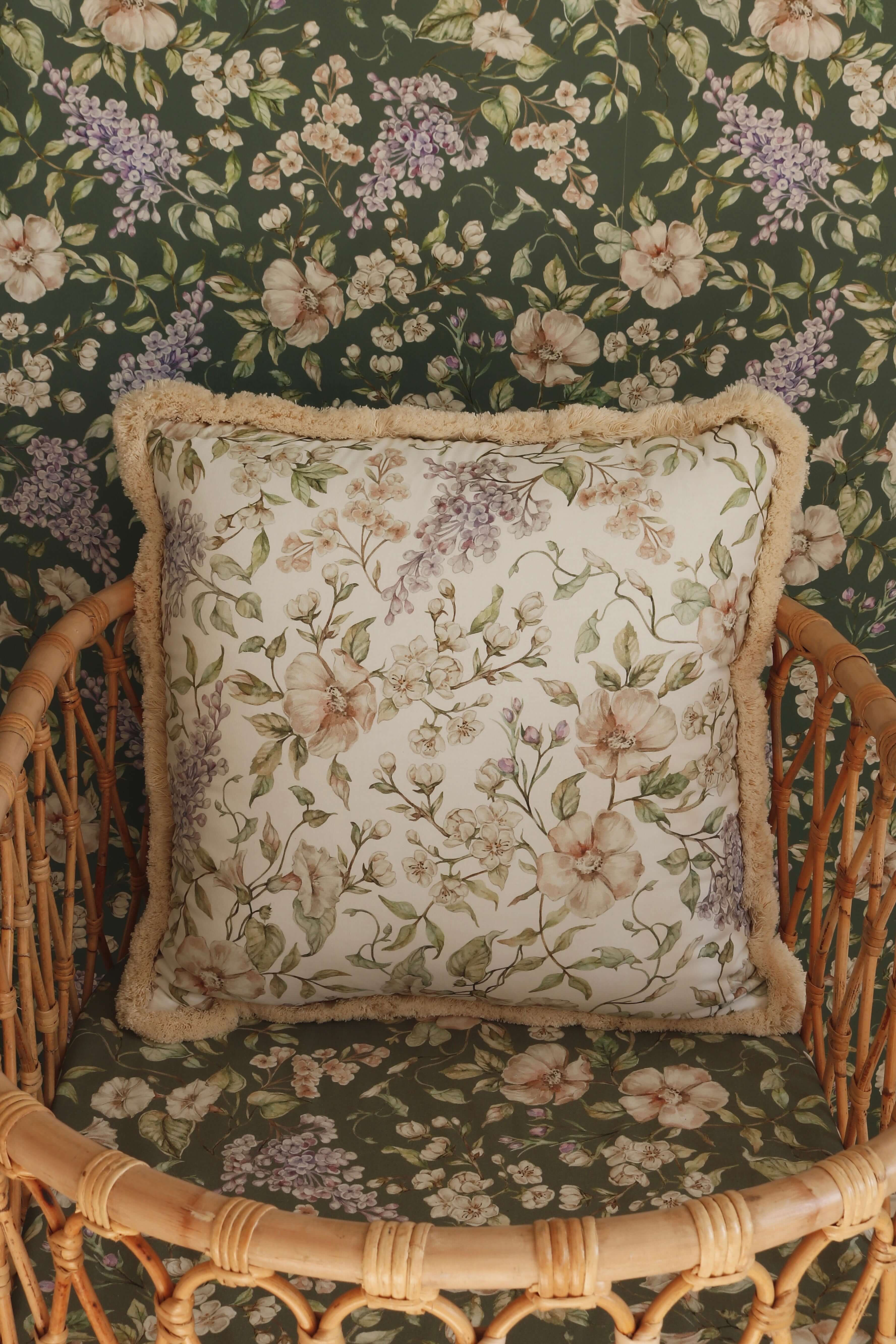 Gorgeous, flowersย cotton pillow finished with cream fringes. Size – diameter 50ย cm You can combine different pillows to discover better results. Washing instruction:Machine wash in 40 degrees, dry flat Processing time: 1-3 work days