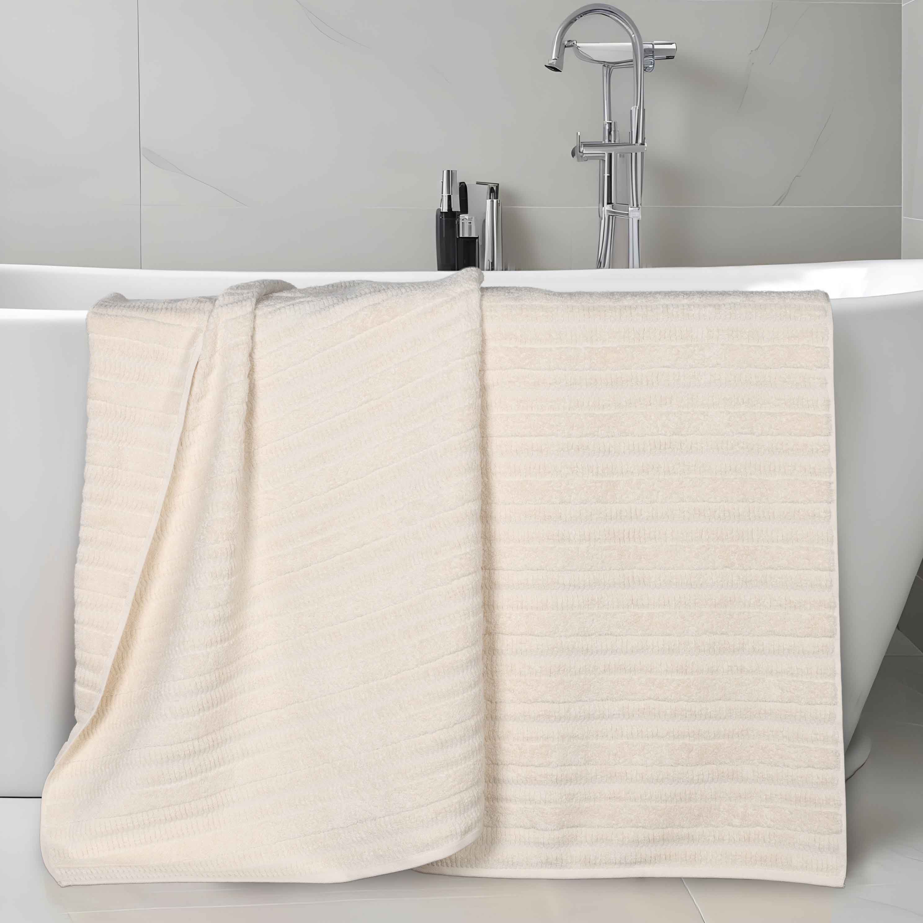 This bath towel set is made from an 80% cotton and 20% viscose blend, which offers both absorbency and softness. It features a simple, textured pattern with a ribbed or waffle – like surface. Available in a variety of solid colors, these towels are a great addition to any bathroom.