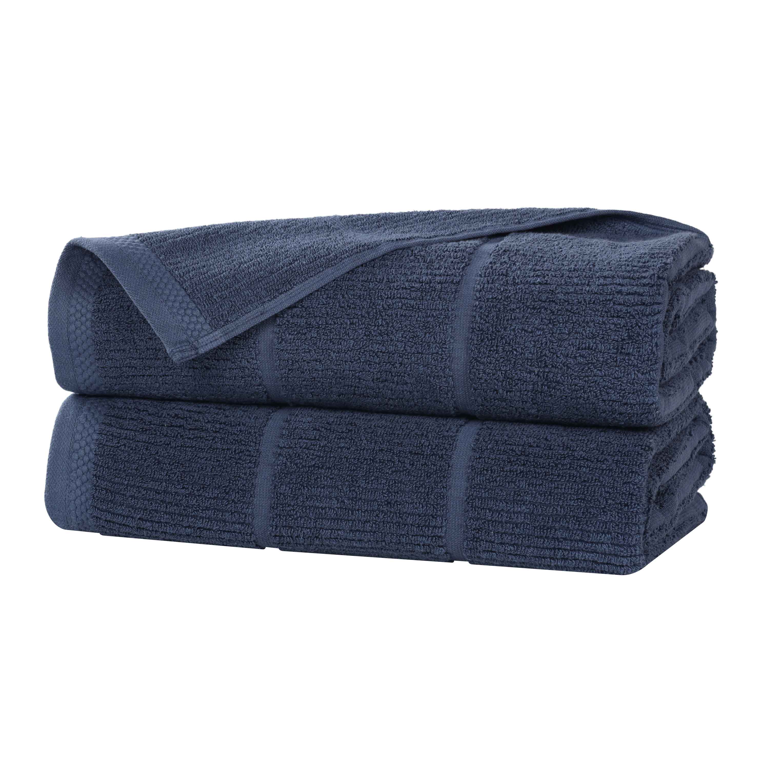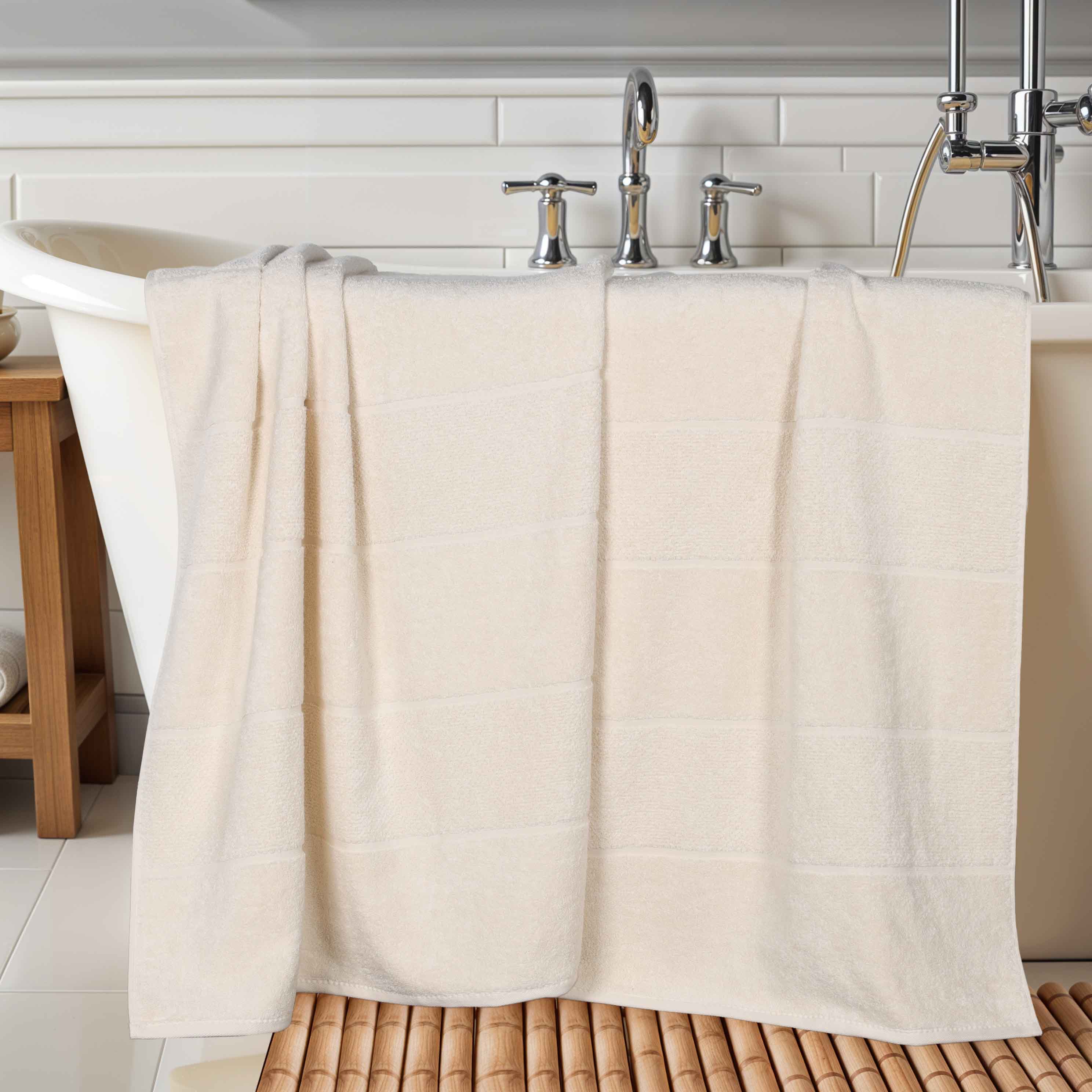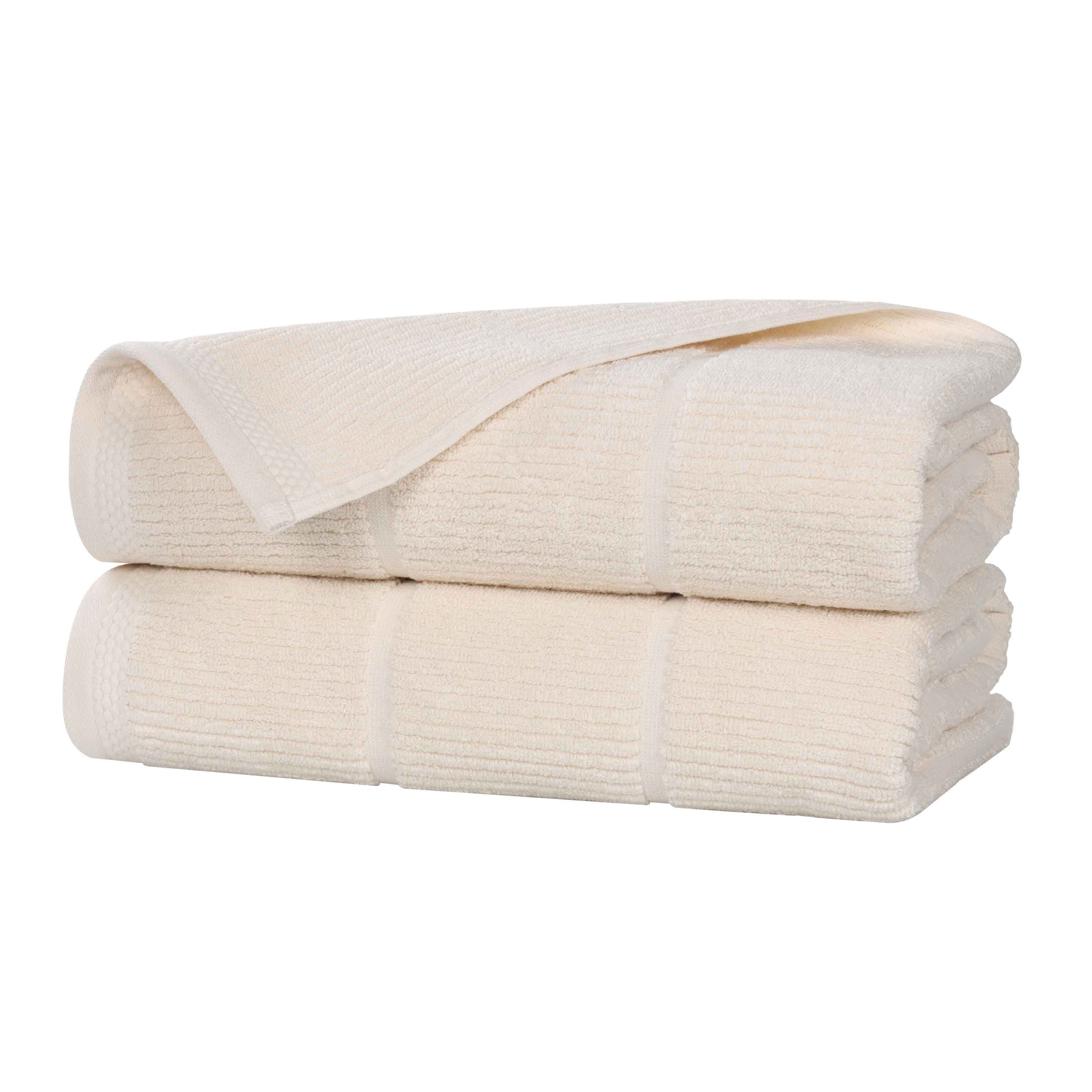 This product is a set of two bath towels crafted from a viscose and cotton blend. The towels feature a terry – cloth style with a soft, plush texture. They come in a range of solid colors and have simple, subtle striped patterns, offering a clean and refined look.