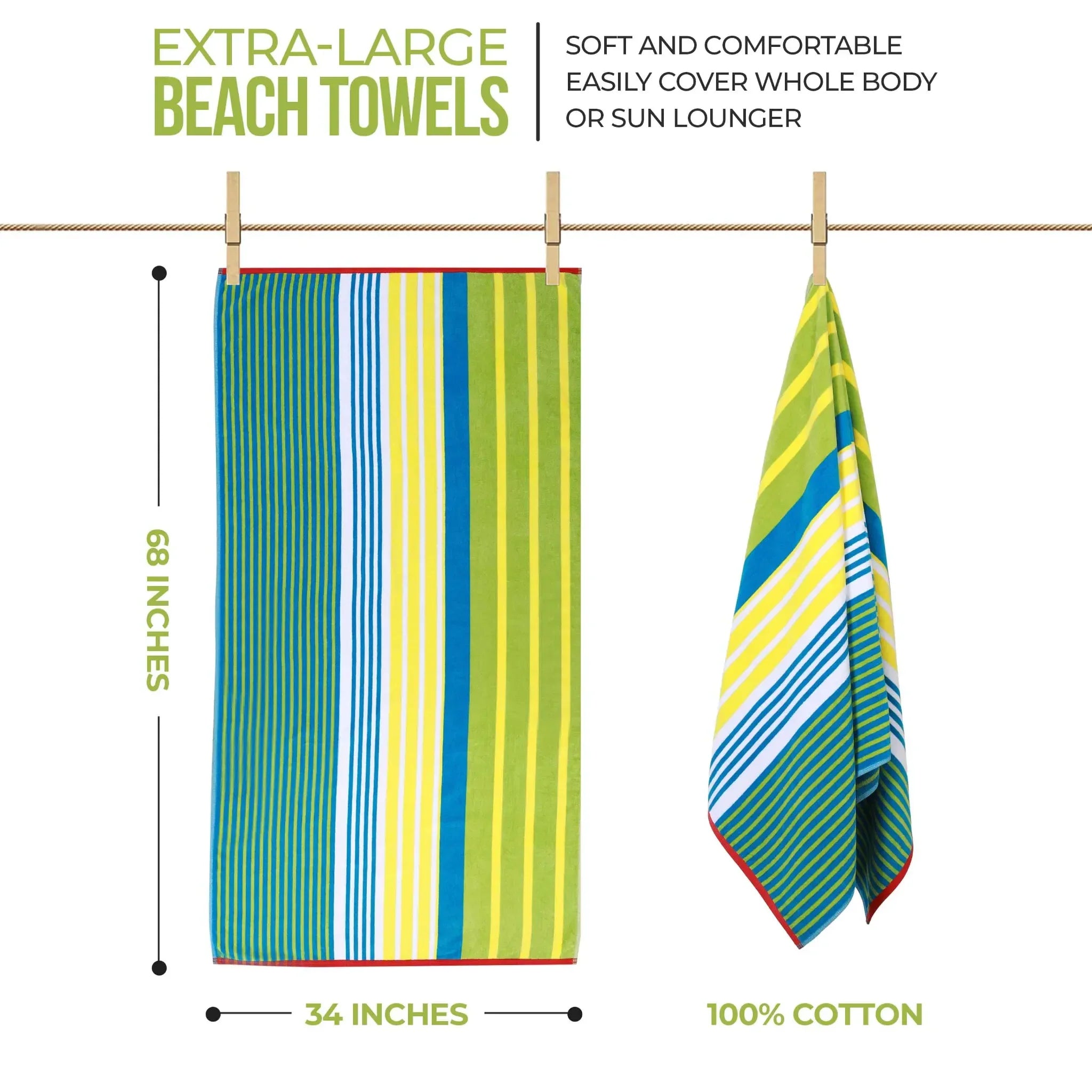 This striped beach towel is a masterpiece of craftsmanship, fusing heritage artistry with modern style. It features a bold combination of bright colors in vertical stripes, along with a red trim for a bold border. The dual – texture fabric offers both high absorbency and luxurious softness, making it perfect for beach outings.